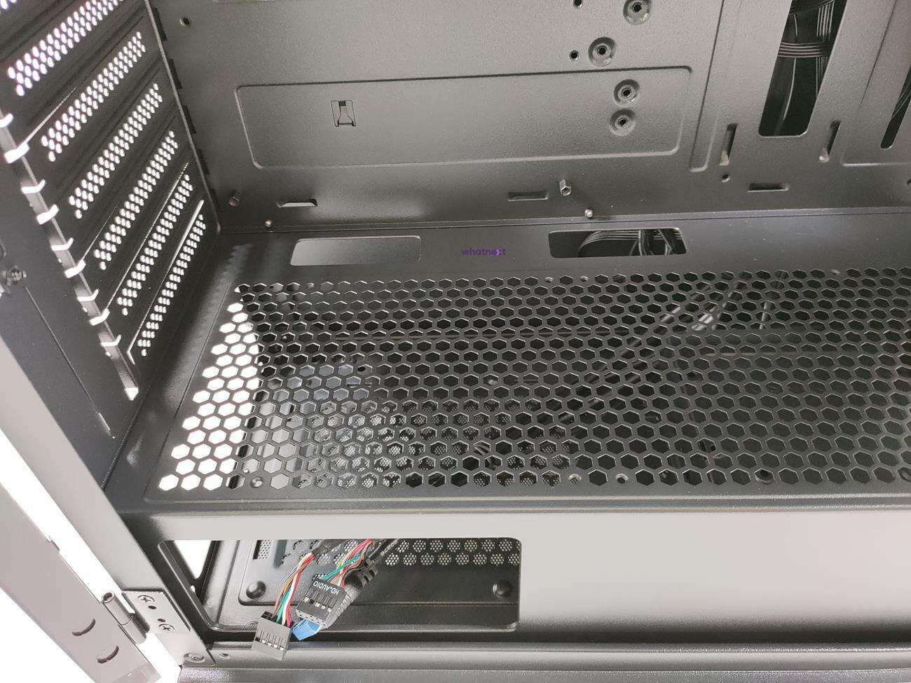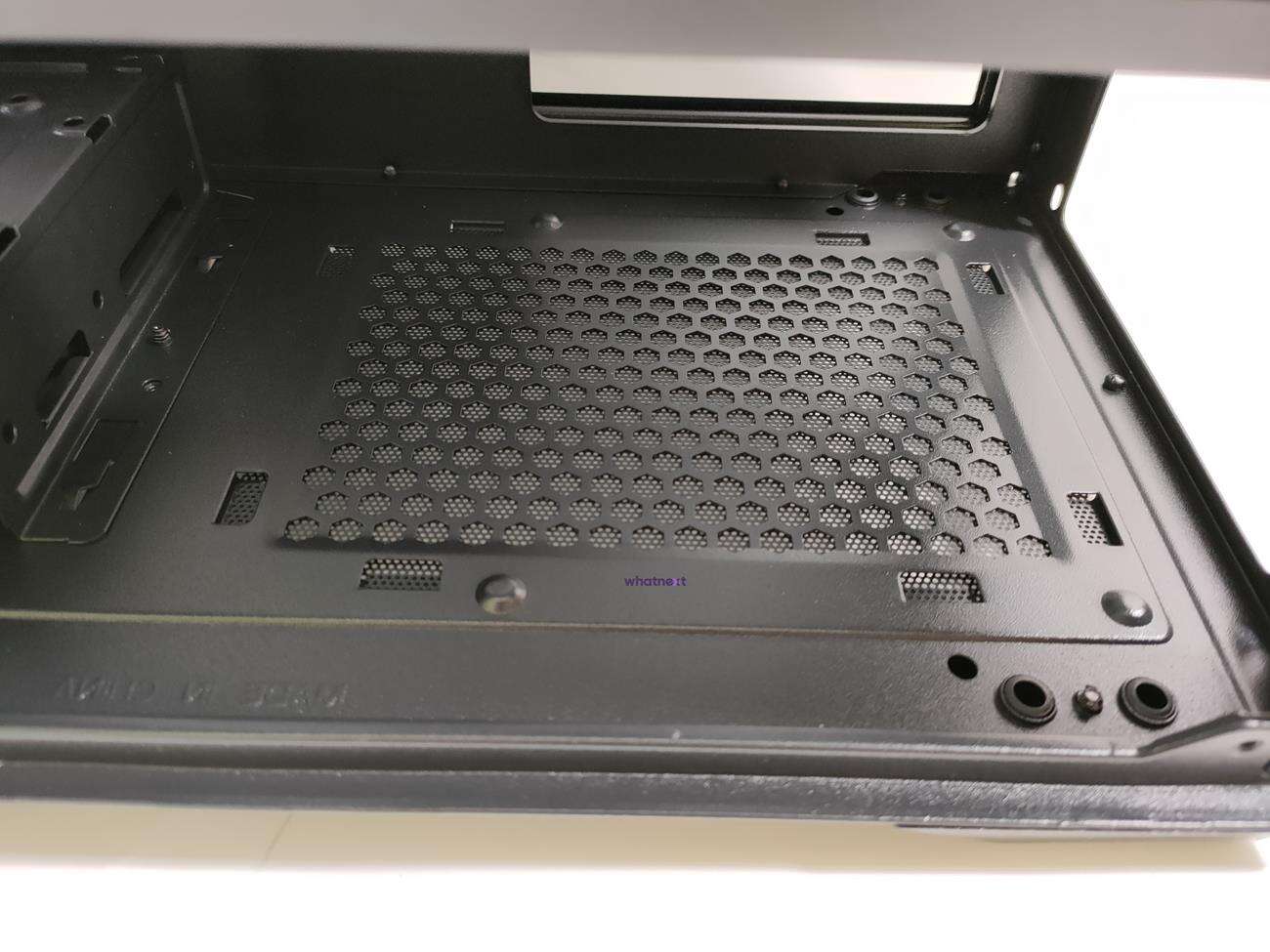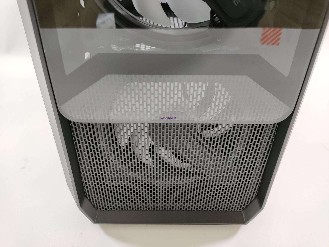Na przodzie znajduje się część ze szkła hartowanego oraz część z siatki mesh. Dodatkowe otwory wentylacyjne są także na górze obudowy. Powinno to zapewnić odpowiedni przepływ powietrza. Niestety nigdzie nie zauważyłem filtru przeciwkurzowego, co jest już sporą wadą.