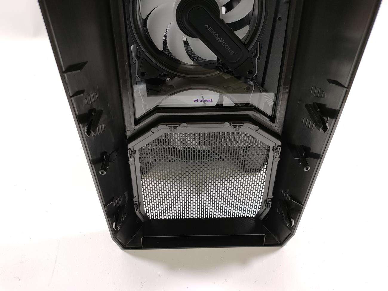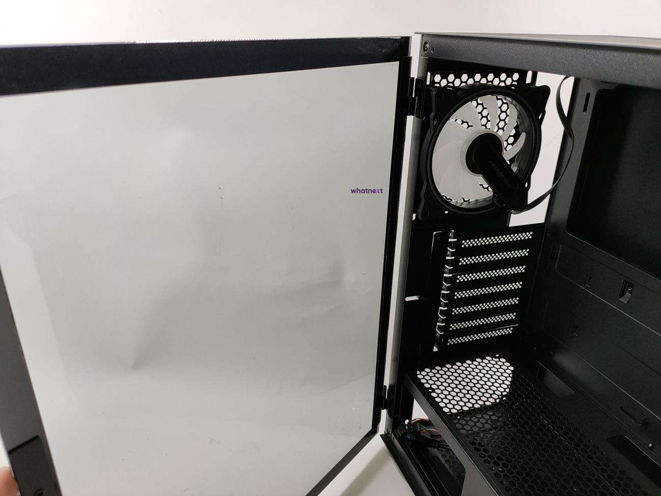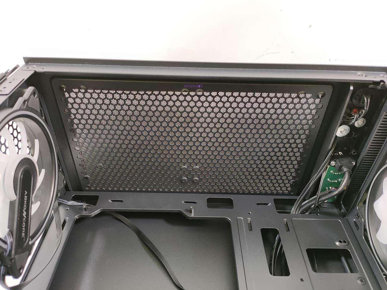 Na przodzie znajduje się część ze szkła hartowanego oraz część z siatki mesh. Dodatkowe otwory wentylacyjne są także na górze obudowy. Powinno to zapewnić odpowiedni przepływ powietrza. Niestety nigdzie nie zauważyłem filtru przeciwkurzowego, co jest już sporą wadą.