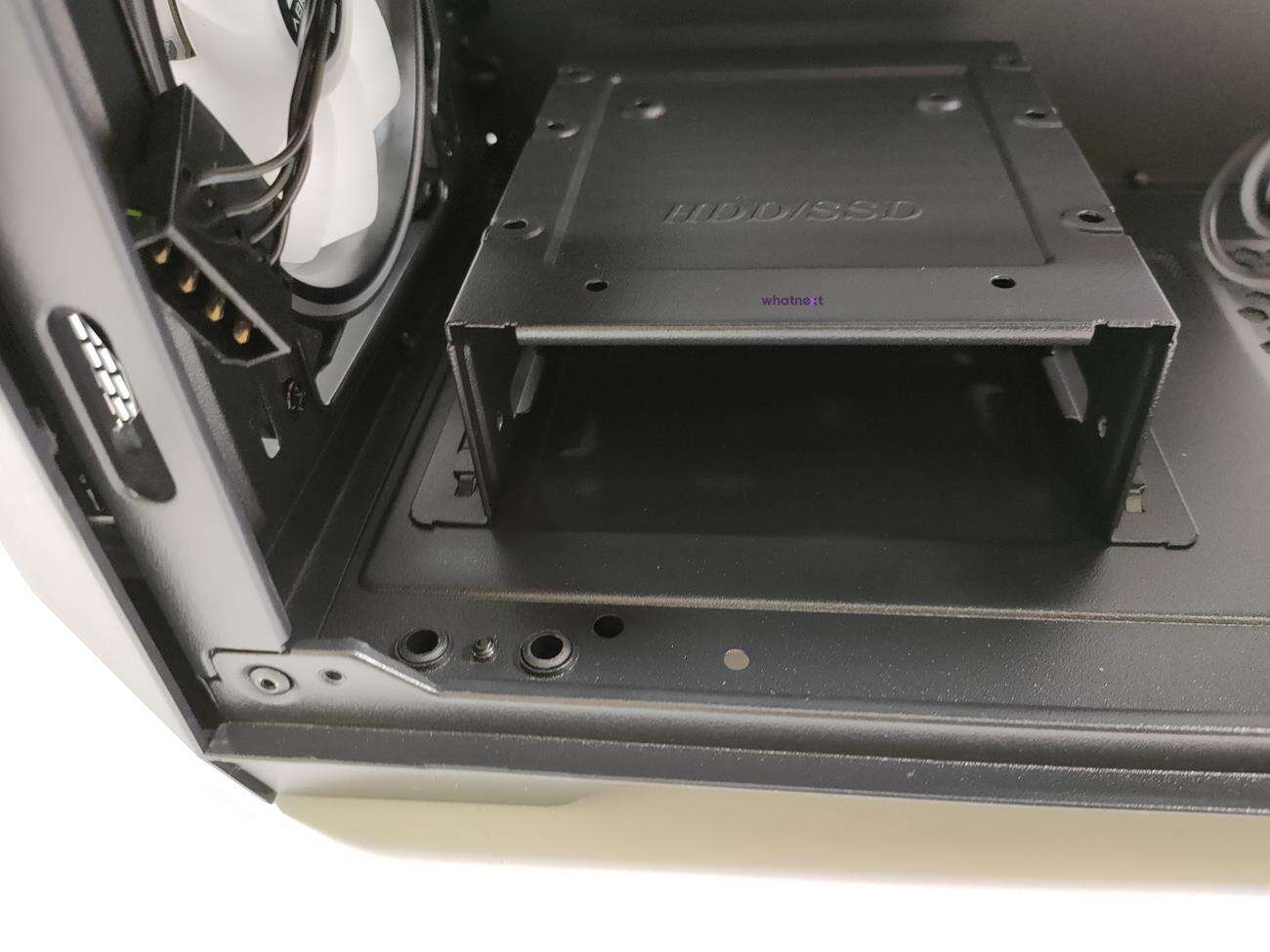 W obudowie zmieścicie maksymalnie trzy dyski 2,5 cala oraz dwa 3,5 cala. Miejsce na te pierwsze jest obok płyty głównej i za nią. Te drugie montuje się w koszyku w piwnicy. Maksymalna długość karty graficznej to 355 mm a chłodzenia procesora to 158 mm. Ta druga wartość mogłaby być nawet te 3 mm większa, ale i tak nie jest źle.