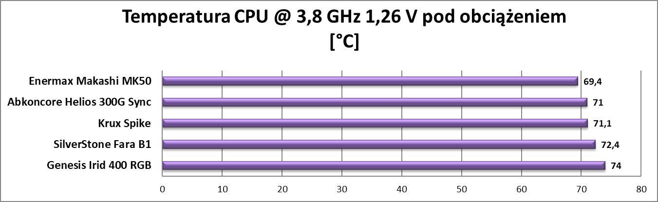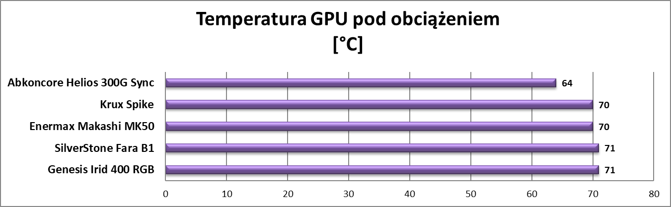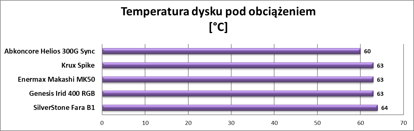 Obudowa jest głośniejsza od pozostałych w rankingu. Jednakże nie jest źle – nie powinna ona przeszkadzać. Większa głośność przekłada się na niższe temperatury. W szczególności grafika czy SSD mają niskie temperatury – znacznie niższe od poprzednich obudów. Takie rezultaty pokazują, że obudowa oferuje bardzo dobry przepływ powietrza, a cztery wentylatory sprawdzają się w praktyce.
