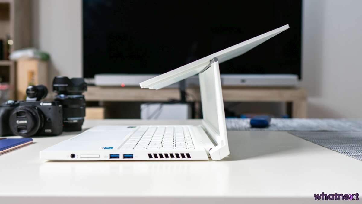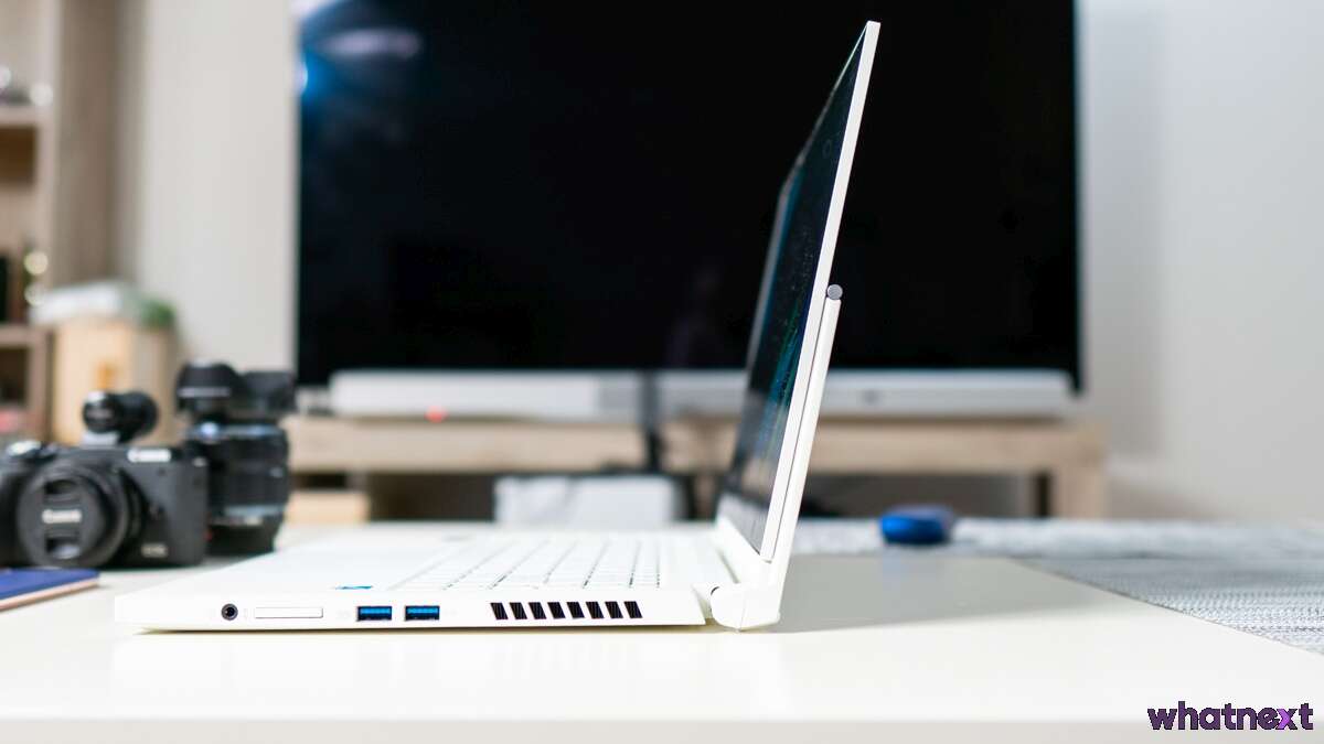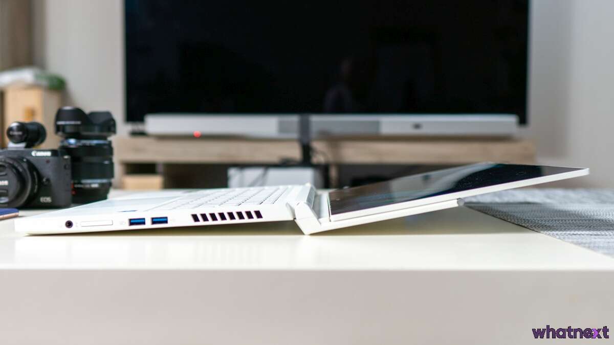 ConceptD Ezel 3 nie pracuje bezgłośno. Lekki szum wentylatorów jest słyszalny przez niemal cały czas pracy i całkiem solidnie hałasuje przy dużym obciążeniu. Nie jest bezgłośny, ale też daleko mu to laptopów gamingowych, które momentami sprawiają wrażenie, jakby miały odlecieć z biurka.