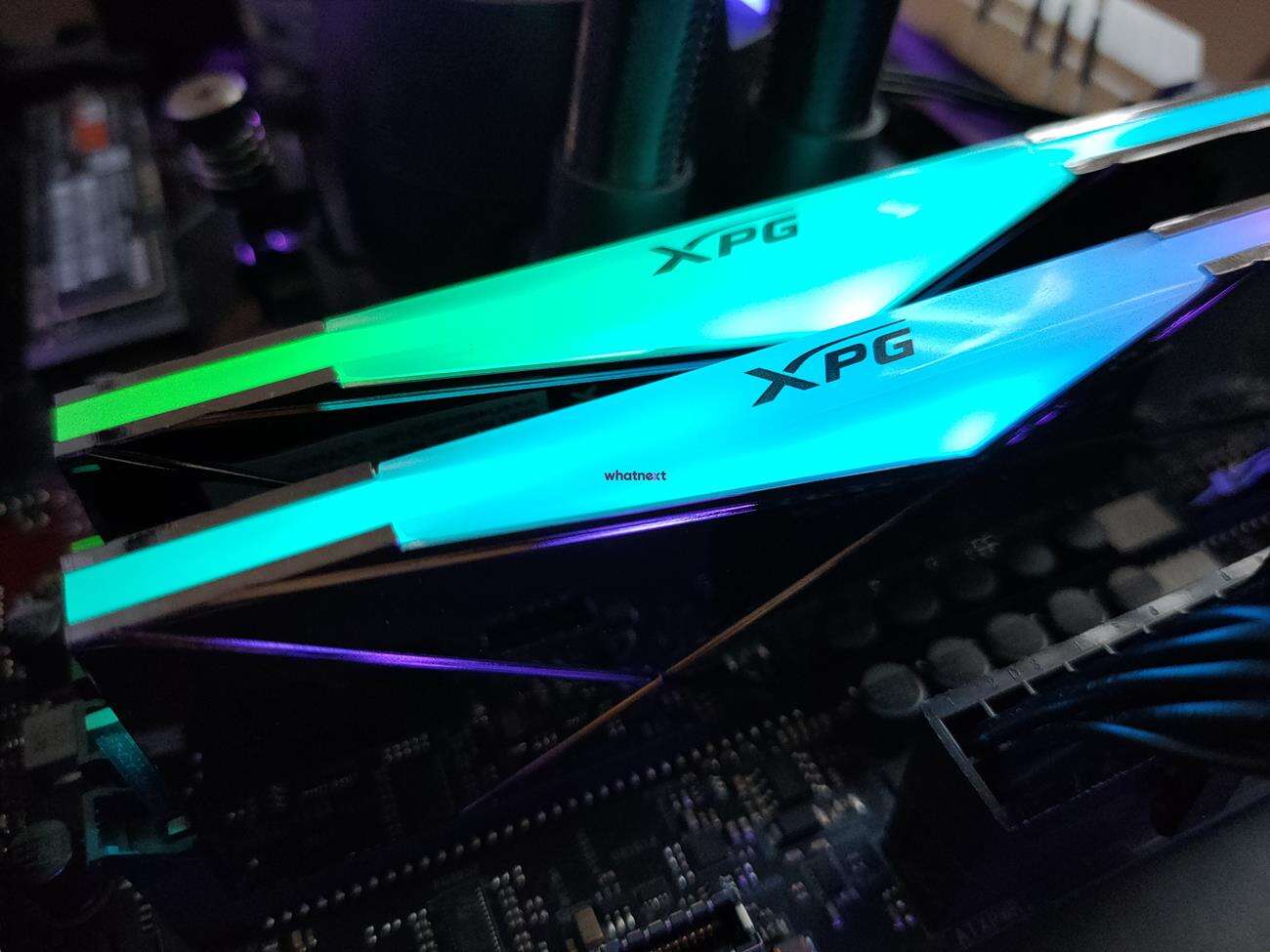 Testowany RAM także świetnie wygląda. Podświetlenie ARGB w połączeniu z polerowanym radiatorem sprawia, że w obudowie z oknem całość będzie się świetnie prezentowała. Mały minus tylko za desynchronizację efektów ARGB, ale jest to standard w dużej ilości podświetlanych pamięci RAM.
