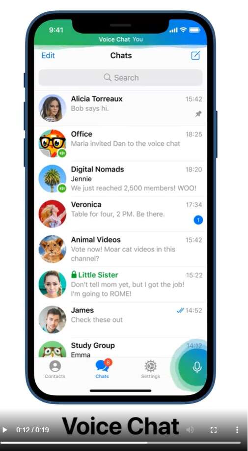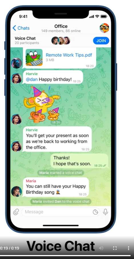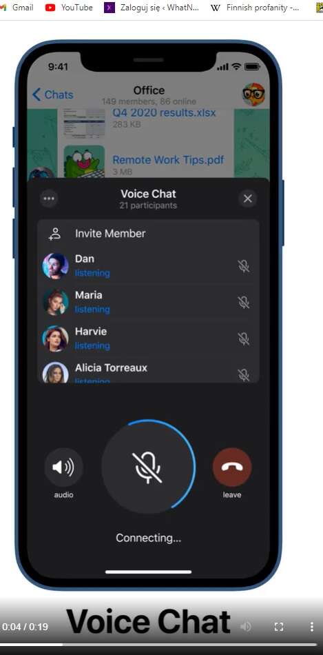 Telegram w najnowszej, 12. już aktualizacji w tym roku dodaje dla swoich użytkowników funkcję grupowych czatów głosowych, co zdecydowanie przysporzy im większej popularności. U góry okna czatu dodano specjalny pasek, na którym znajdziemy miniaturę osoby, która właśnie mówi, a nawet informację o głośności. Dodatkowo nadal można swobodnie korzystać z pozostałych funkcji aplikacji nie tracąc połączenia głosowego.