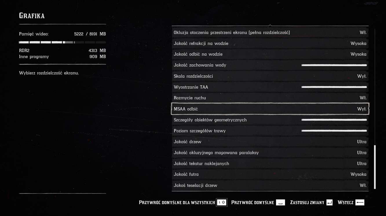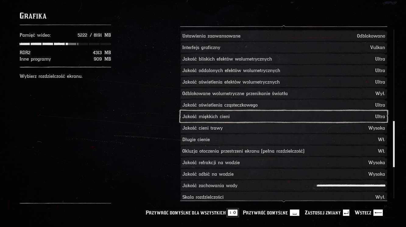 Red Dead Redemption 2 (Vulkan) również znacie z poprzednich testów. Tym razem zamiast wykorzystywać ustawienia określone jako Pierwszy nacisk na wygląd, zdecydowałem się na ustawienia Ultra, czyli: