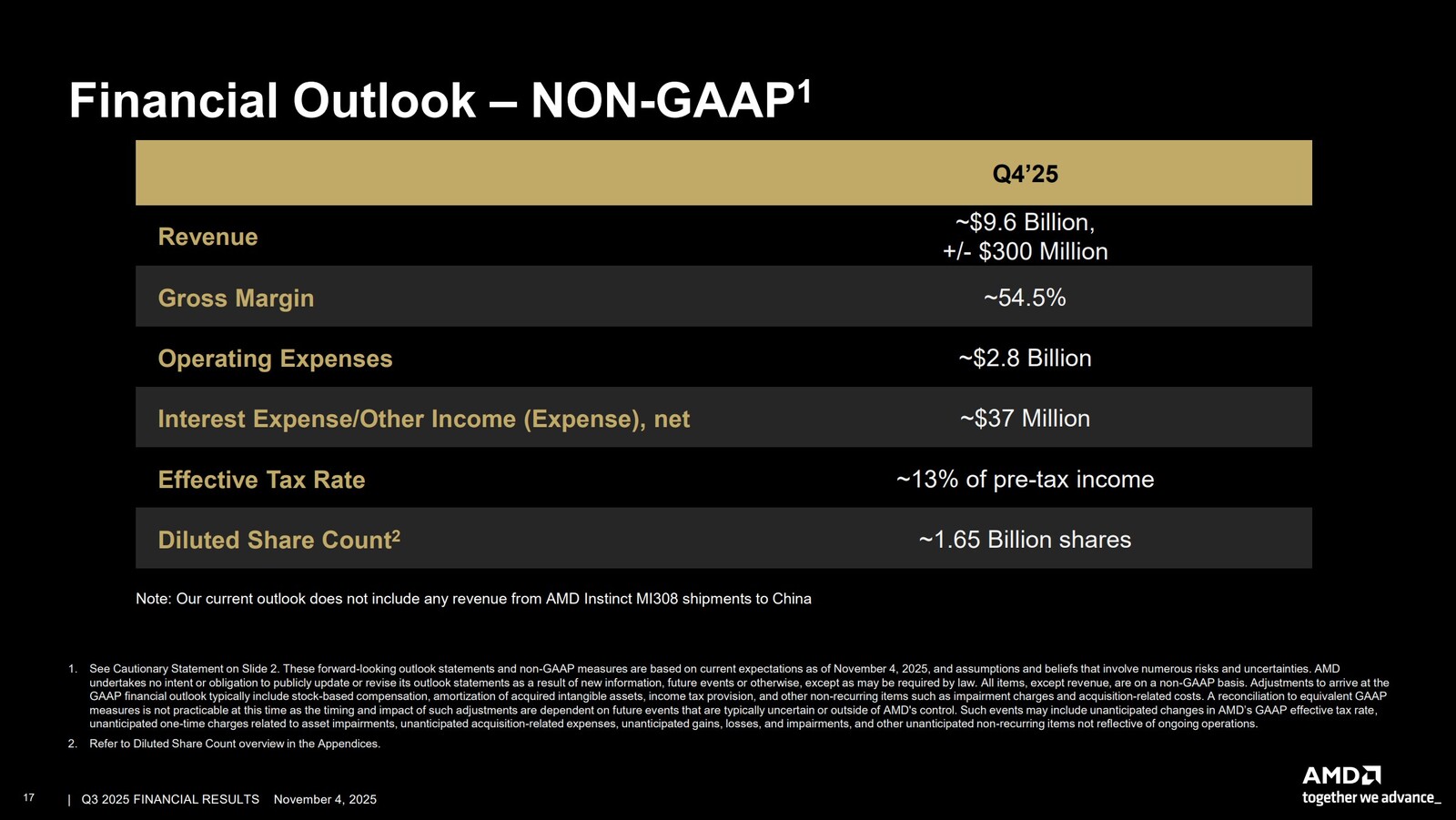 AMD przedstawiło optymistyczne prognozy na czwarty kwartał 2025, oczekując przychodów na poziomie około 9,6 miliarda dolarów (z marginesem błędu 300 mln dolarów).