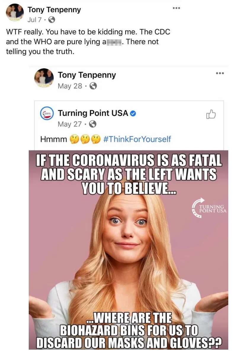 Tony Tenpenny był silnym 57-latkiem. To były członek Rady Miasta w Nashville. Był też zagorzałym przeciwnikiem działań przeciwko COVID_19 podejmowanych przez amerykański rząd. Zdaniem polityka ludzie noszący maseczki żyją w irracjonalnym strachu i są kontrolowani przez program socjalistyczny. Z kolei działania WHO określał jako czyste kłamstwo.
