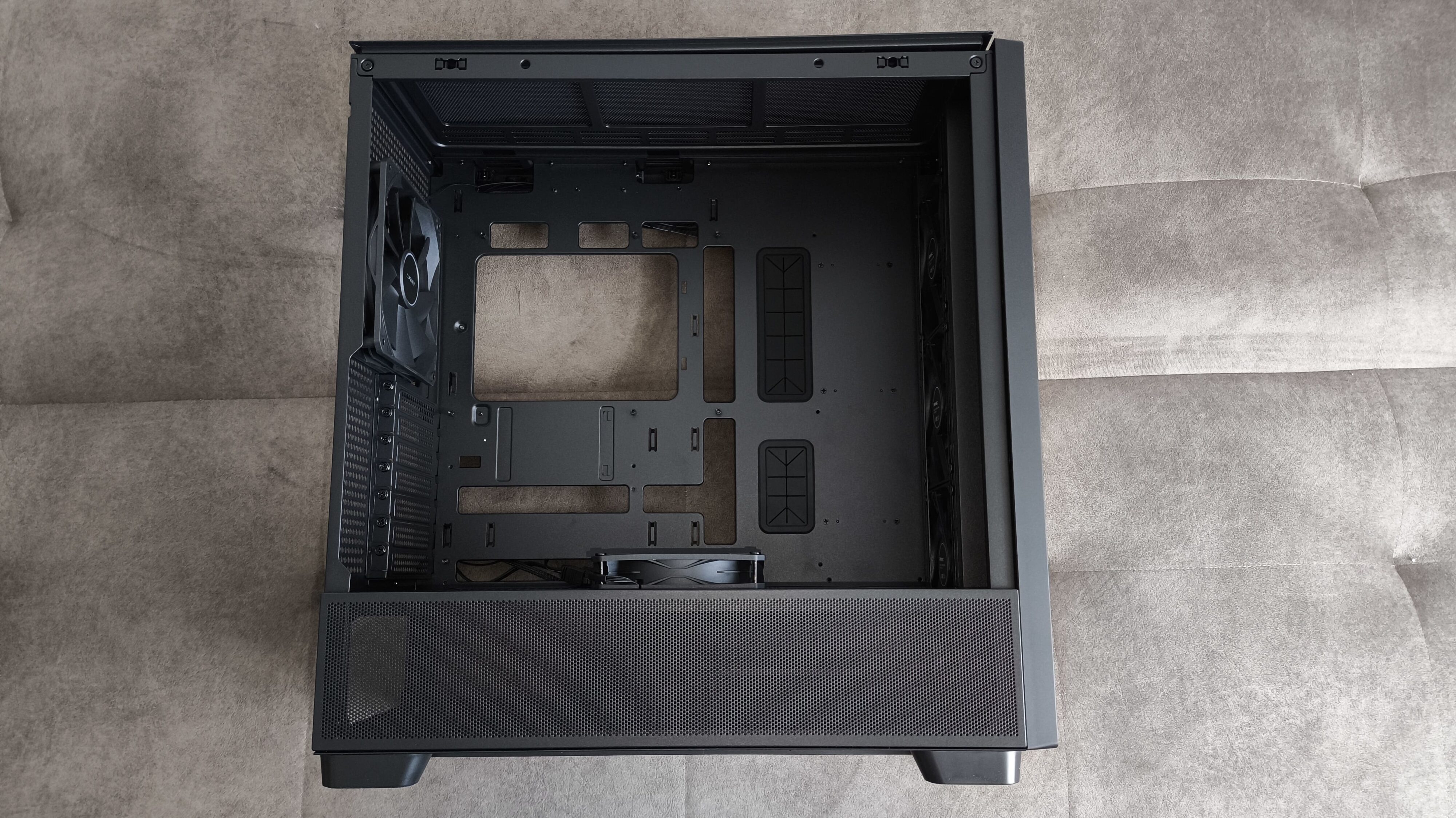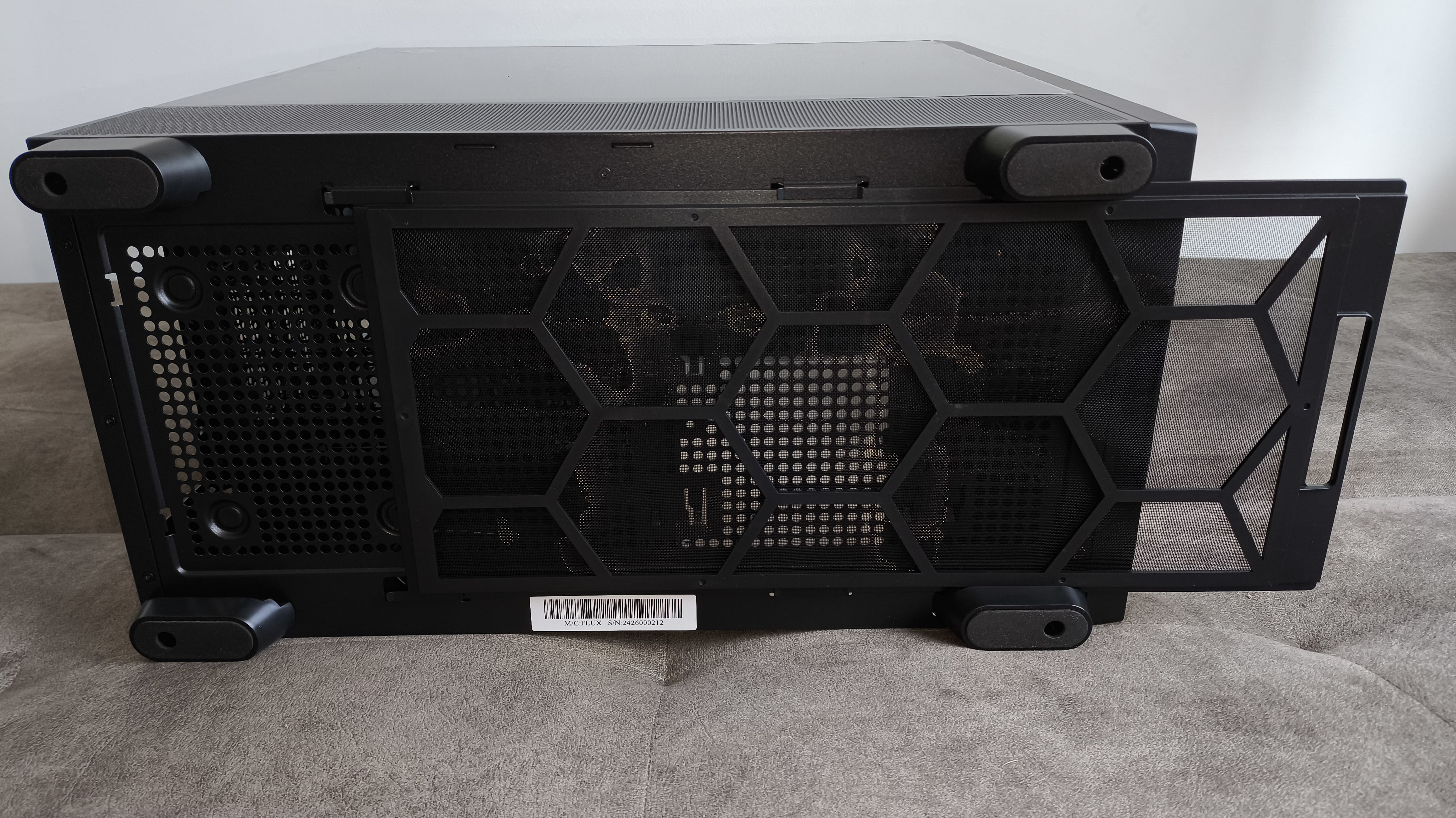 Konstrukcja obudowy została przygotowana z myślą o wygodzie użytkownika. Demontowalne panele bez użycia narzędzi, obecność magnetycznych i wsuwanych filtrów przeciwkurzowych, przestronna tacka montażowa i piwnica na zasilacz z siatkami wentylacyjnymi z obu stron tworzą środowisko przyjazne zarówno pod kątem codziennego użytkowania, jak i rozbudowy zestawu w przyszłości.