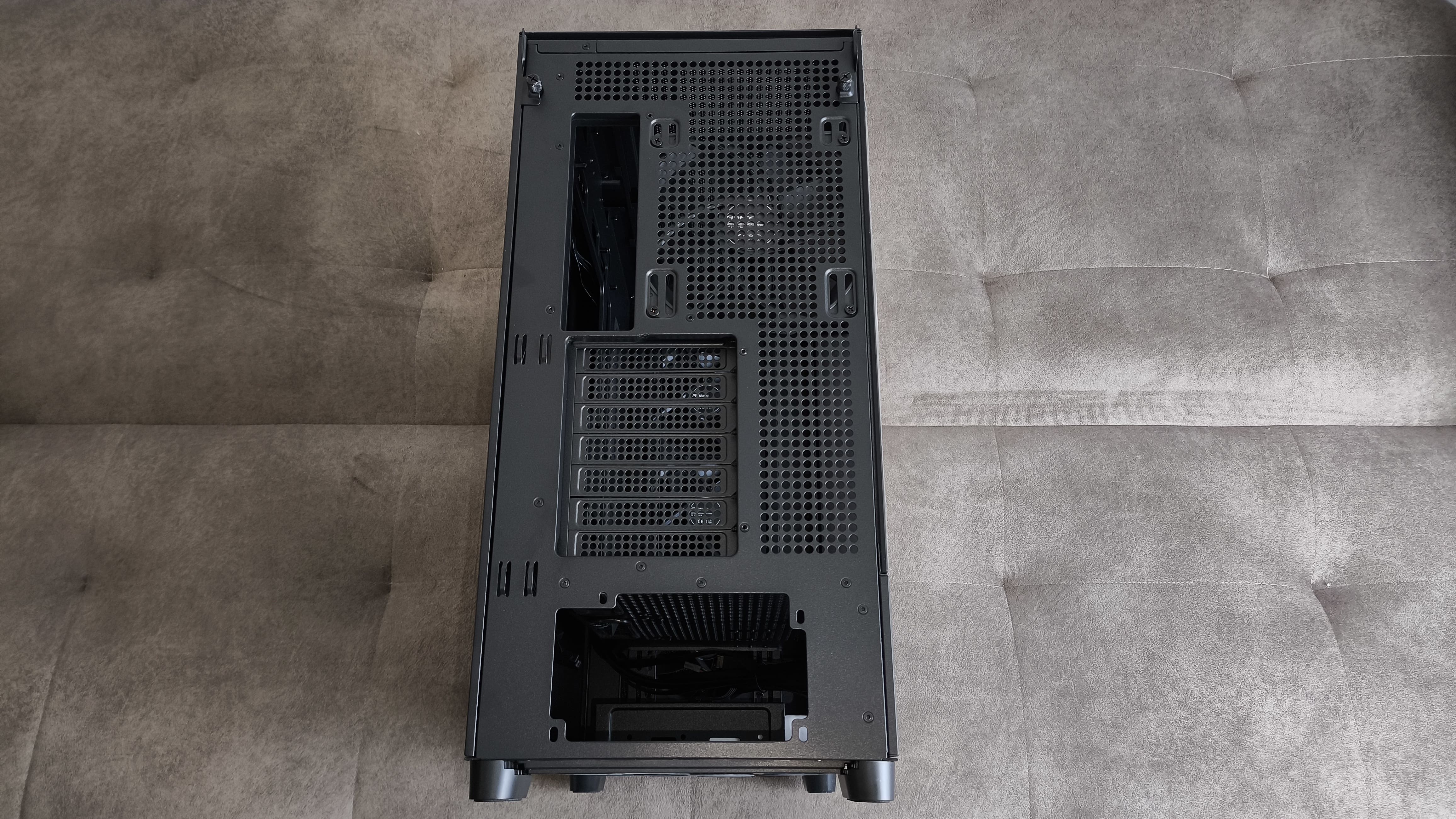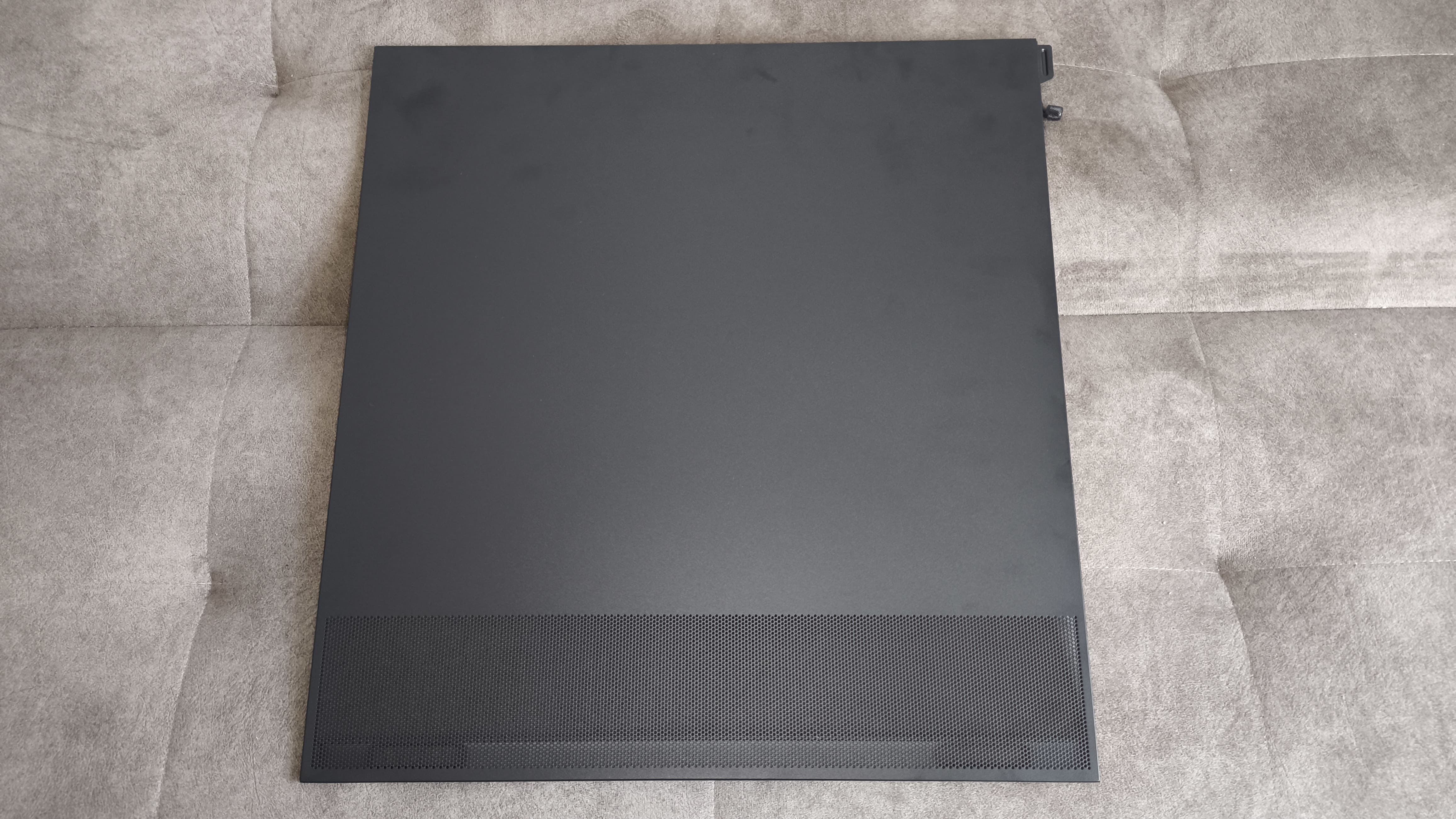 Boczne panele obudowy to klasyczny układ – jeden wykonany jest ze szkła hartowanego o grubości 4 mm (z osobnym metalowym, perforowanym panelem na wysokości piwnicy zasilacza), natomiast prawy panel jest całkowicie metalowy, perforowany na wysokości piwnicy PSU.