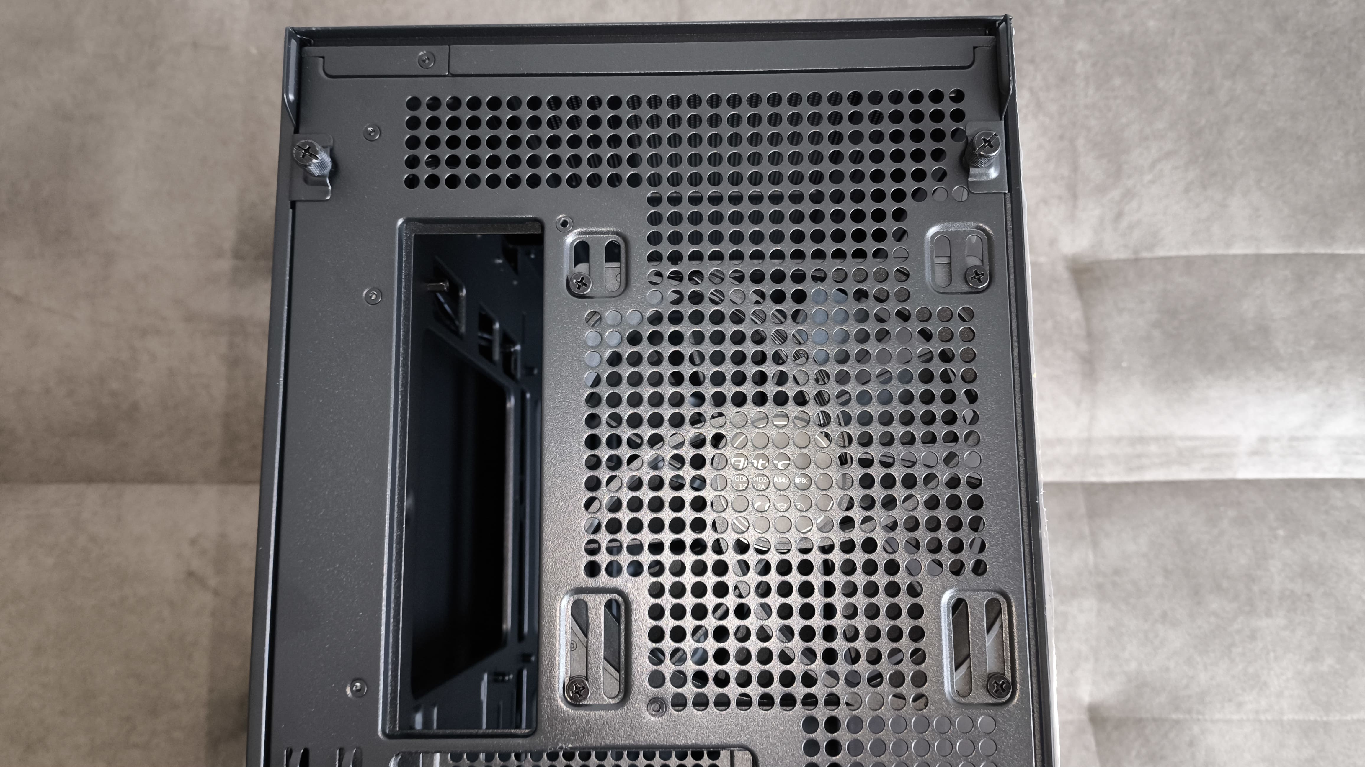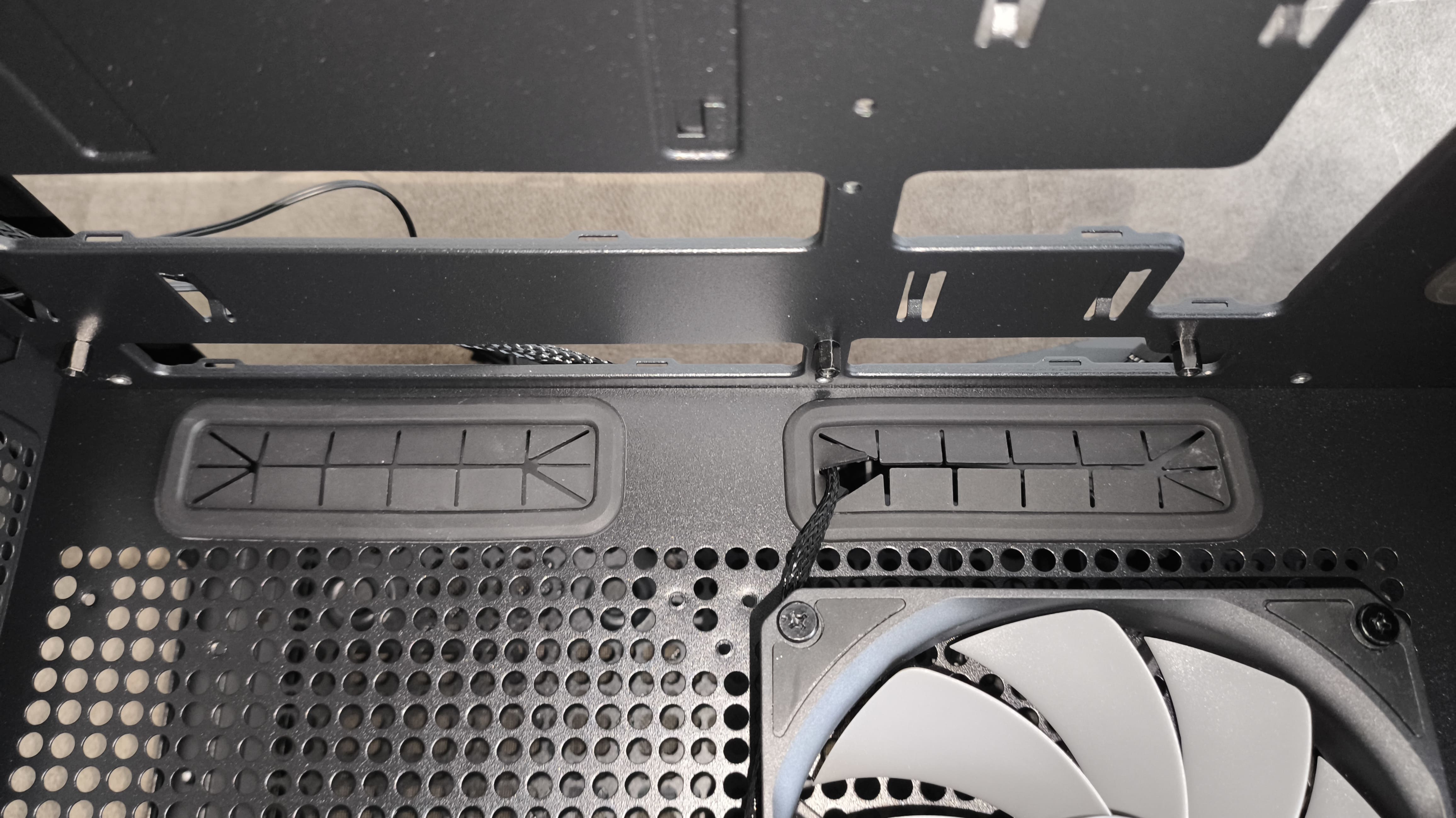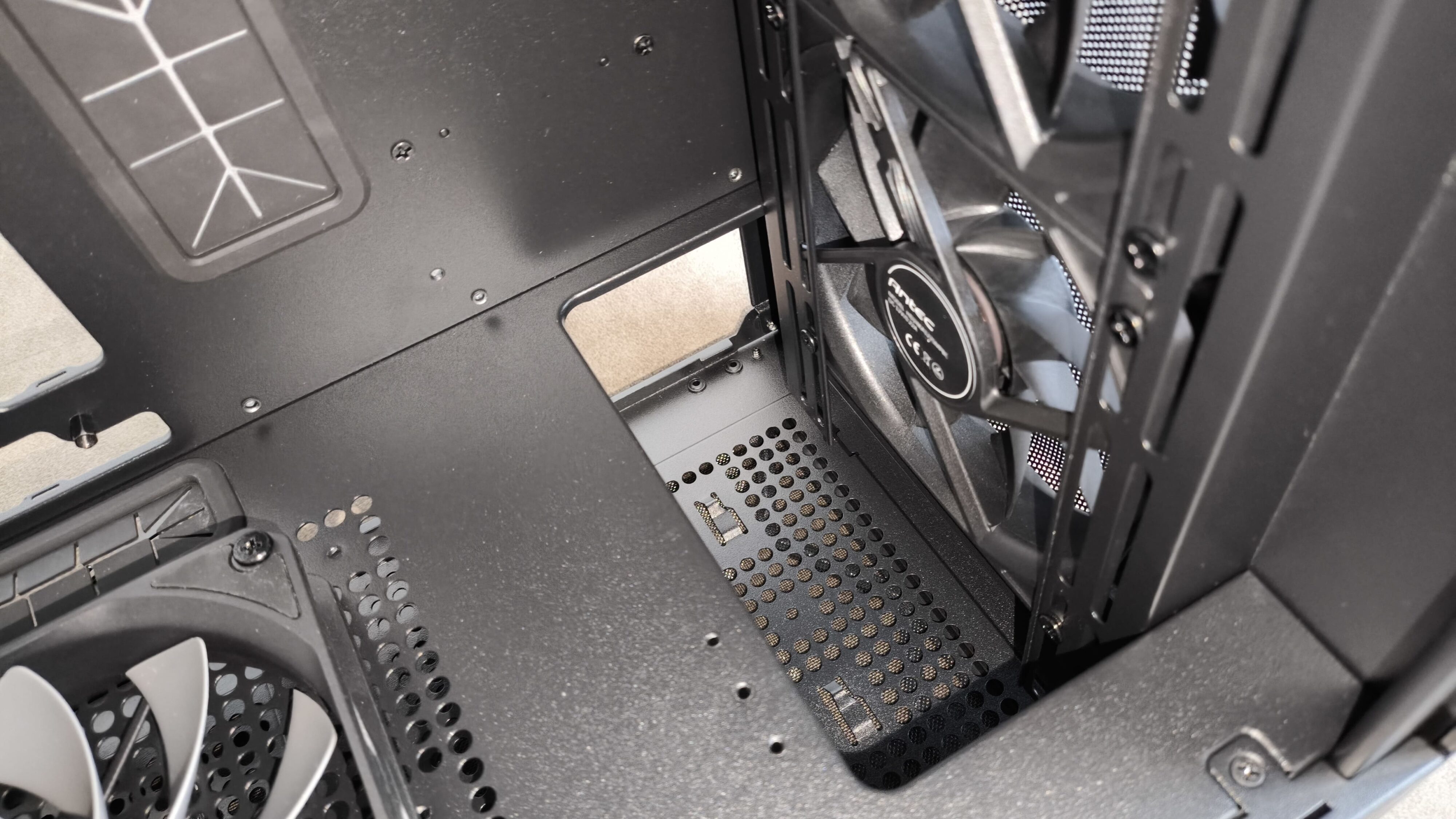 Na samym wierzchu osłony zasilacza przewidziano możliwość montażu kolejnego nośnika SSD 2.5′, choć w tej lokalizacji należy liczyć się z ewentualnym konfliktem przy montażu dolnych wentylatorów lub chłodnicy AIO 240 mm.