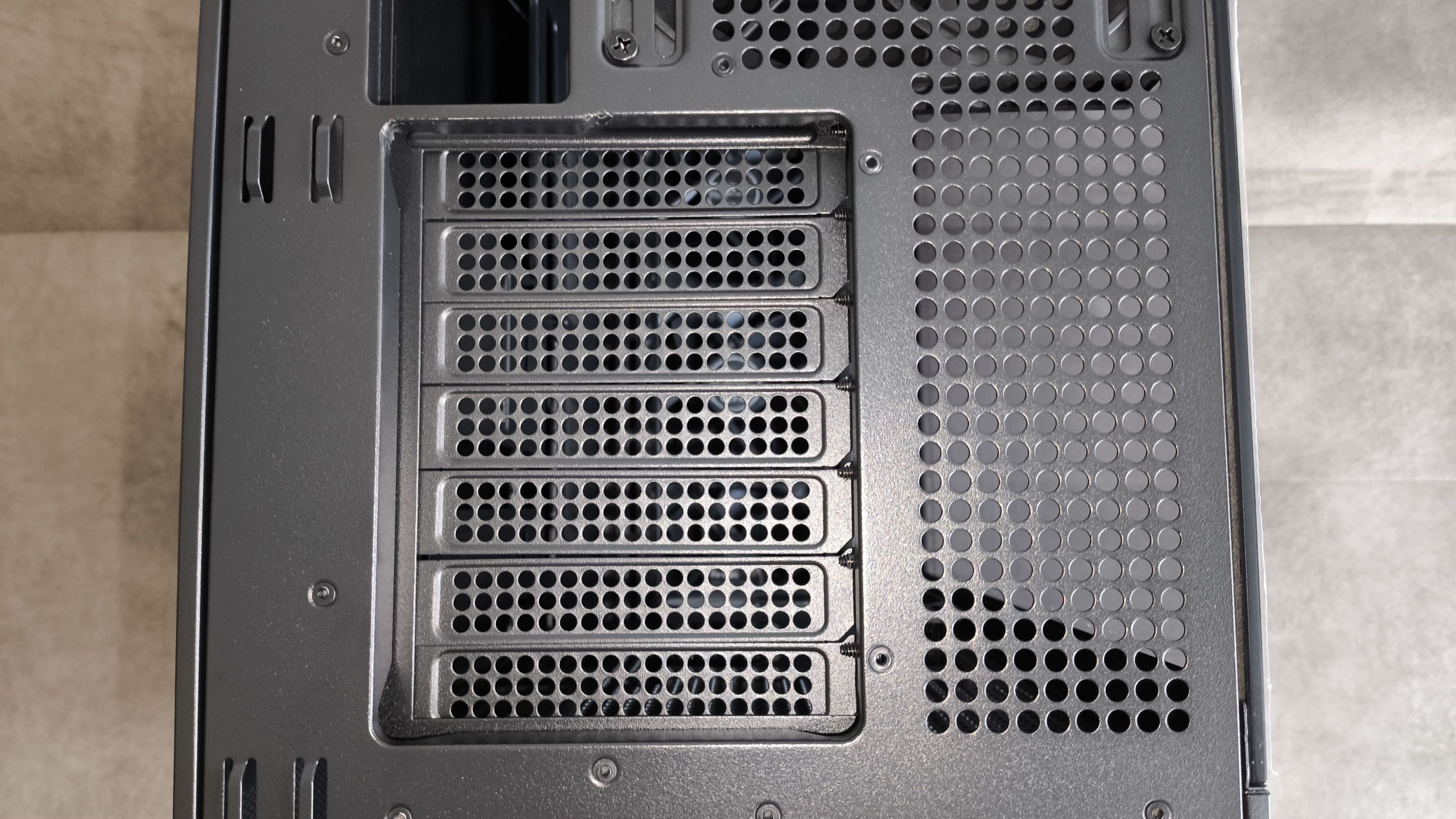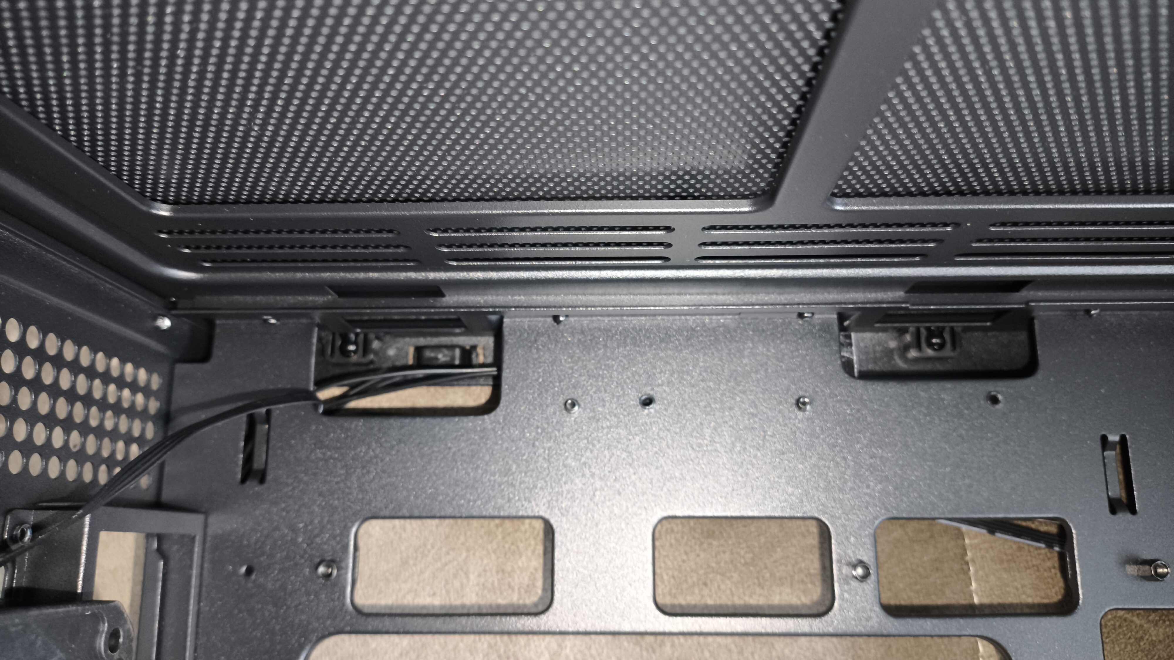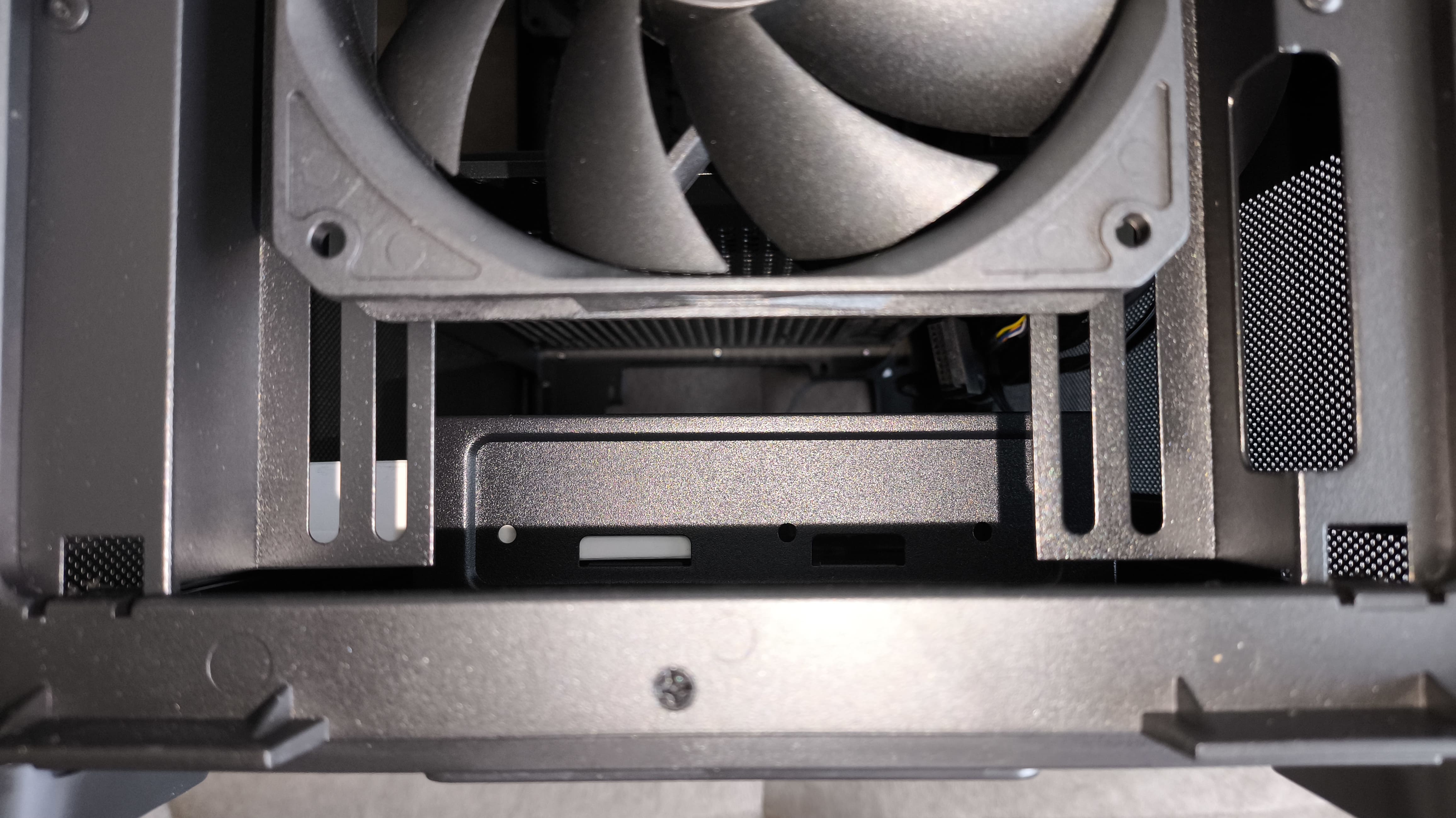 Na samym wierzchu osłony zasilacza przewidziano możliwość montażu kolejnego nośnika SSD 2.5′, choć w tej lokalizacji należy liczyć się z ewentualnym konfliktem przy montażu dolnych wentylatorów lub chłodnicy AIO 240 mm.