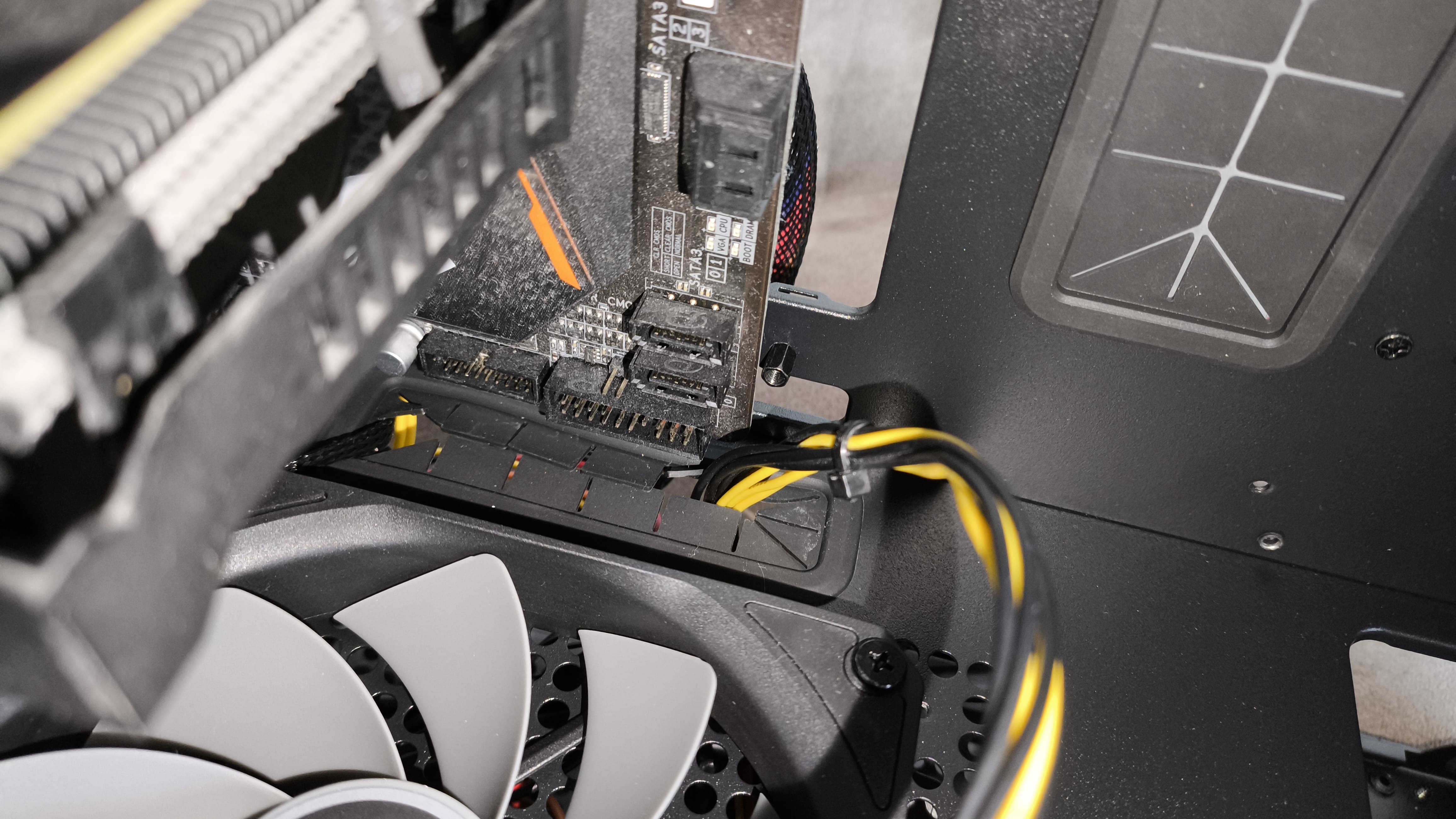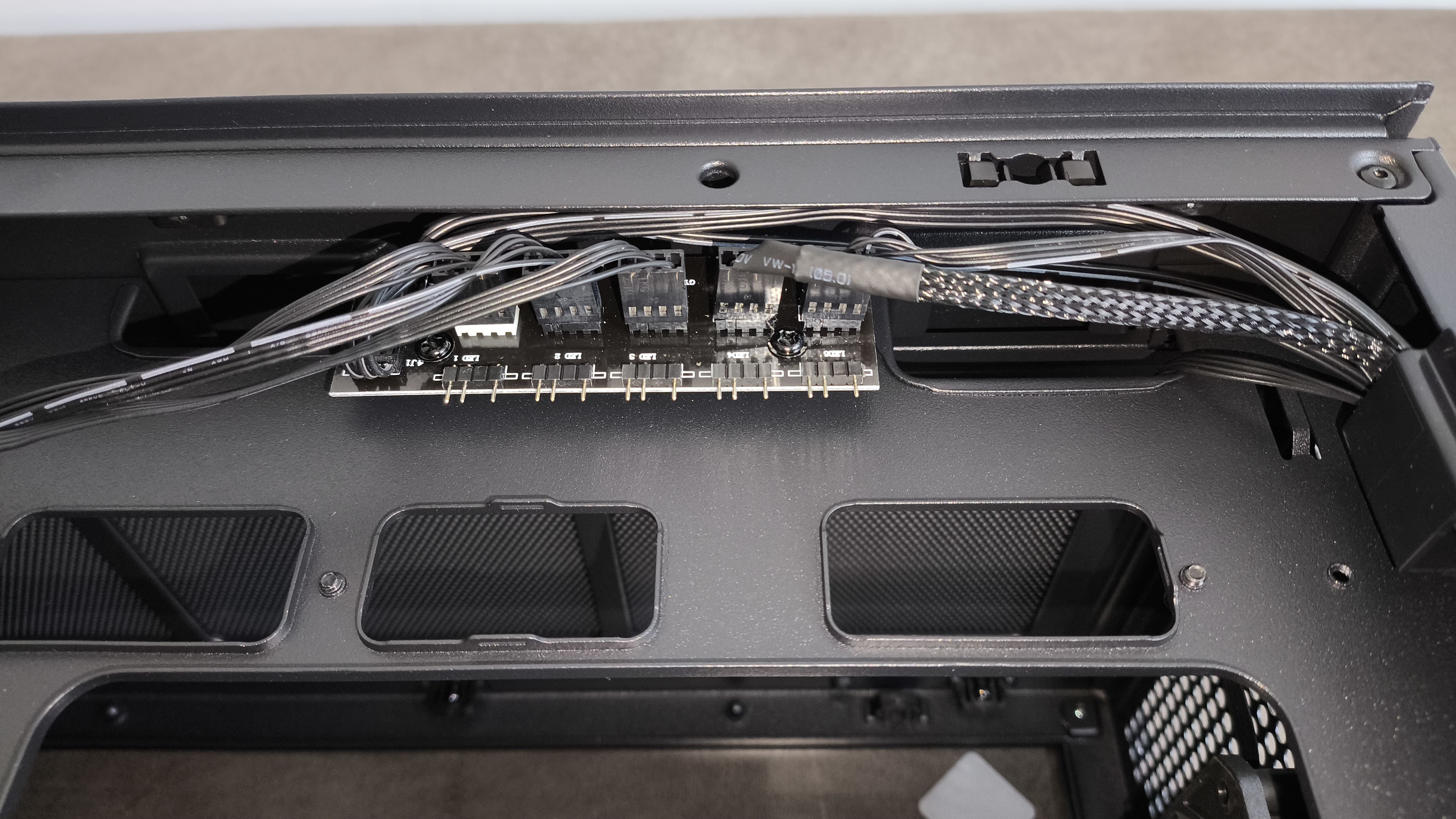 Wszystkie fabryczne wentylatory podłączone są do wbudowanego kontrolera PWM zasilanego przez złącze SATA. Hub ten umożliwia jednoczesne sterowanie do pięciu wentylatorów PWM, zapewniając centralne zarządzanie ich pracą bez potrzeby podłączania każdego z osobna do płyty głównej.