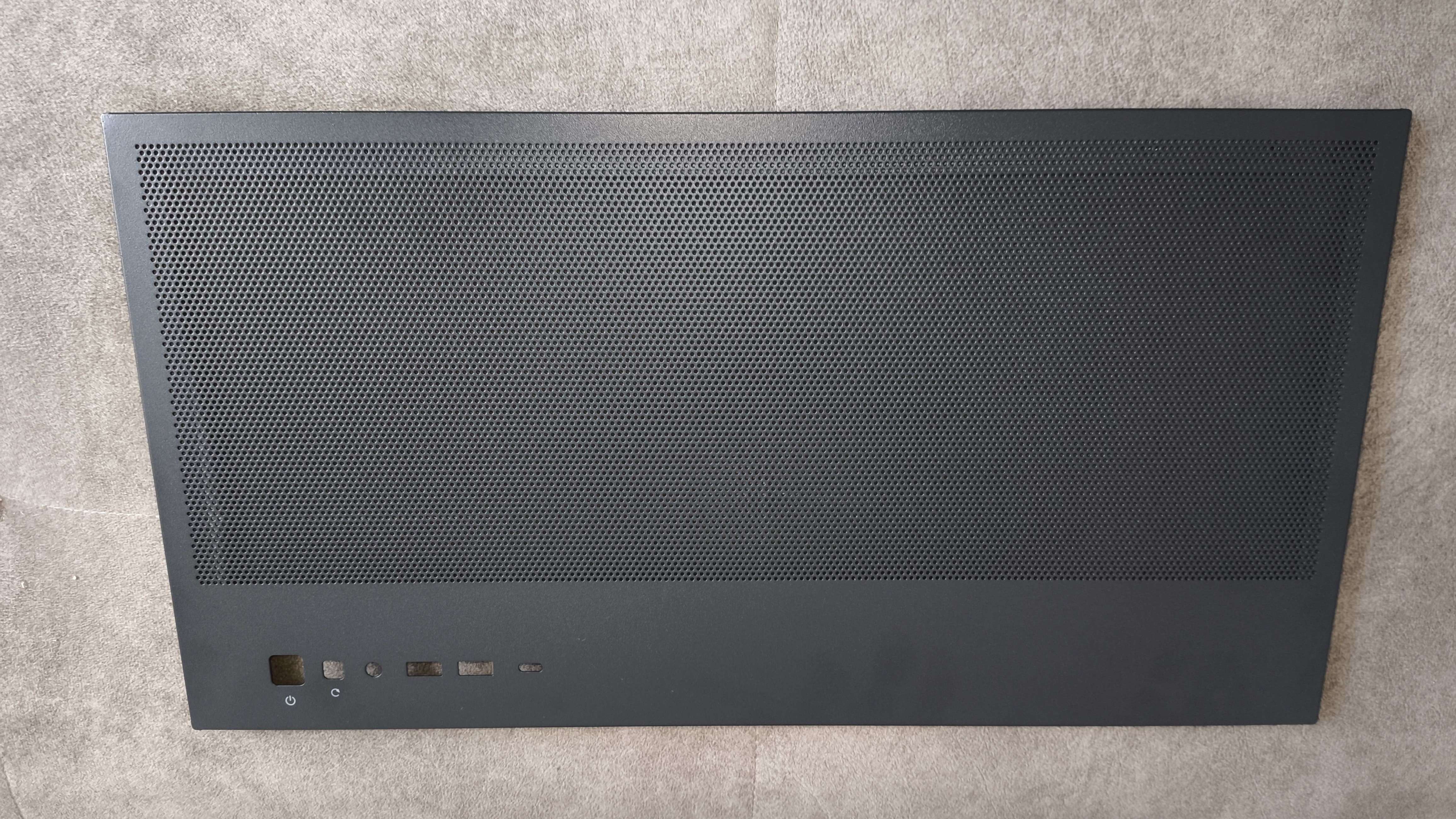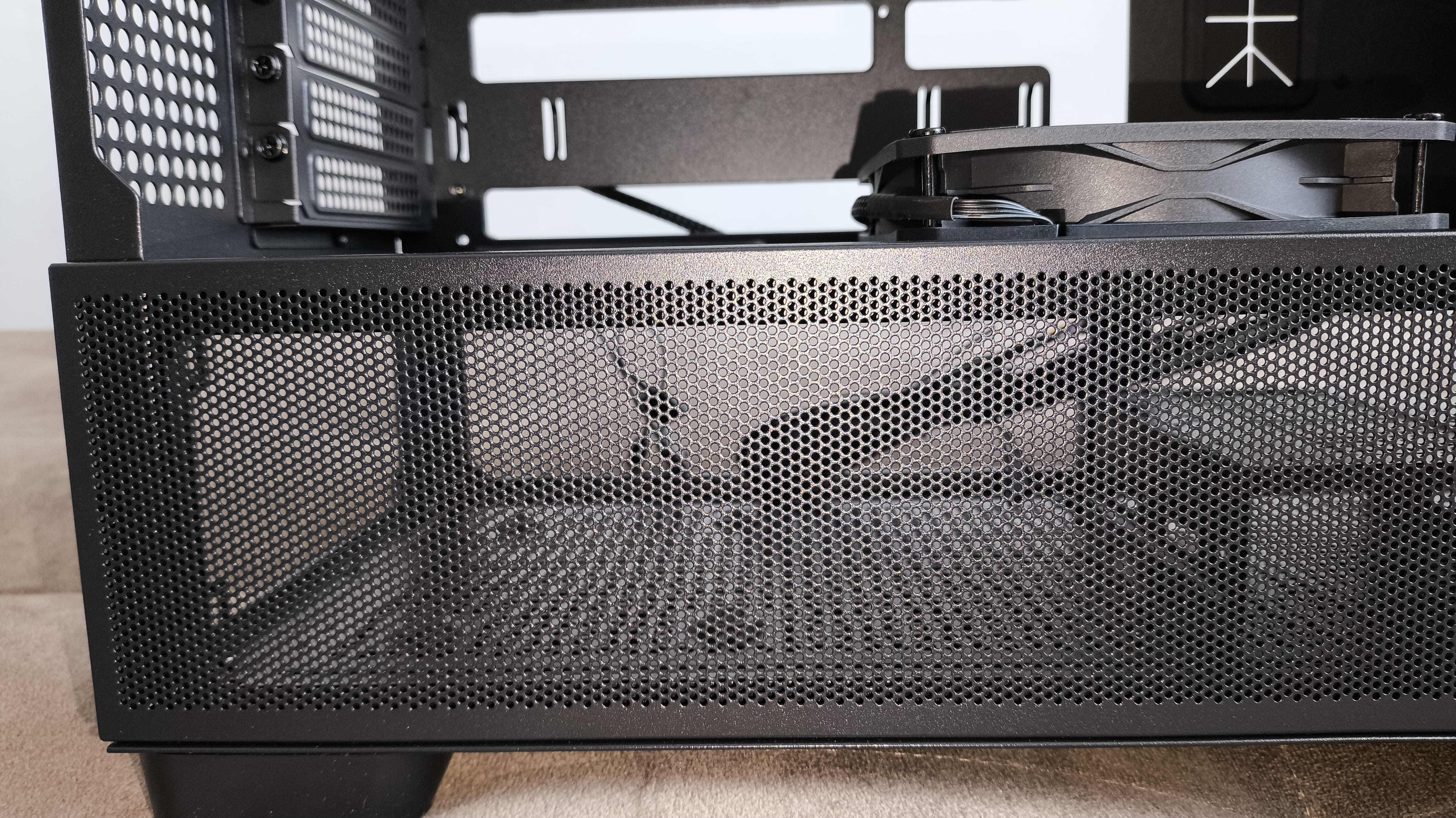 Front obudowy wykonany jest z siatki mesh o dużej gęstości (w stylu wizualnym ala Fractal Design Meshify), co ma zapewniać bardzo dobrą wentylację i efektywny przepływ powietrza do wnętrza.
