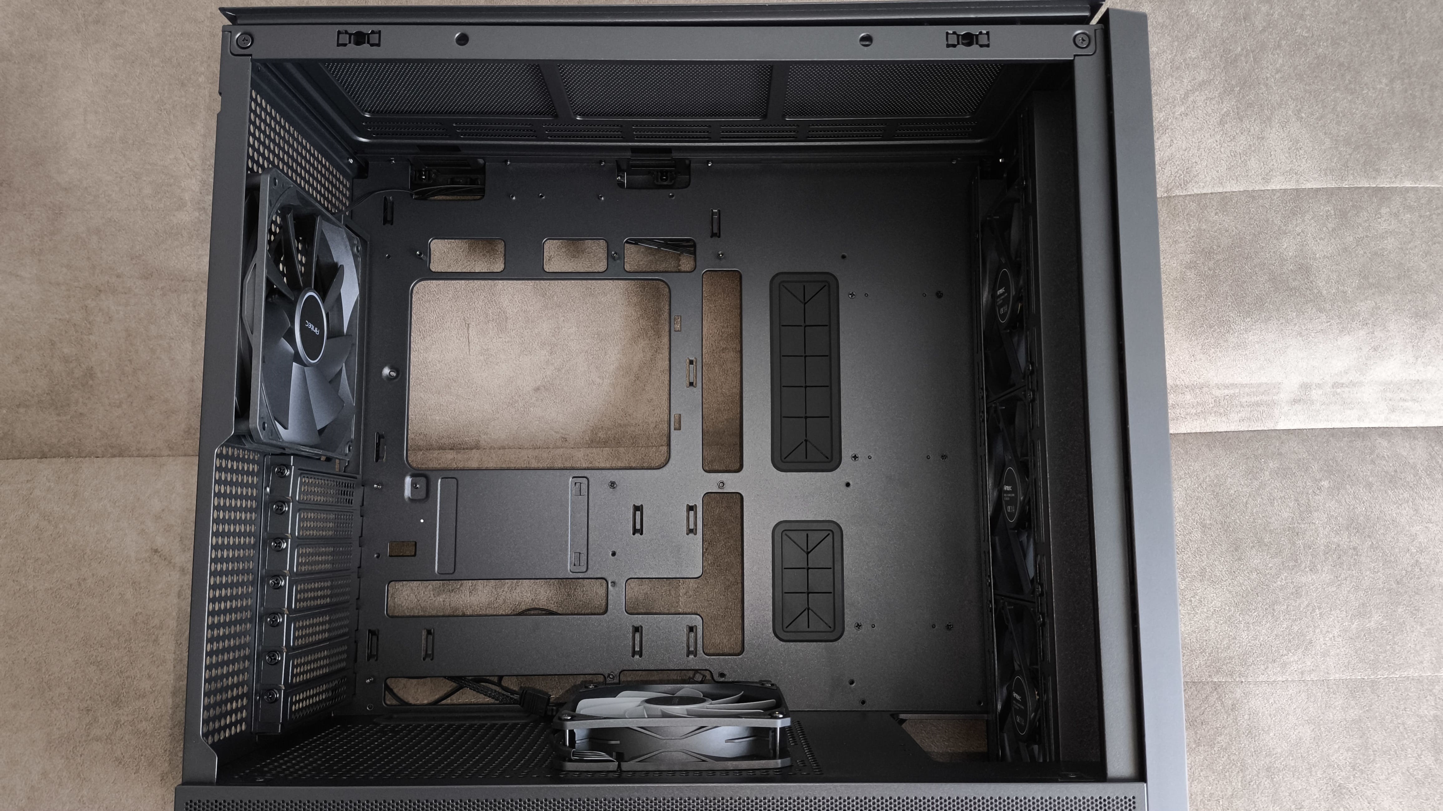 Już na papierze specyfikacja robi dobre wrażenie – pięć fabrycznie zamontowanych wentylatorów PWM, w tym jeden w konfiguracji odwrotnej (reverse fan) zamontowany na osłonie zasilacza, bogate możliwości montażowe dla chłodzeń wodnych i powietrznych, obsługa płyt głównych BTF, Stealth i Project Zero oraz wyjątkowo przestronne wnętrze jak na obudowę tej klasy. Nie brakuje tu także filtrów przeciwkurzowych, szerokiego kanału na okablowanie czy możliwości pionowego montażu karty graficznej.