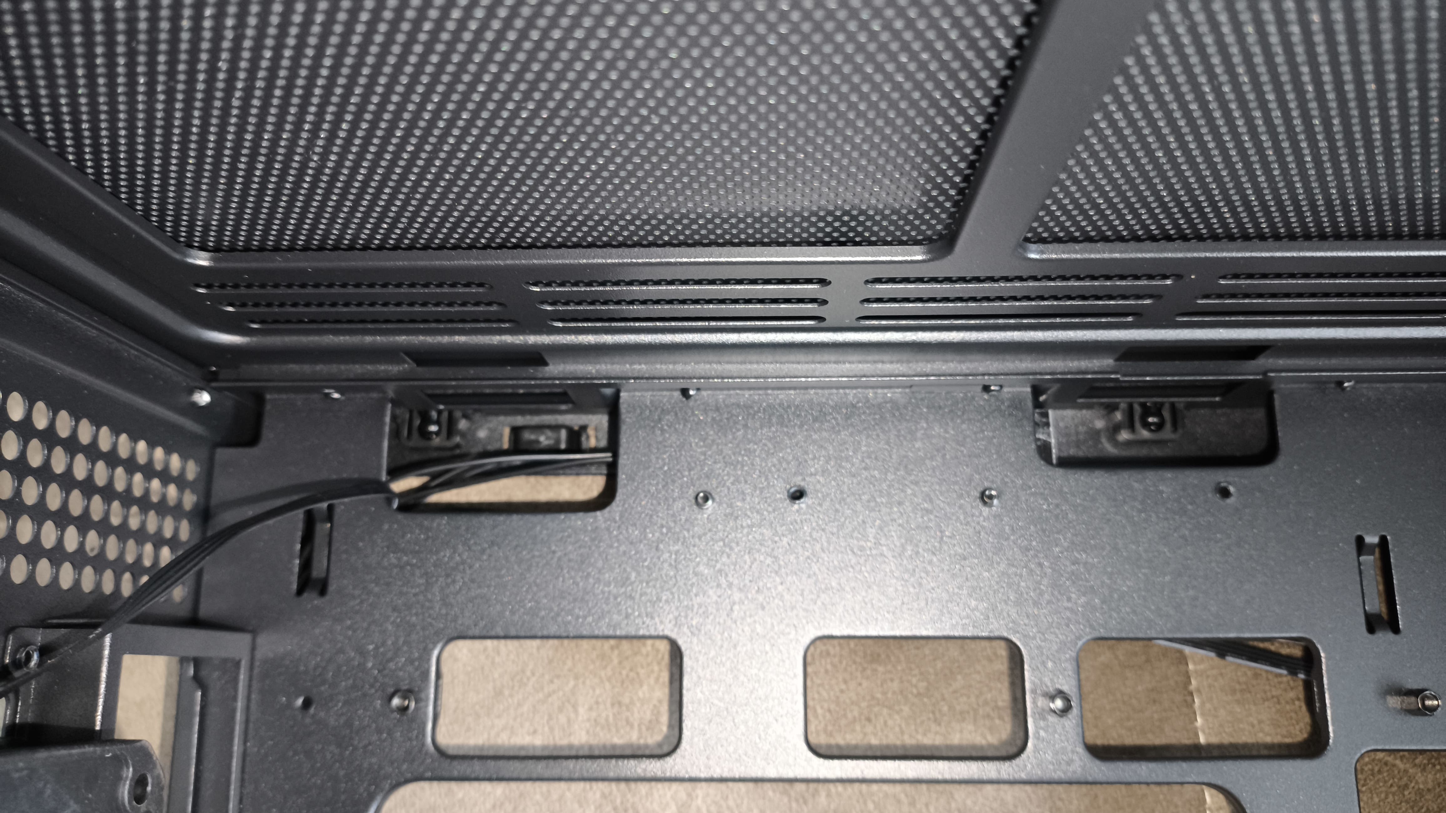 Na tacce montażowej znajdują się także gumowe przelotki (gromety), przez które można przeciągać te kable z zachowaniem estetyki oraz ochrony przed otarciami. Producent zadbał również o obecność plastikowych klipsów, które ułatwiają prowadzenie przewodów EPS oraz ewentualnych kabli RGB wzdłuż krawędzi obudowy.