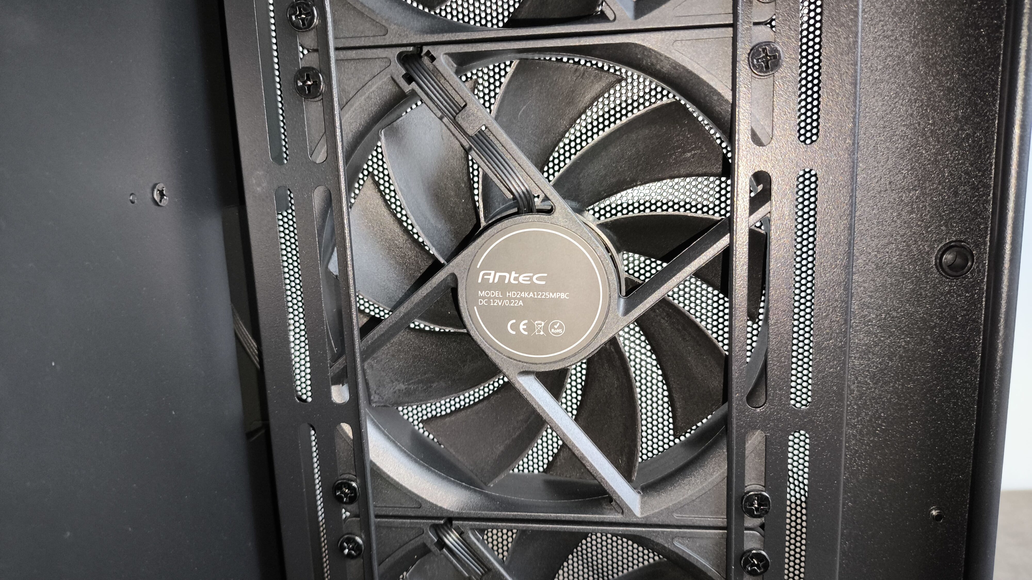 Z tyłu obudowy znajduje się natomiast pojedynczy wentylator o średnicy 140 mm, również wyposażony w sterowanie PWM i łożyska hydrauliczne. Jest to również dość cicha i wydajna jednostka, której prędkość obrotowa mieści się w zakresie 450–1500 RPM (±150 RPM), a generowany przepływ powietrza sięga nawet 86 CFM, co zapewnia efektywne wyciąganie ciepłego powietrza z wnętrza obudowy.