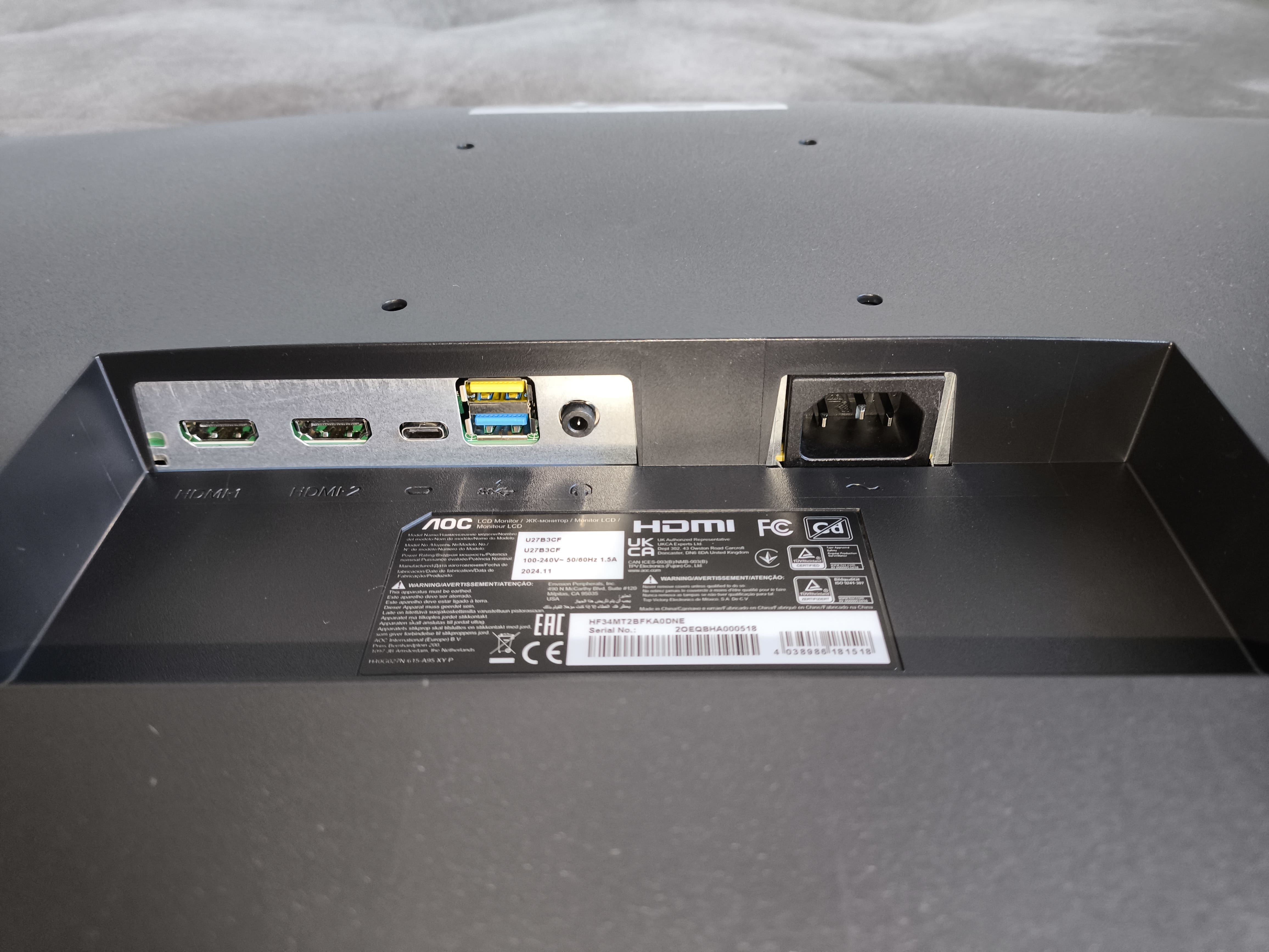 Monitor został wyposażony w dwa złącza HDMI 2.0 oraz jeden USB-C (65W). Wejścia DisplayPort w żadnej postaci tu nie uświadczymy. Rozwiązanie iście budżetowe. O standardowym mocowaniu VESA 100 x 100 mm dla uchwytów ściennych nie muszę oczywiście wspominać.