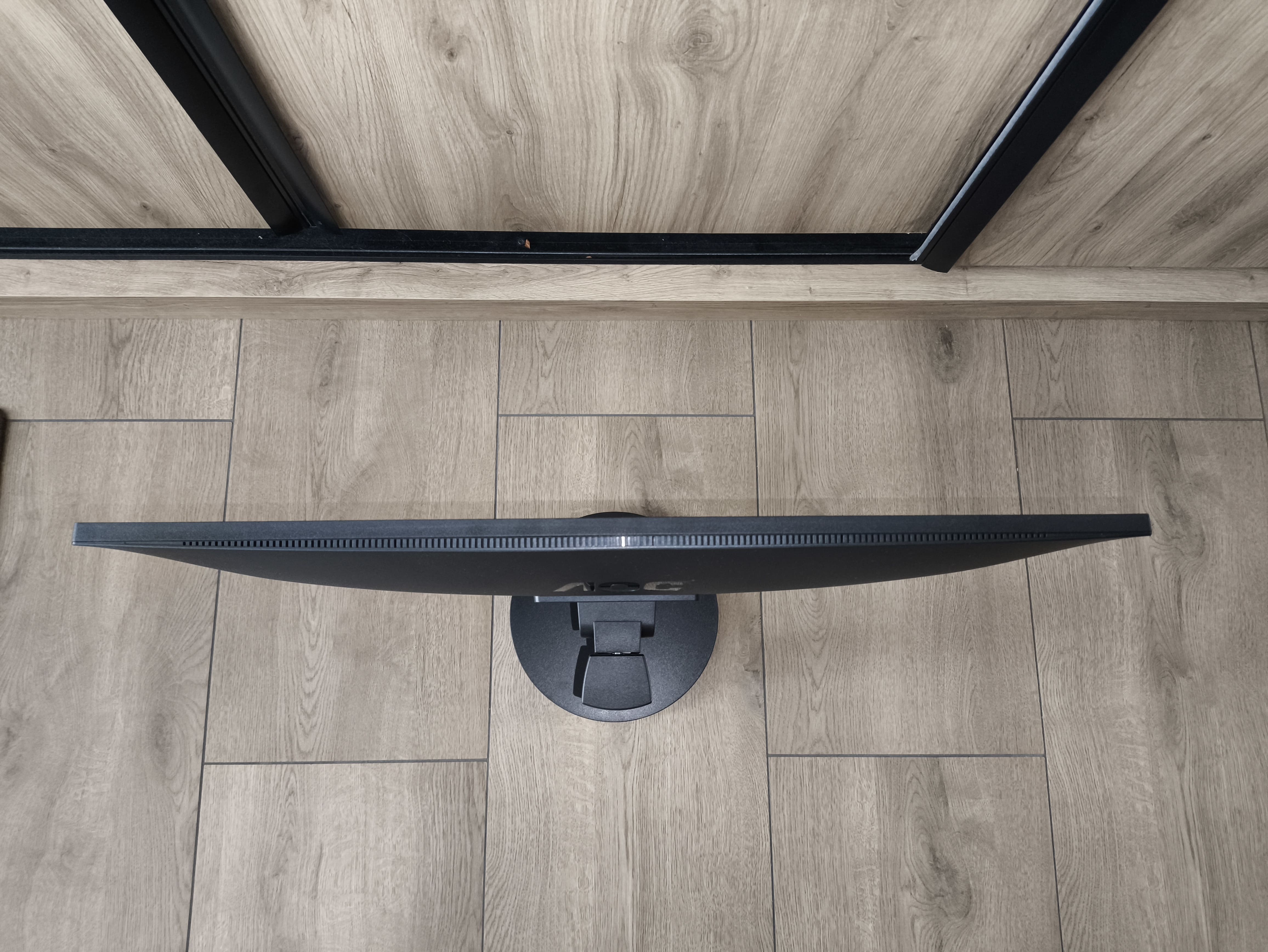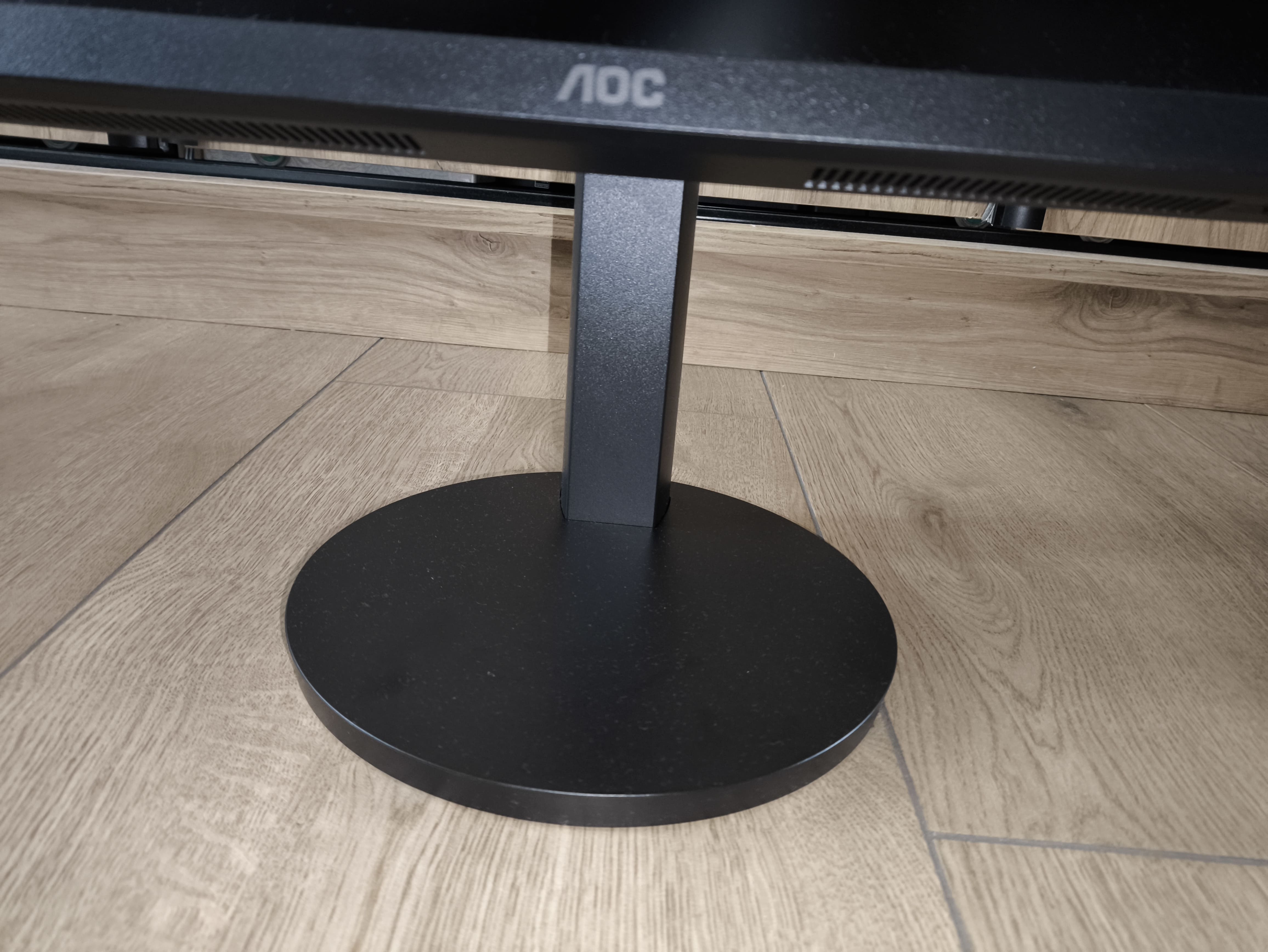 Jakość spasowania elementów stoi na dość wysokim poziomie, a monitor sprawia wrażenie solidnego – nie stwierdziłem żadnych niepokojących trzasków czy luzów. Na przednim panelu, w dolnej części, znajduje się dyskretne logo AOC, a pod obudową, w prawym rogu, umieszczono ikony i diodę LED sygnalizującą status pracy.