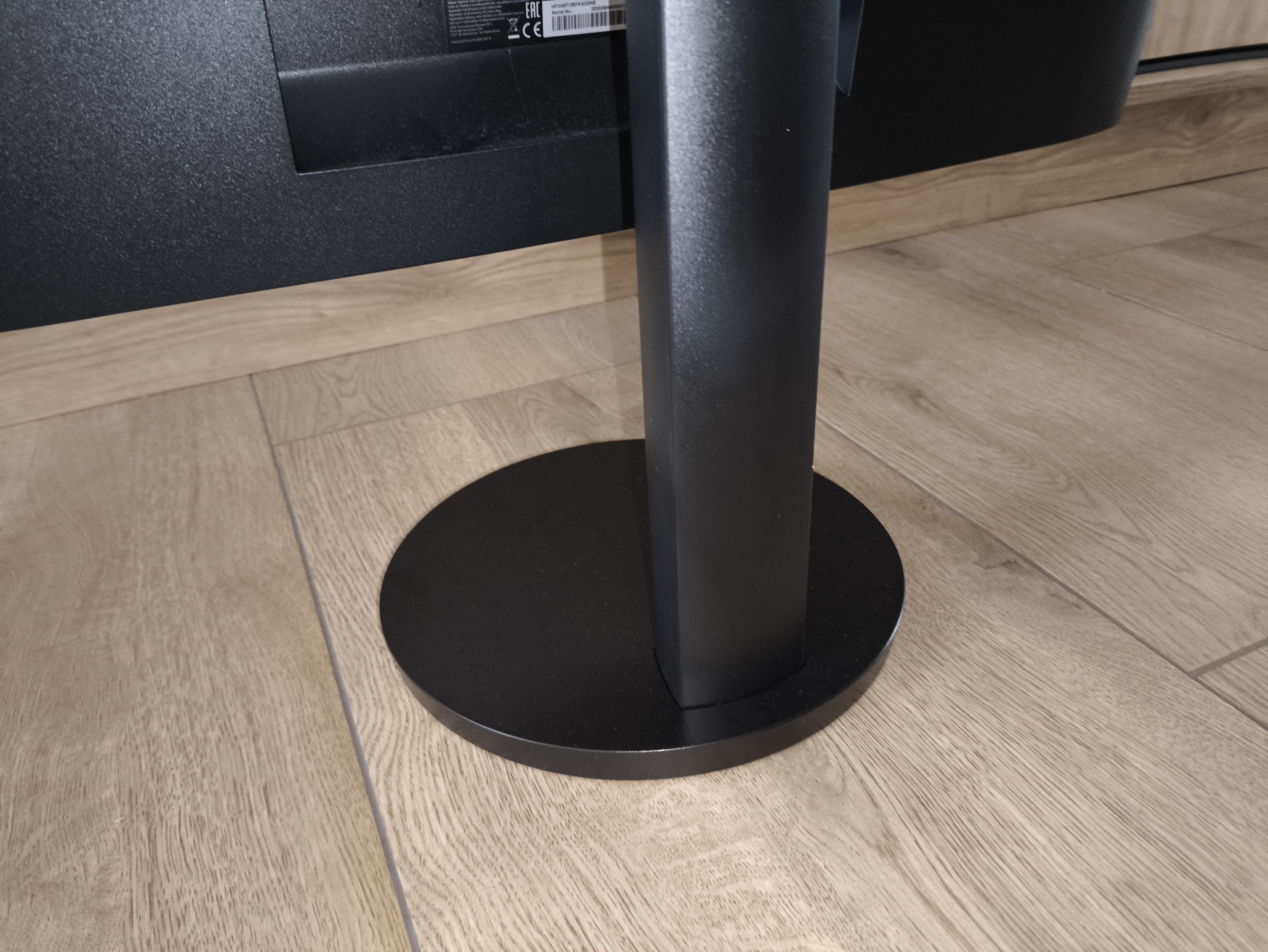 Z tyłu monitora znajduje się okrągłe mocowanie dla dołączonej podstawy. Dużym plusem tego rozwiązania jest to, że okrągła stopa zajmuje niewiele miejsca na biurku.