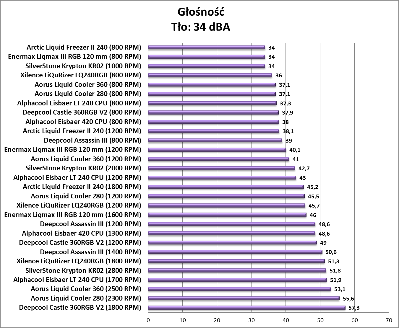 Zacznijmy od wersji 280. Chłodzenie jest bardzo wydajne, ale niestety też dosyć głośne. O pracy na maksymalnych obrotach nie ma mowy, bowiem to zdecydowanie przeszkadza. Na 1200 RPM jest już ciszej, ale dopiero 800 RPM zapewnia bardzo dobrą kulturę pracy. Za to na praktycznie każdych obrotach wentylatorów wydajność jest bardzo dobra.