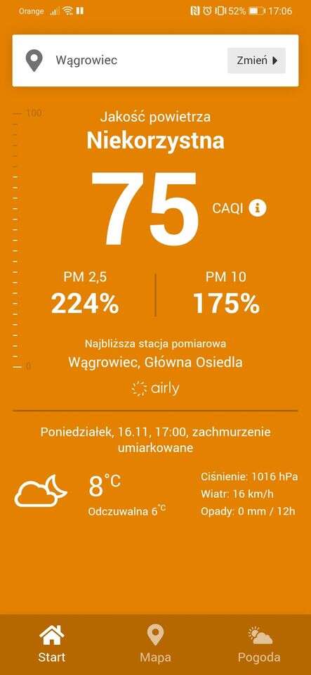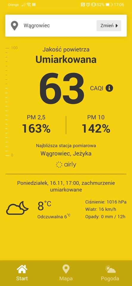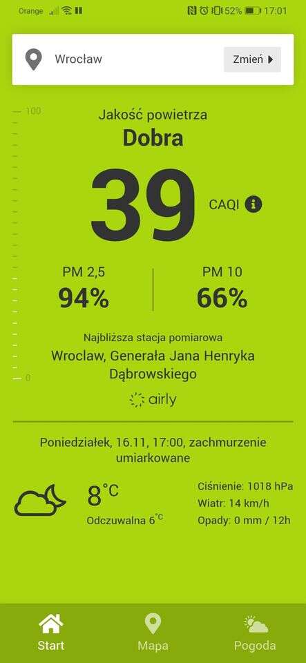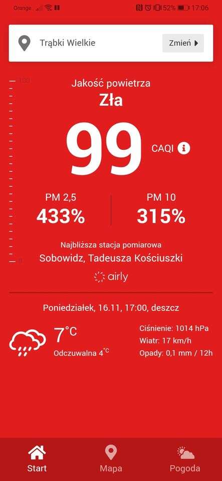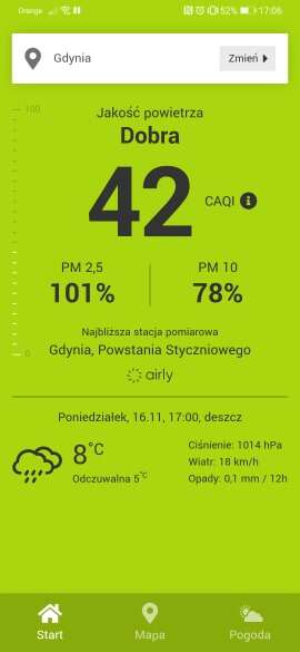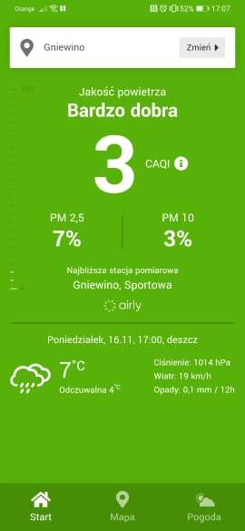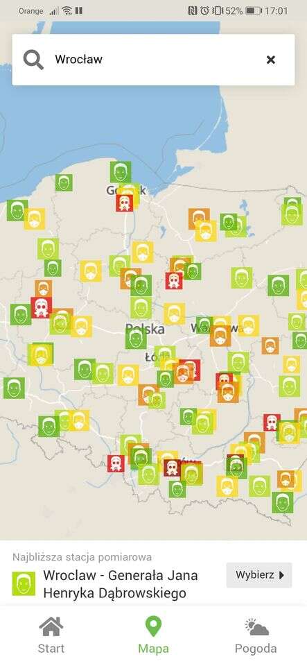 Aplikacja Czysta Polska wyróżnia się na tle innych czytelnością i prostotą działania. To typowa apka, która ma spełniać jedno zadanie – pokazywać jakość powietrza.