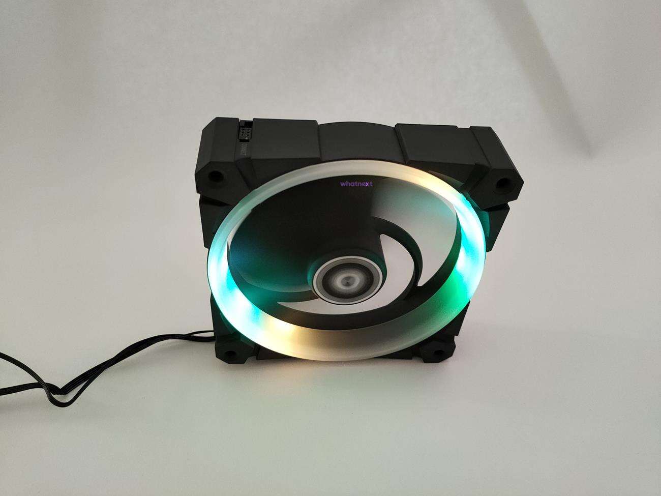 Wentylator otrzymałem w schludnym pudełku. Wraz z nim w środku znajdują się różne kable. Śmigło ma wyjątkową konstrukcję, bowiem nie wychodzą z niej żadne kable. Te są doczepiane, co pozwala np. na połączenie kilku śmigieł w jeden zestaw zasilany z jednego złącza 4 pin i sterowany jednym złączem ARGB. Jest to świetne rozwiązanie, które ułatwi zarządzanie okablowaniem. Gwarancja tym razem wynosi 2 lata.