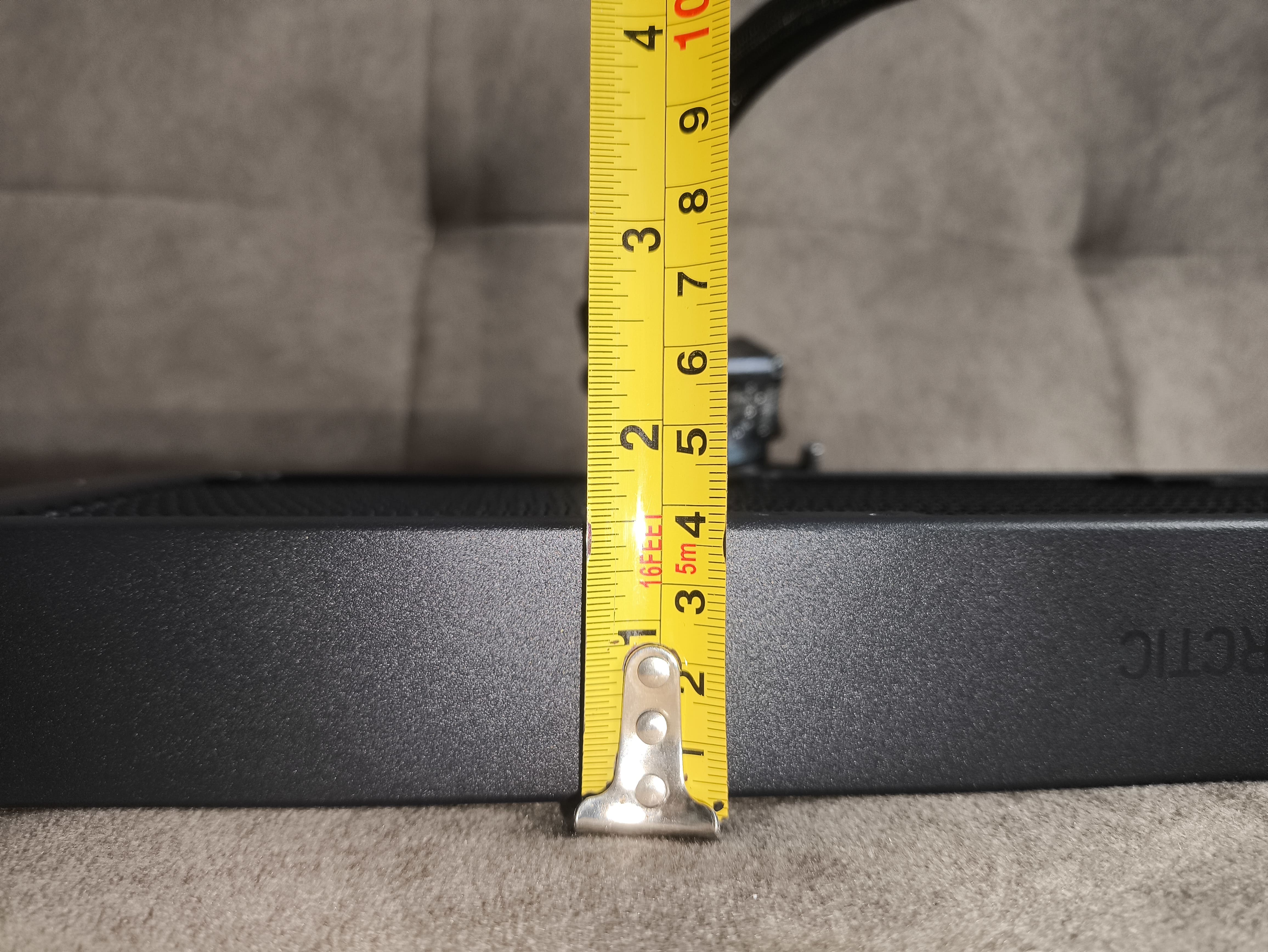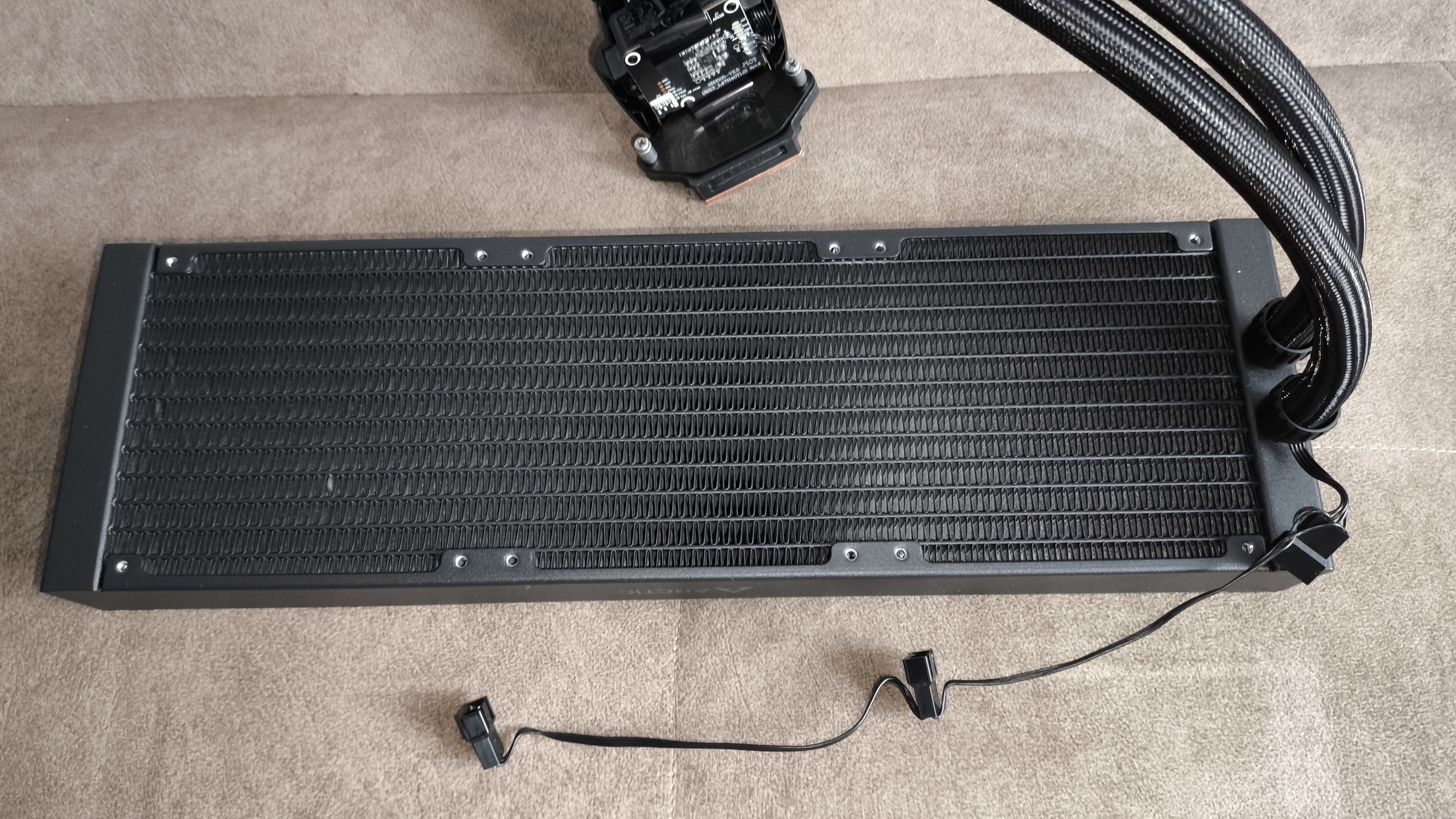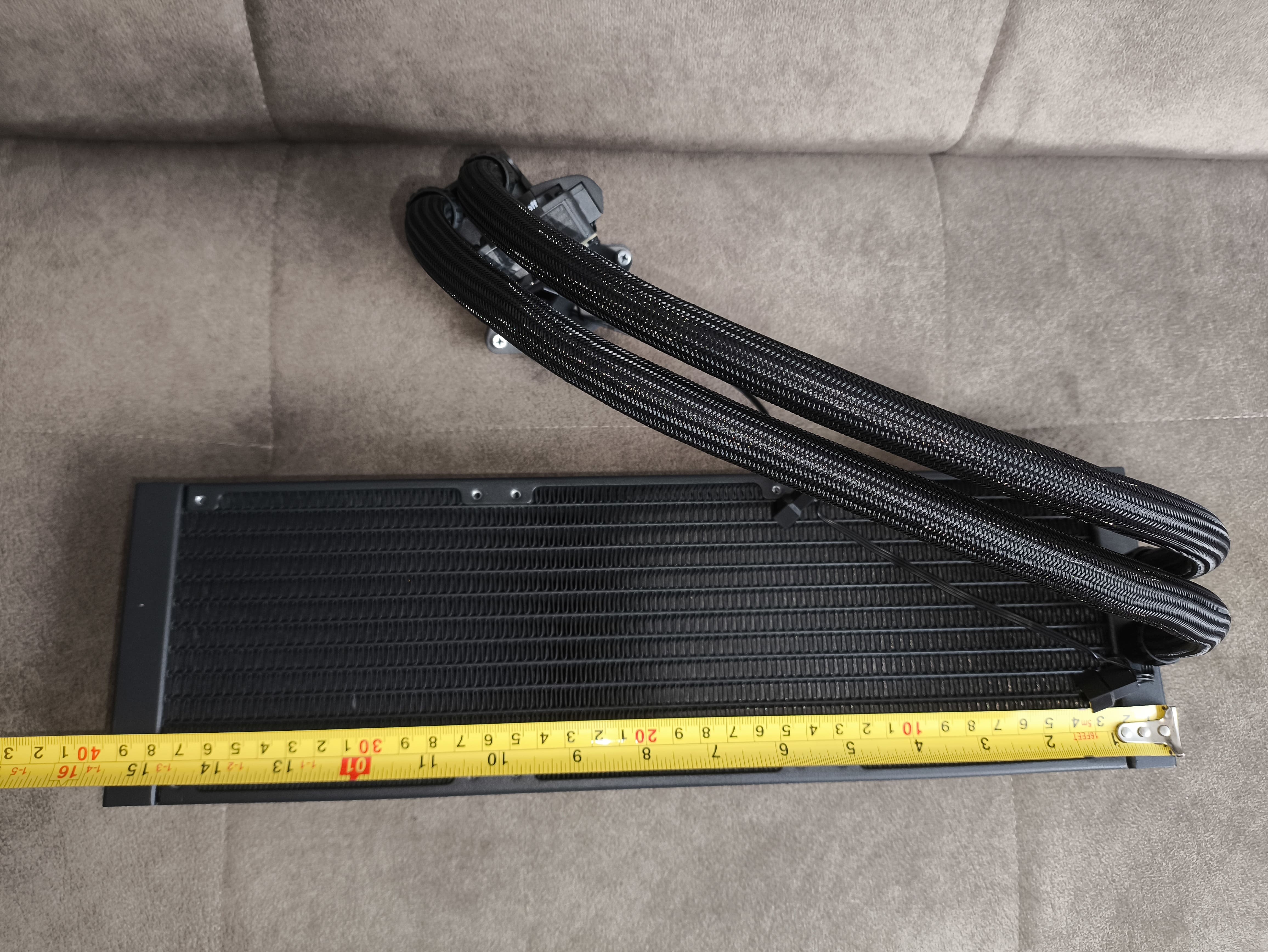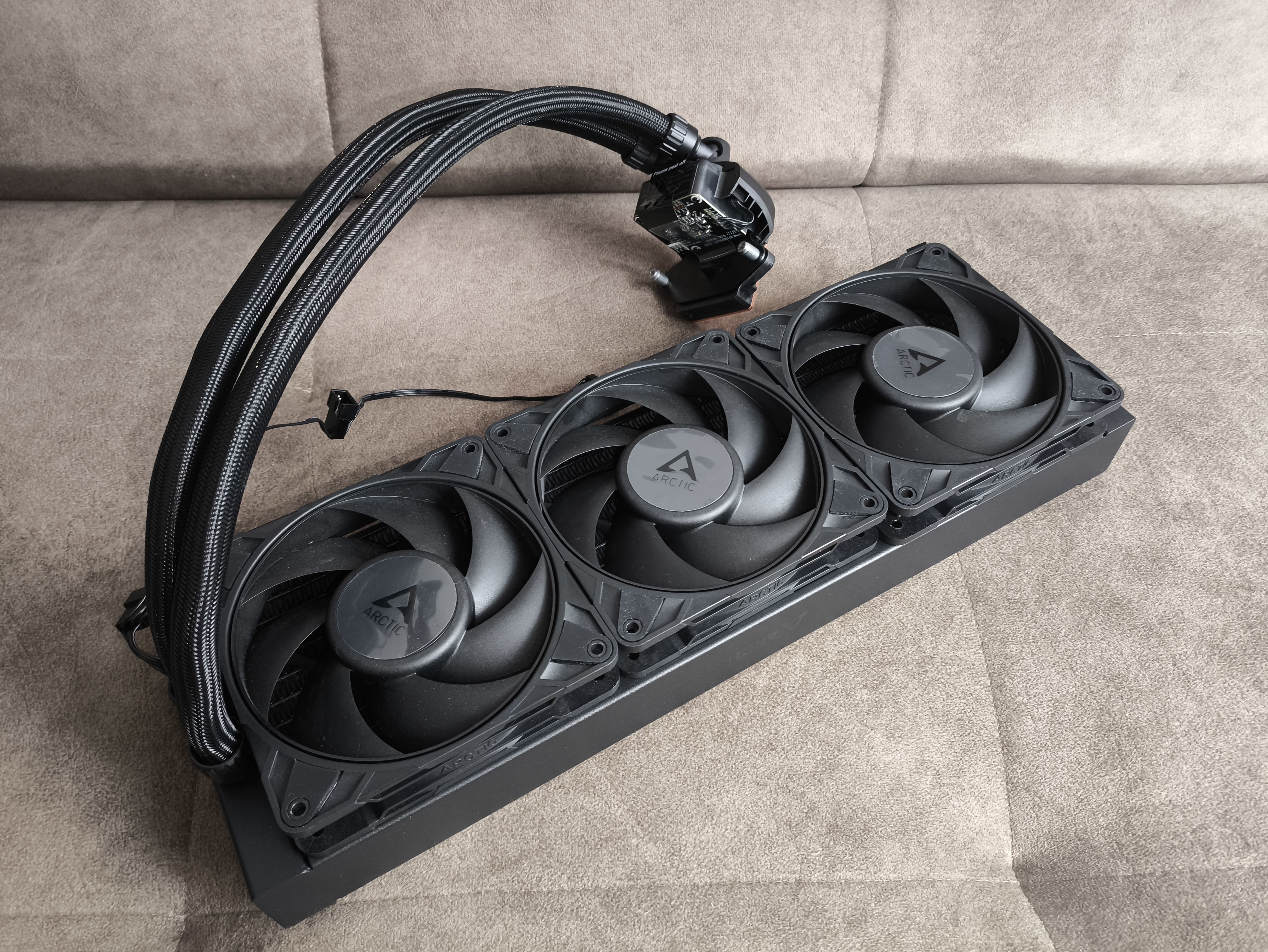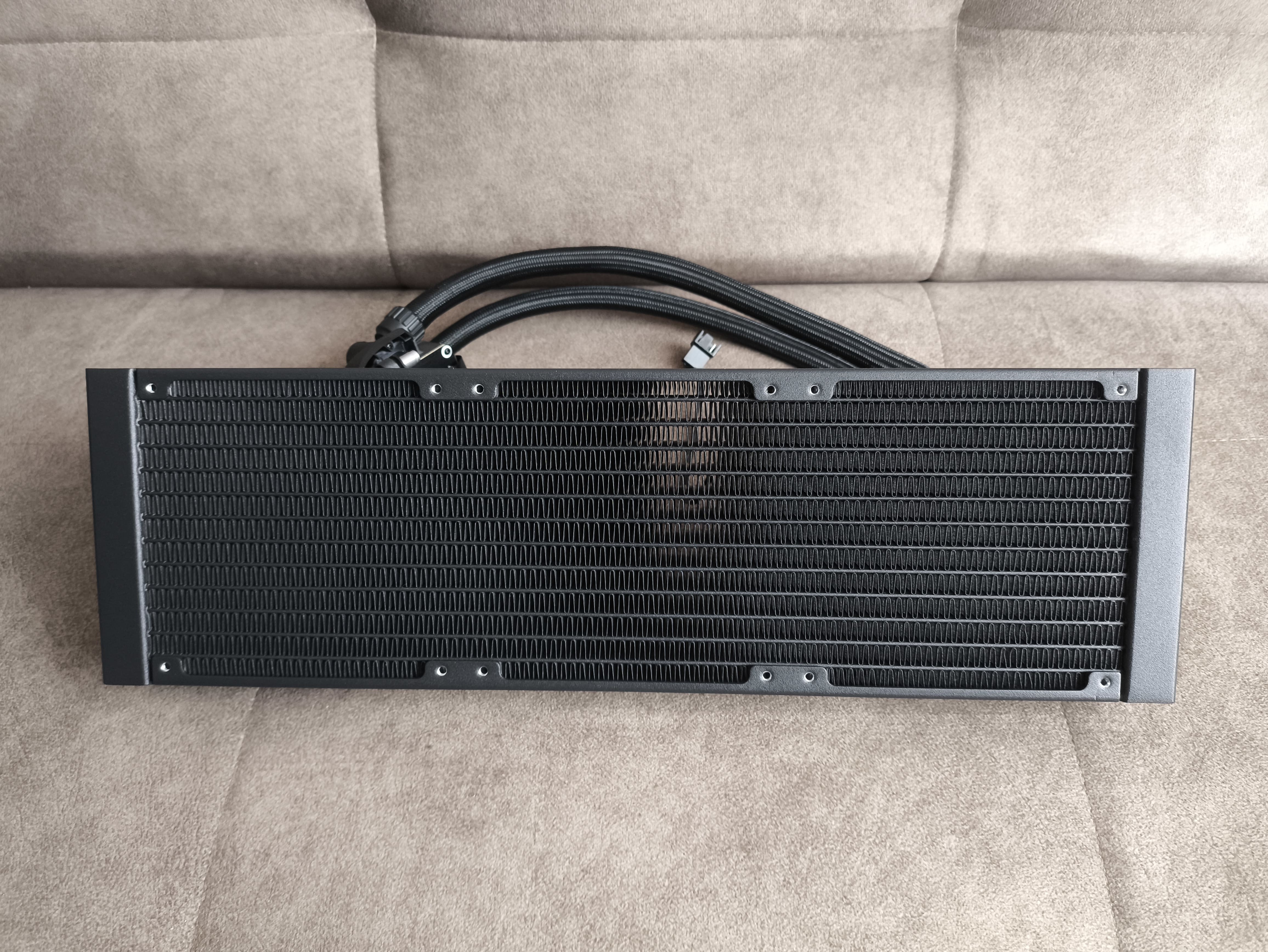 Mimo że Arctic Liquid Freezer III Pro 360 wciąż korzysta z aluminiowego radiatora (o wymiarach 397 × 120 × 38 mm), to całość sprawia znacznie bardziej prestiżowe wrażenie niż większość konkurencyjnych rozwiązań. Blok jest wyczuwalnie masywny, a jego bardziej kanciasta forma dobrze leży w dłoniach. Innymi słowy, grubość na poziomie 38 mm jest tu bardzo wyraźna i znacząco odróżnia konstrukcję od standardowych radiatorów o grubości 27 mm, spotykanych w standardowych zestawach AiO.