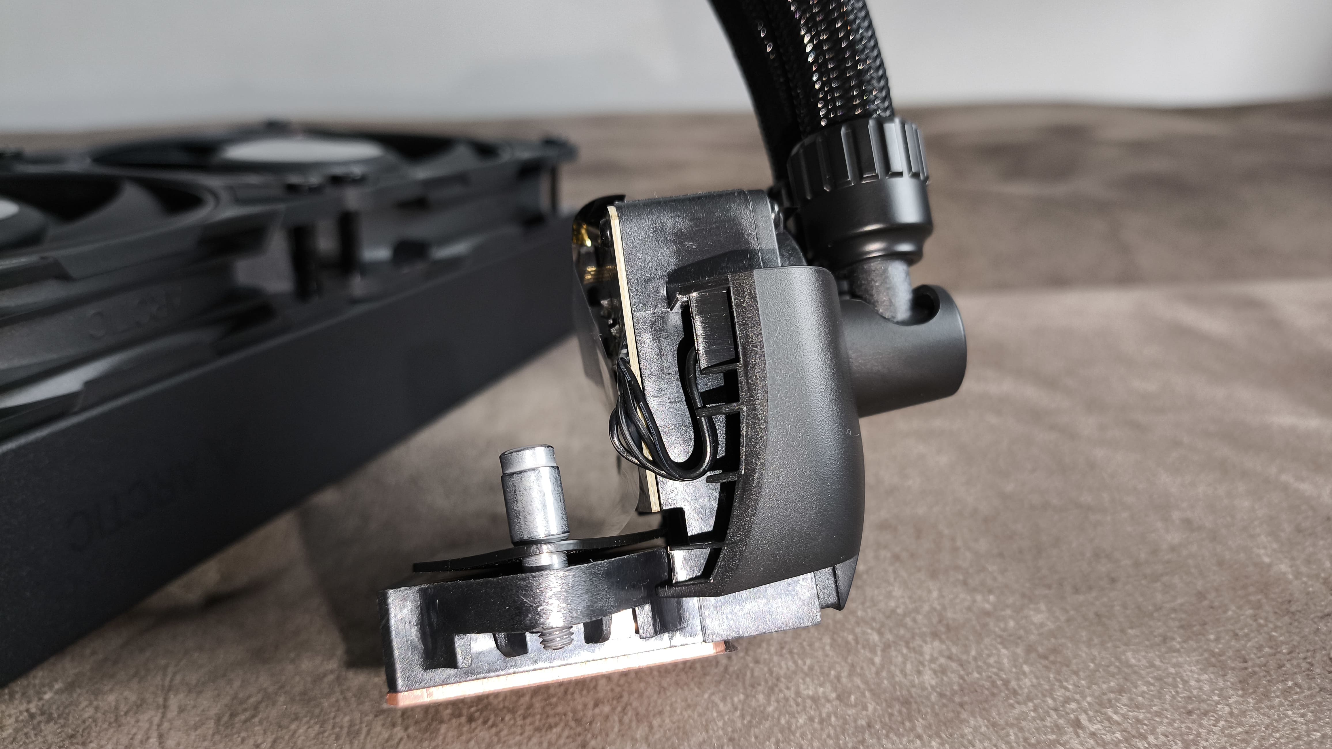 Arctic zastosował tu plastikowe złączki zamiast metalowych, jak w poprzedniej generacji – i to można uznać za drobny minus. Chłodzenie to nie posiada portu napełniania, co wydłużyłoby żywotność AIO. Szkoda.