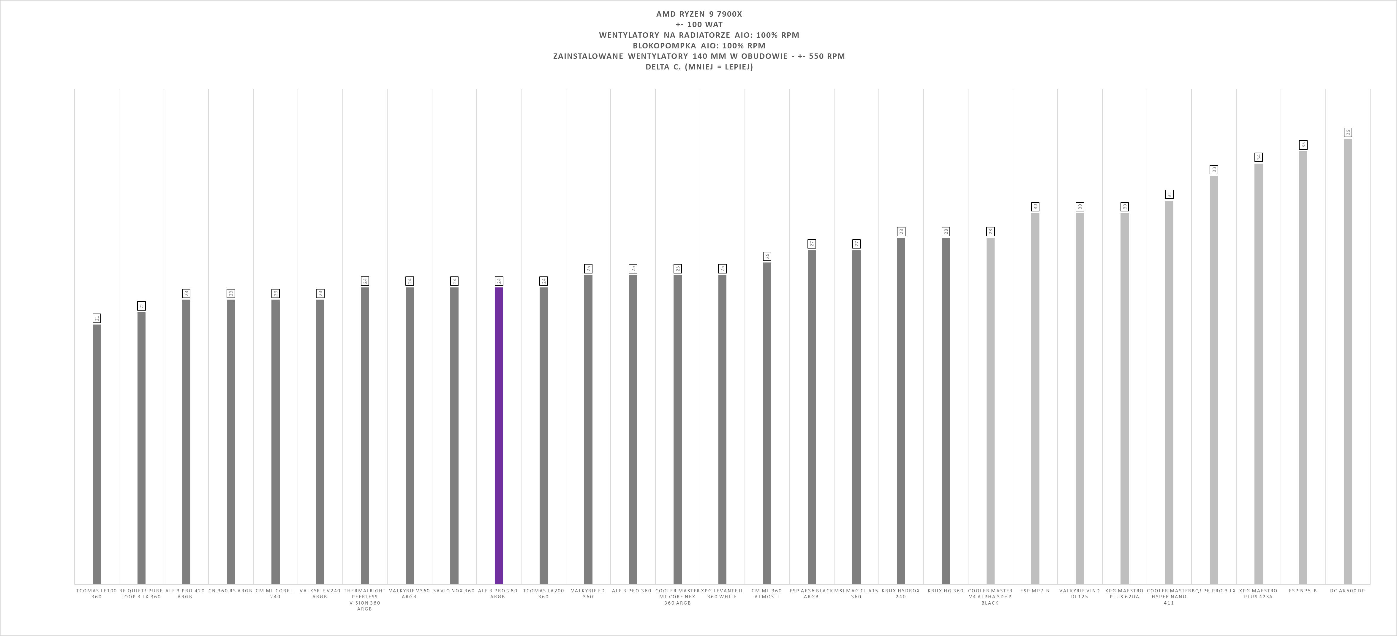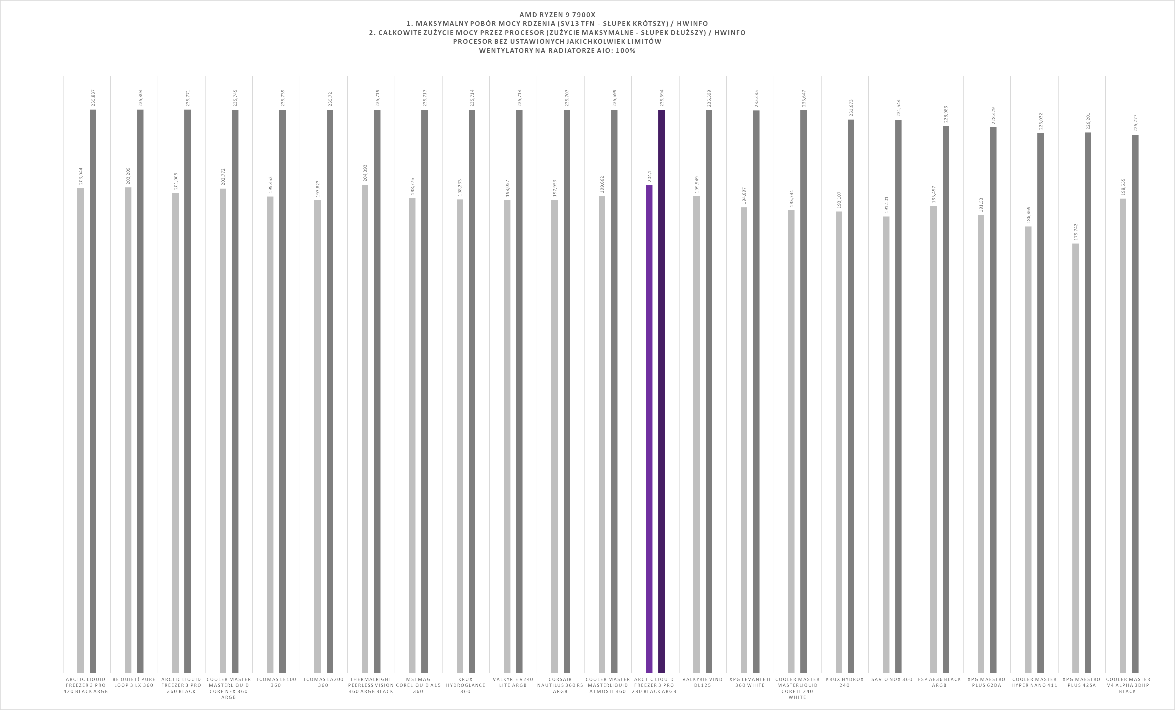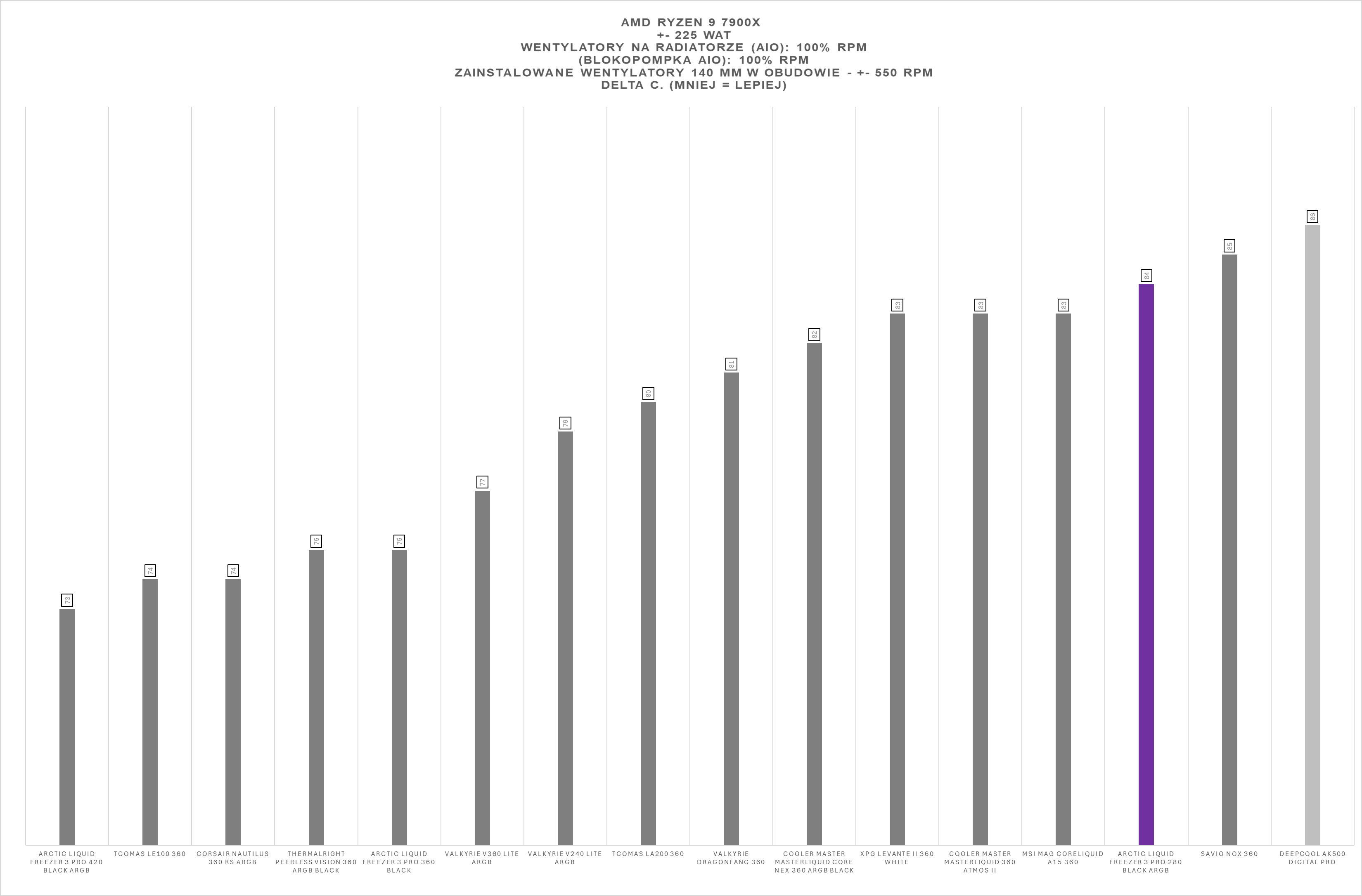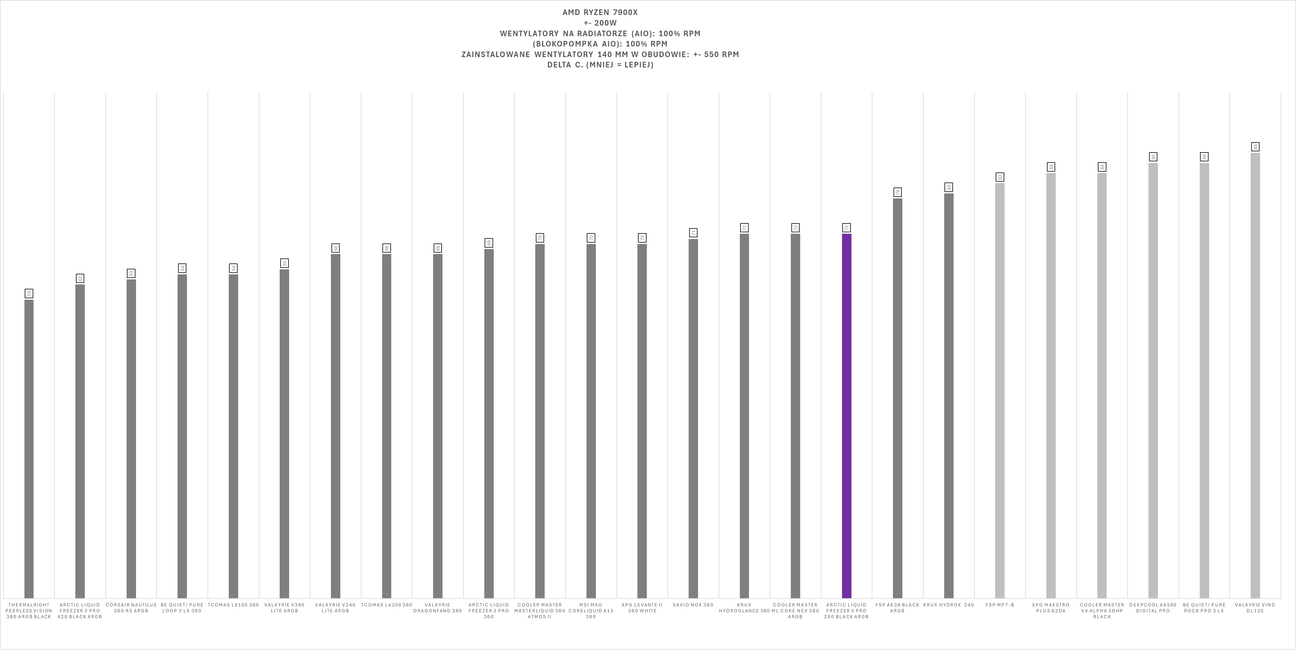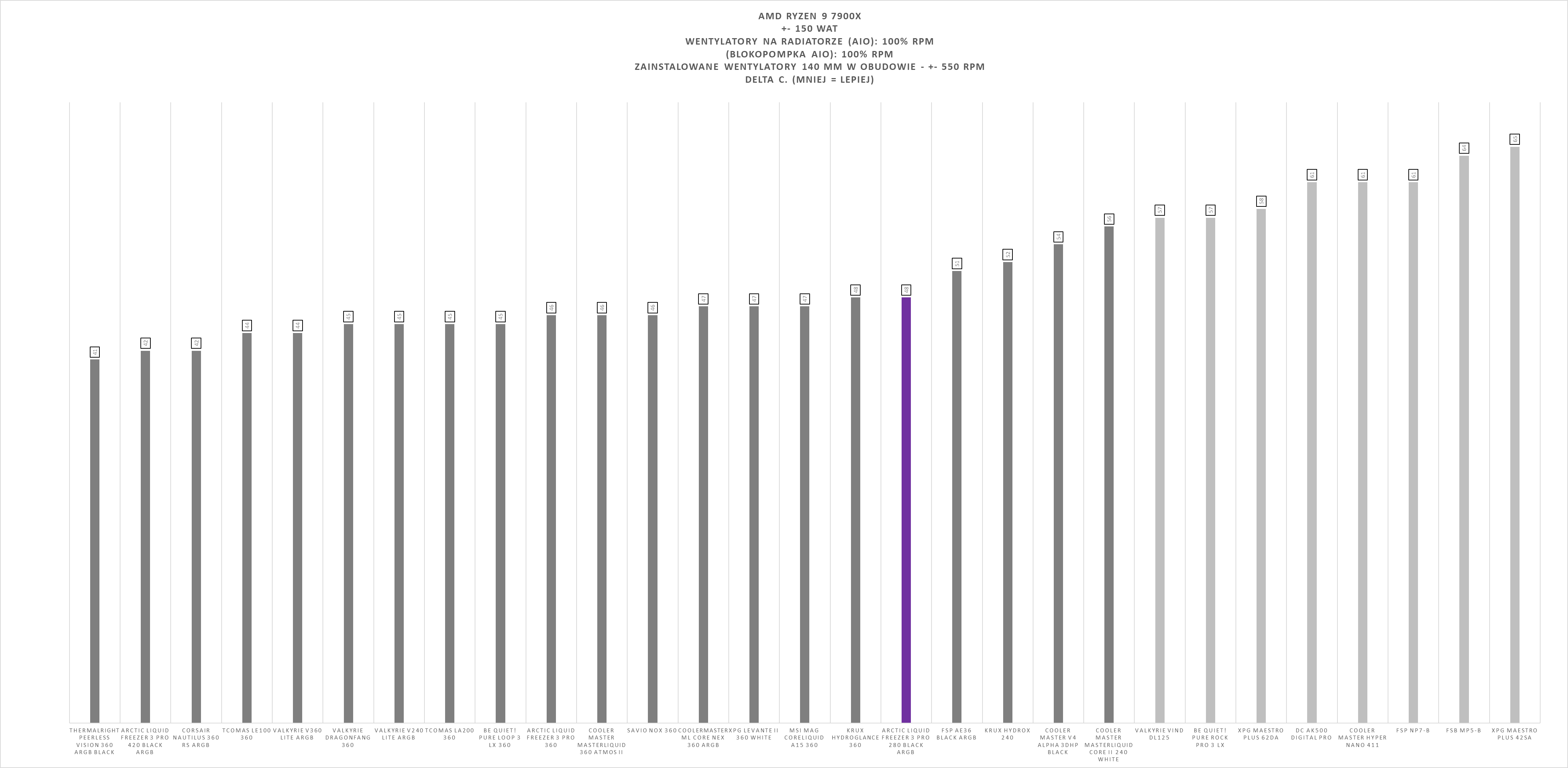 Arctic Liquid Freezer III Pro 280 ARGB Black w ogólnym rozrachunku prezentuje się bardzo solidnie na platformie AMD AM5. W testach obciążeniowych z wykorzystaniem Ryzen 9 7900X zestaw plasuje się w górnej części stawki, oferując wysoką wydajność chłodzenia nawet przy wymagających scenariuszach pracy.