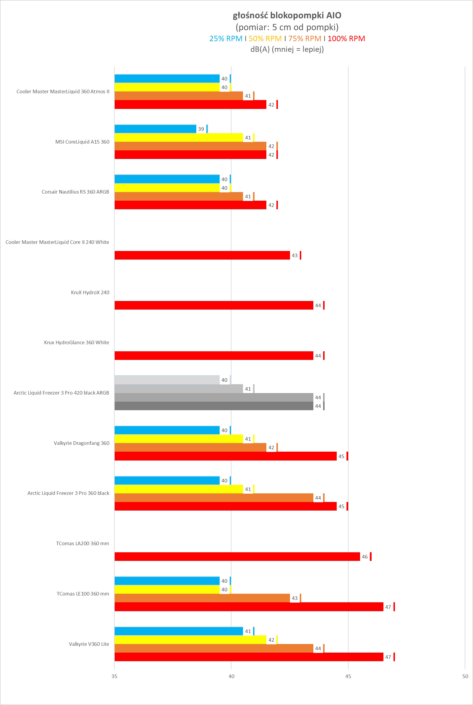 III. blokopompka AIO (wentylatory 0 RPM) – 100% / 75% / 50% / 25% RPM