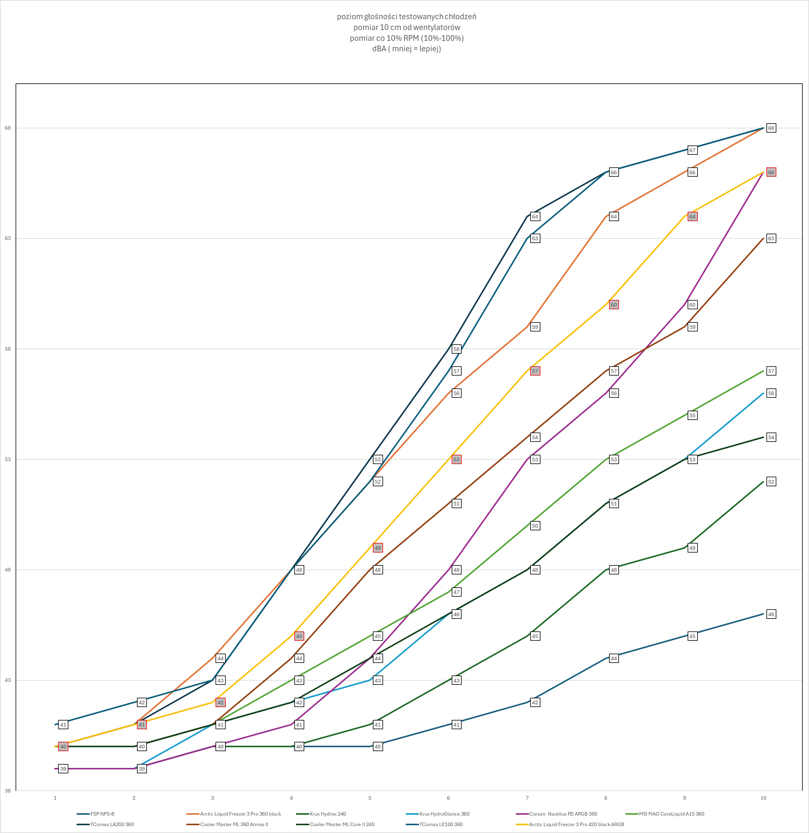 II. pomiar głośności mierzony co 10% RPM (10%> 100% RPM)