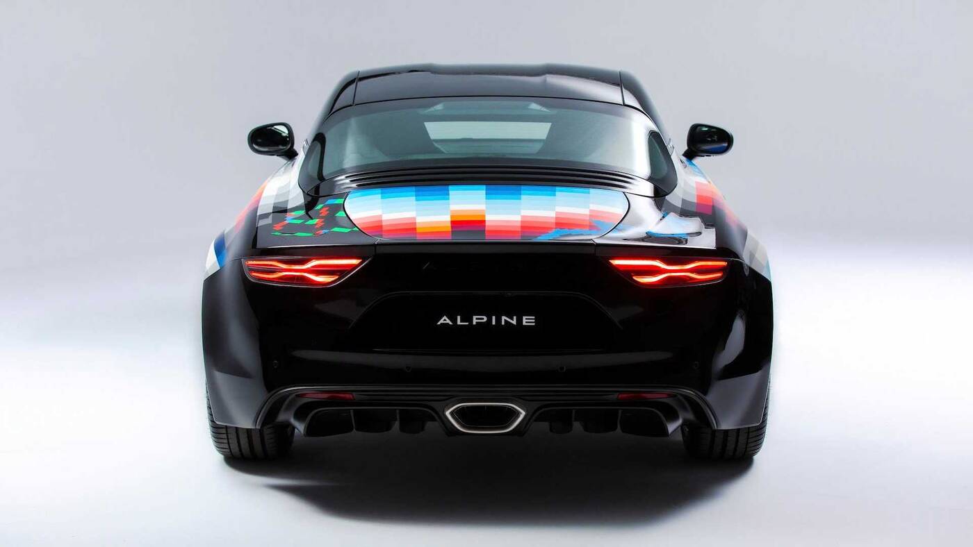 Alpine A110S doczekało się specjalnego wydania, w ramach to którego marka rozpoczęła współpracę z argentyńskim artystą Felipe Pantone. Ten zadbał o wyjątkowe nadwozie tego modelu, które trudno jednoznacznie określić, choć powiedzieć, że przyciąga wzrok, to jakby nie powiedzieć nic. Cały wygląd bazuje po części na swojego rodzaju czerwono-niebieskich pikselach, rozciągających się po panelach nadwozia razem z szeregiem lin oraz szachownicą na bocznych elementach.