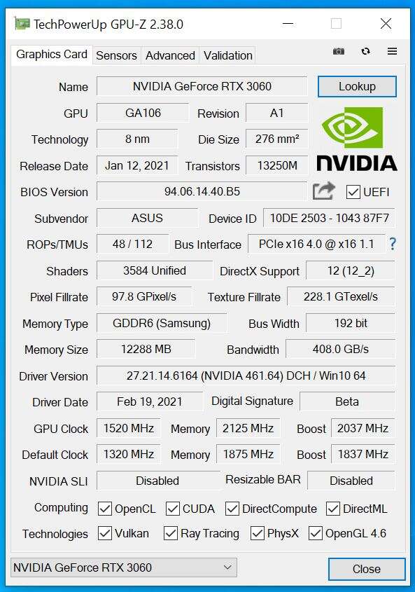 - RTX 3060: Nvidia 461.64