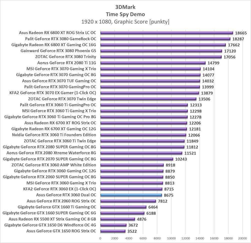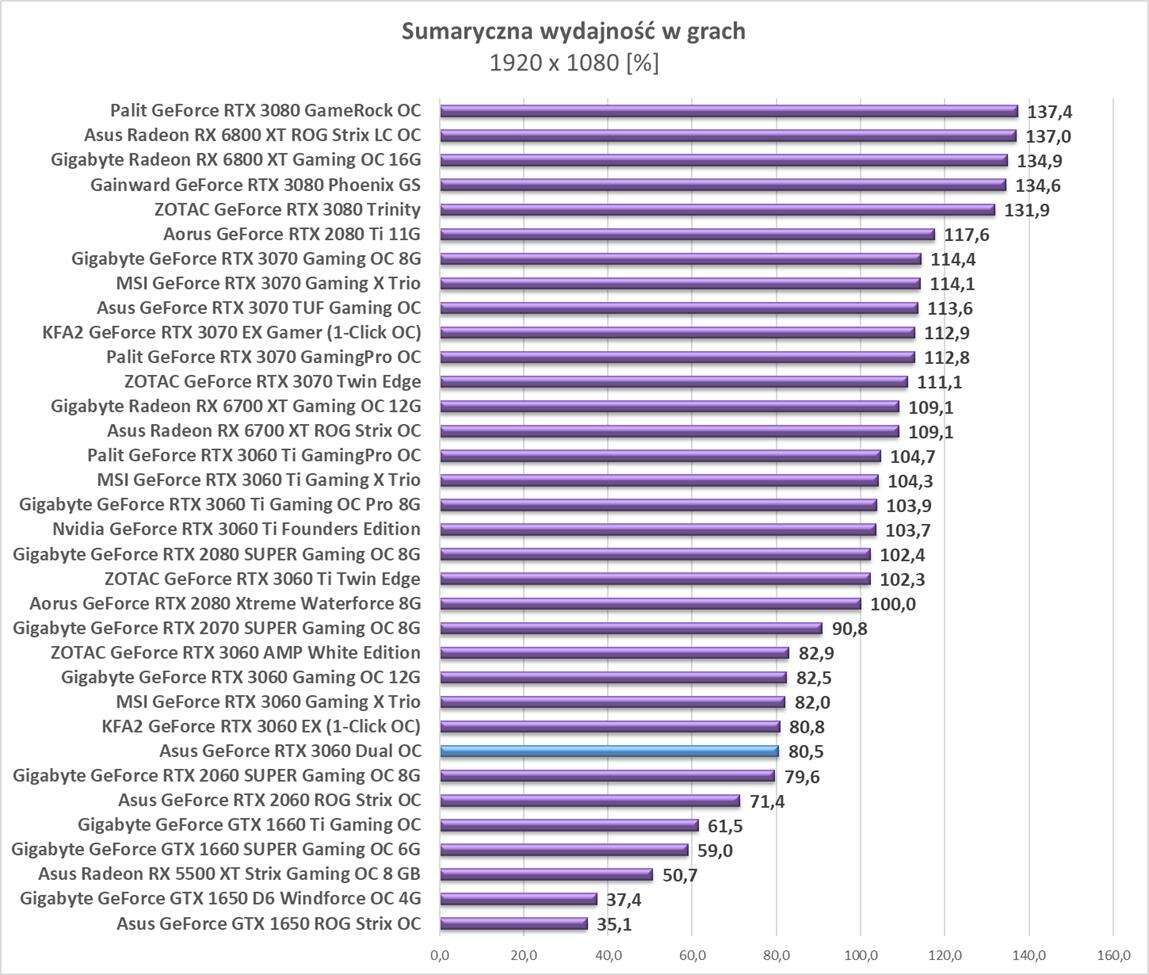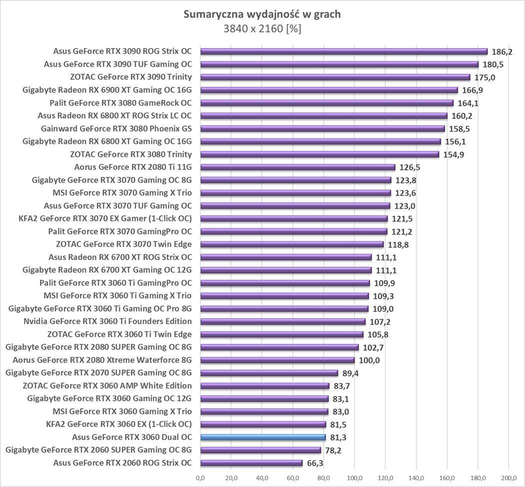 Sumaryczna wydajność Asus GeForce RTX 3060 Dual OC