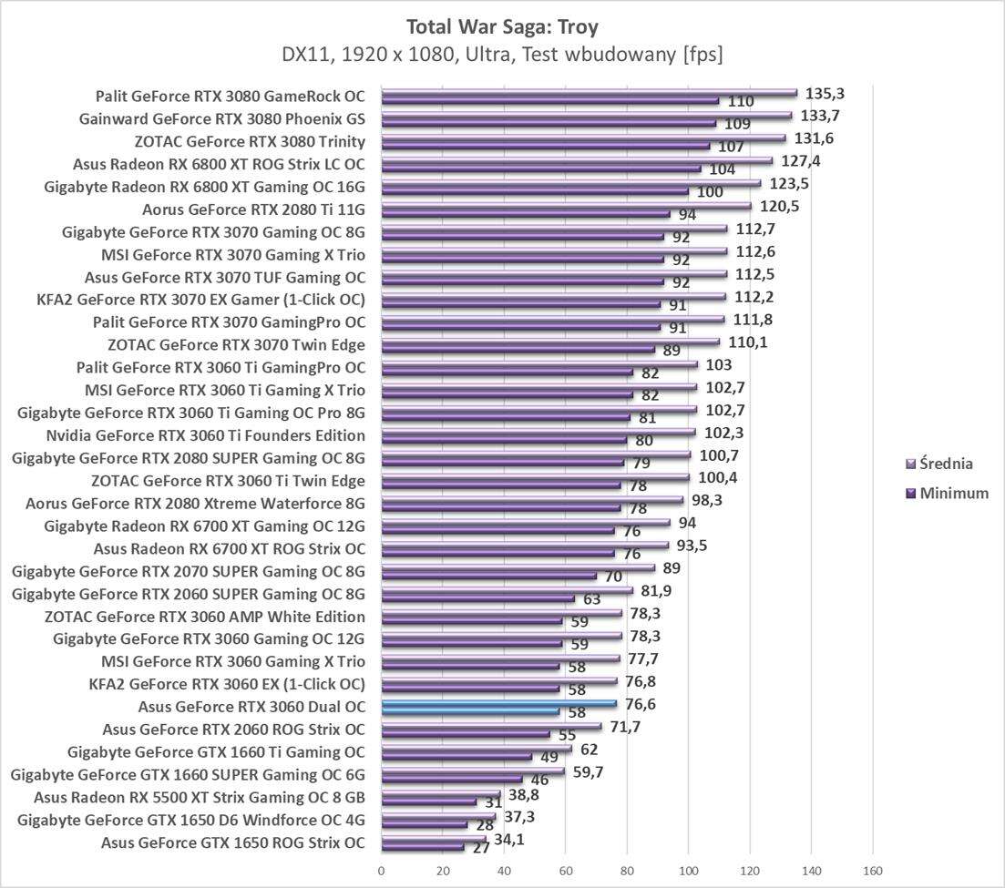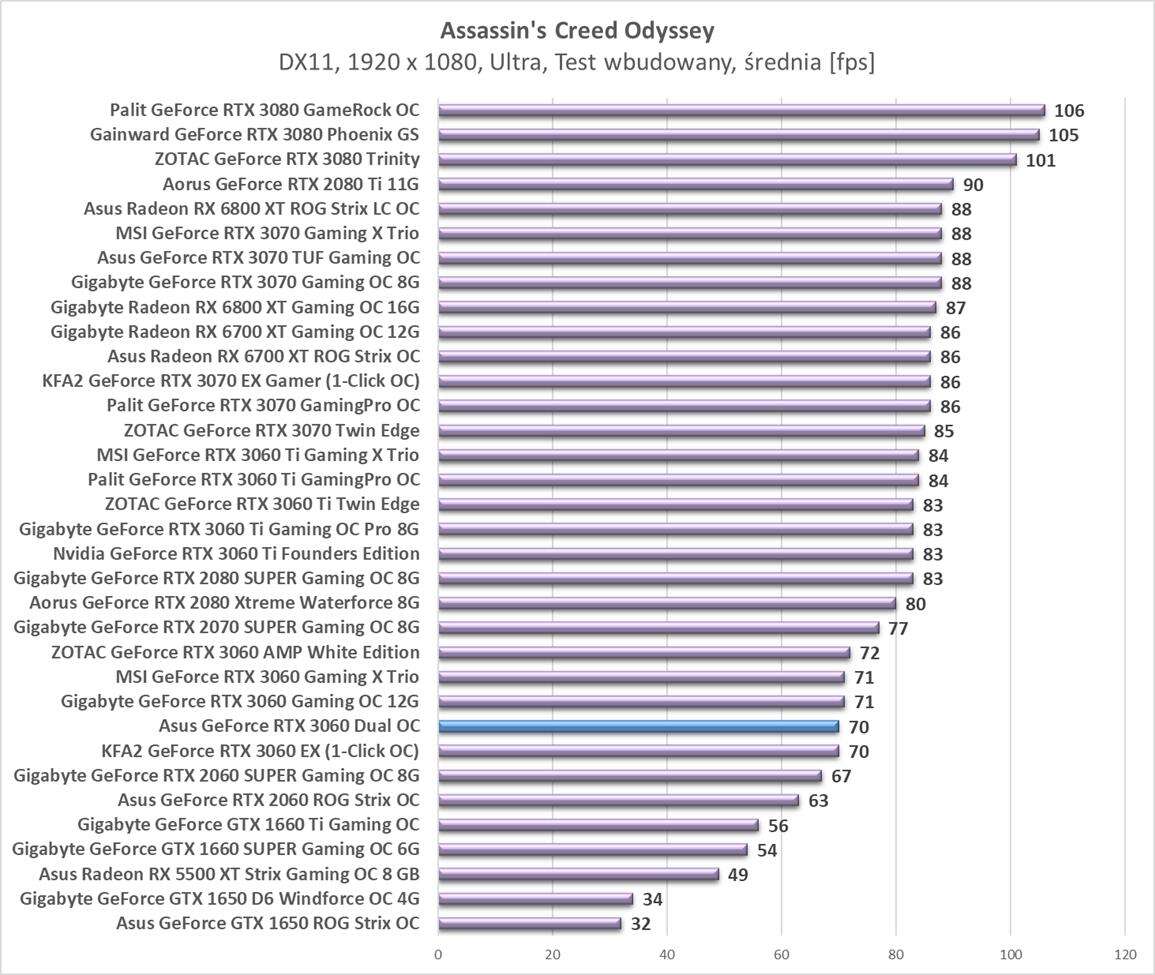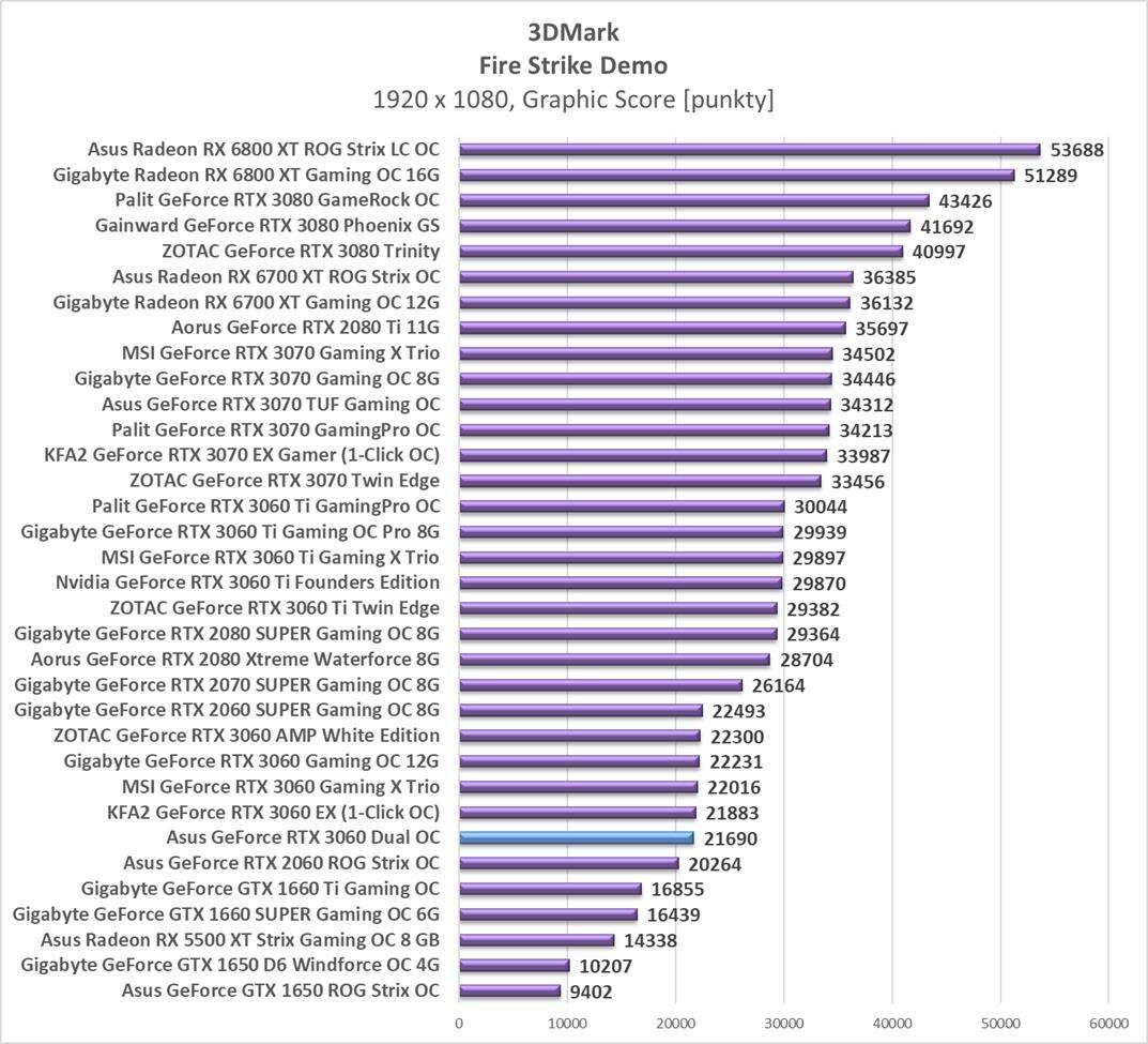 Sumaryczna wydajność Asus GeForce RTX 3060 Dual OC