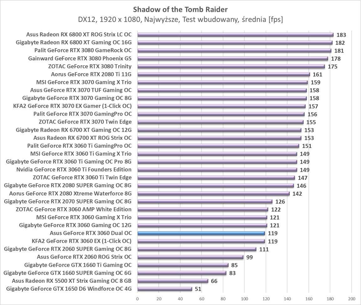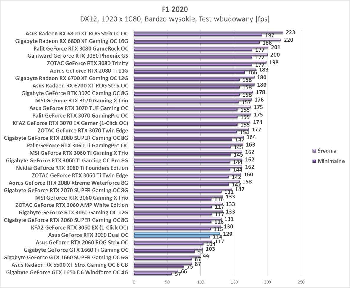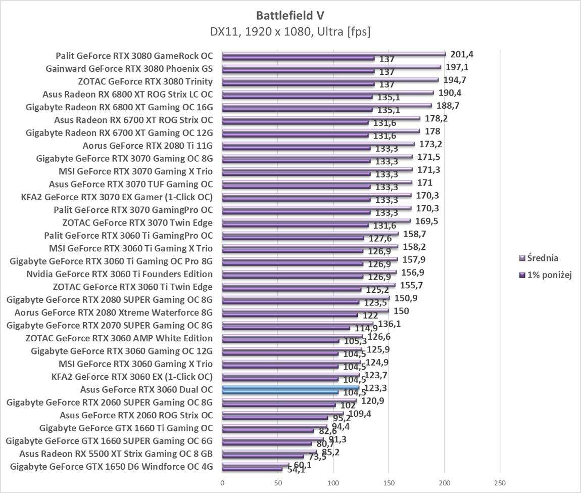 Testy Asus GeForce RTX 3060 Dual OC w rozdzielczości 1920 x 1080