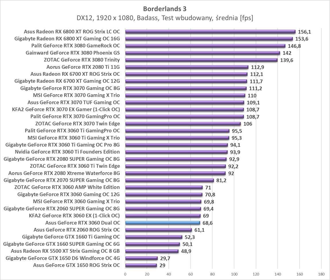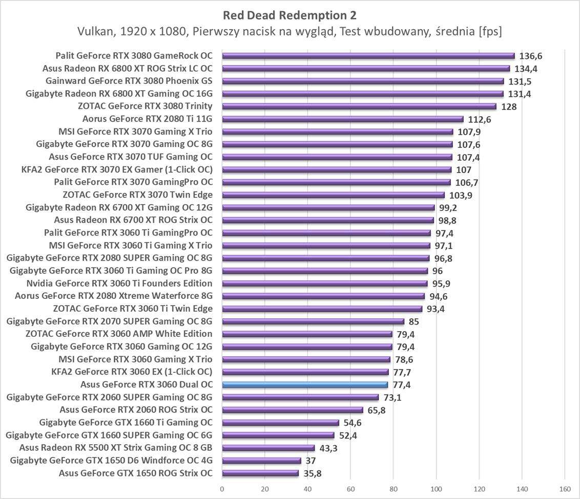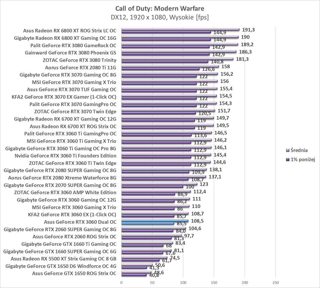 Testy Asus GeForce RTX 3060 Dual OC w rozdzielczości 1920 x 1080