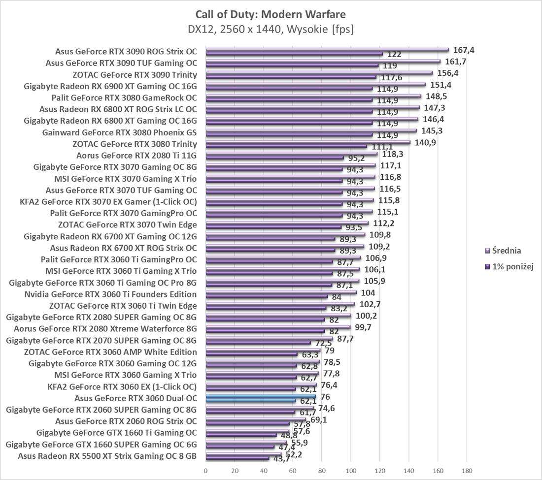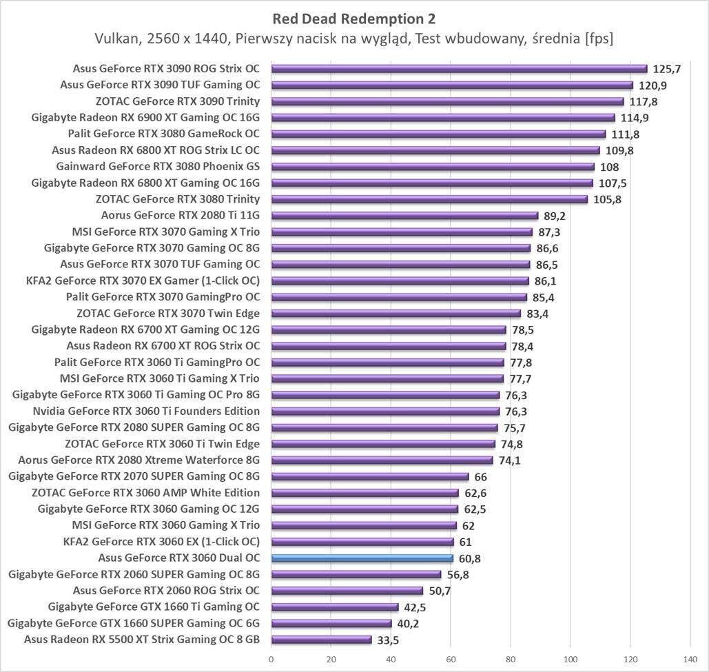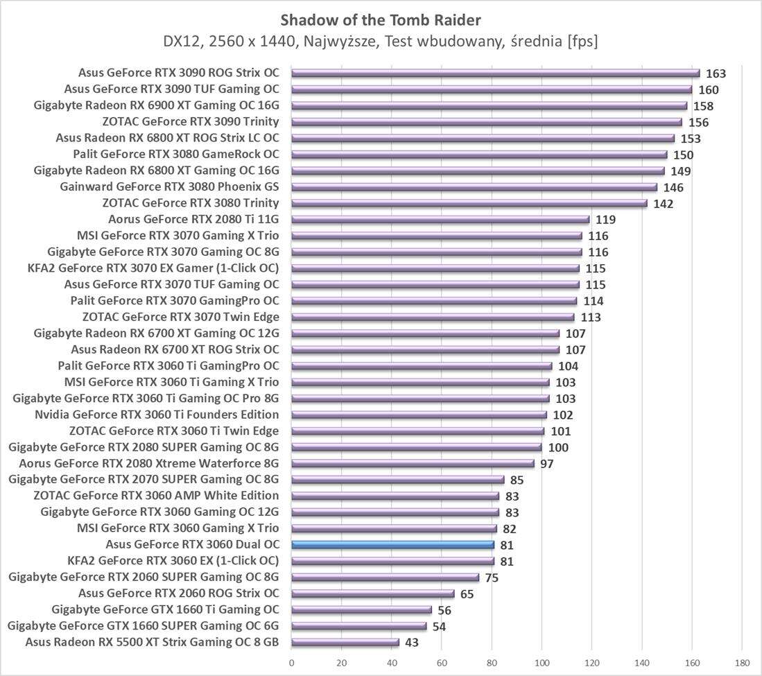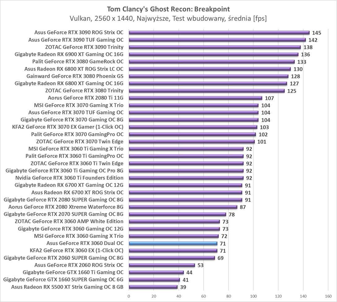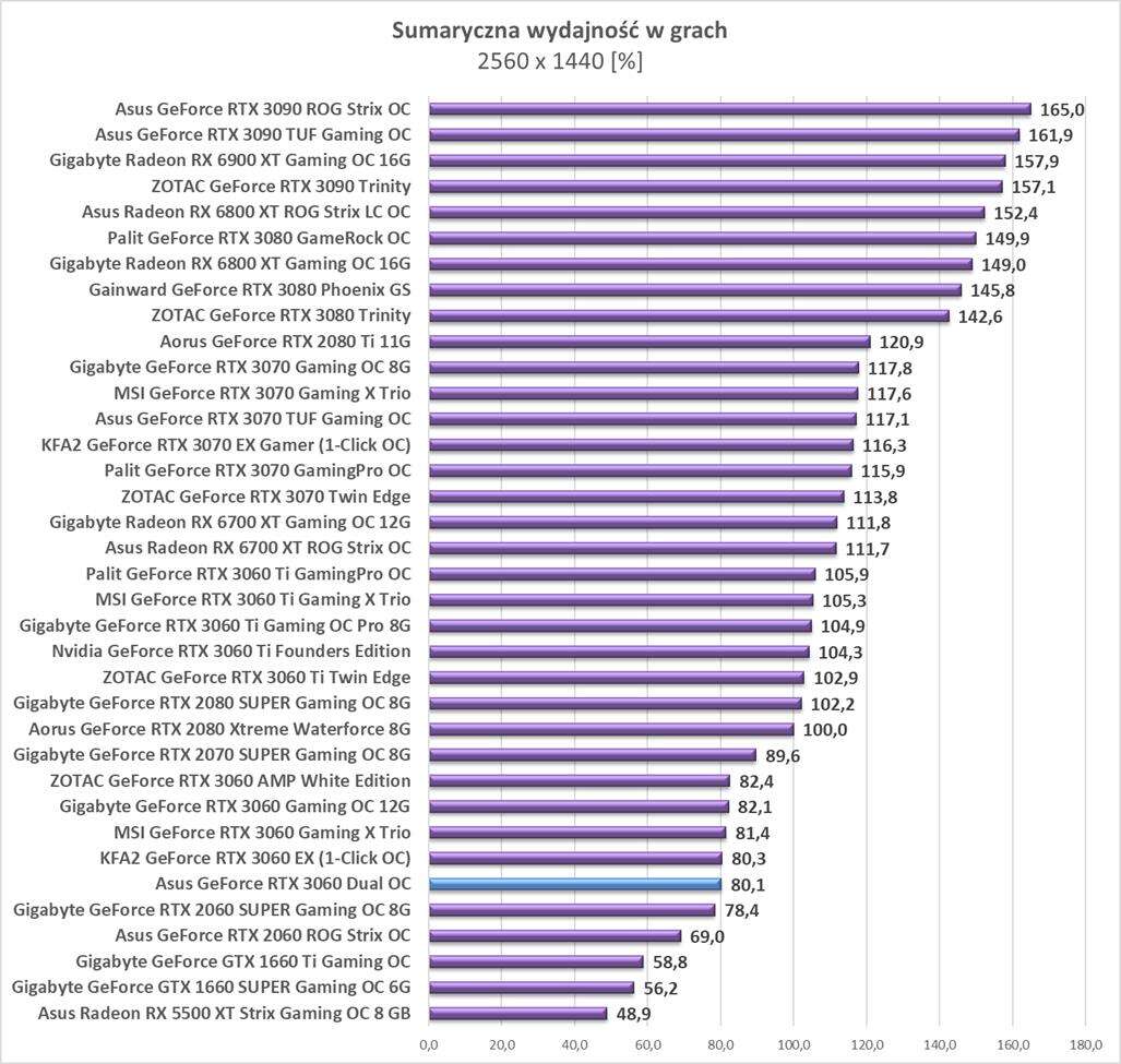 Testy Asus GeForce RTX 3060 Dual OCw rozdzielczości 2560 x 1440