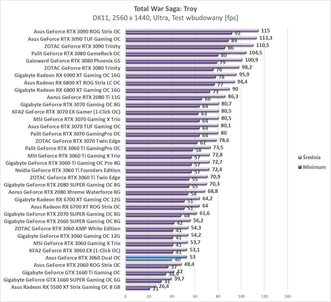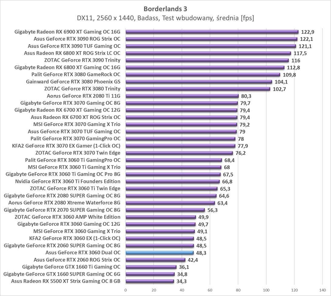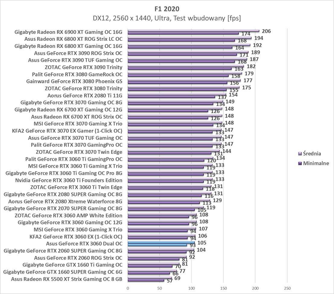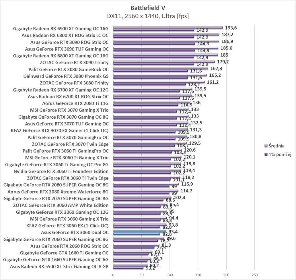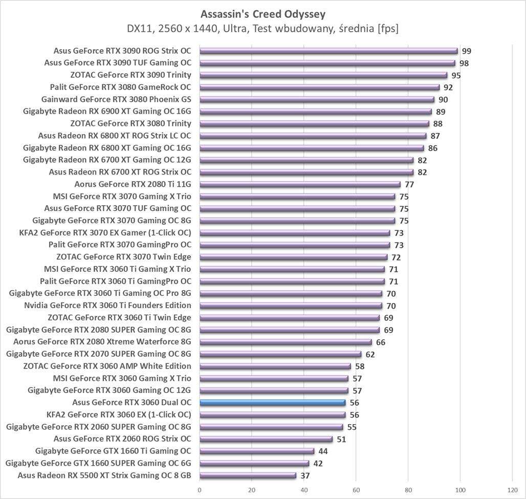 Testy Asus GeForce RTX 3060 Dual OCw rozdzielczości 2560 x 1440