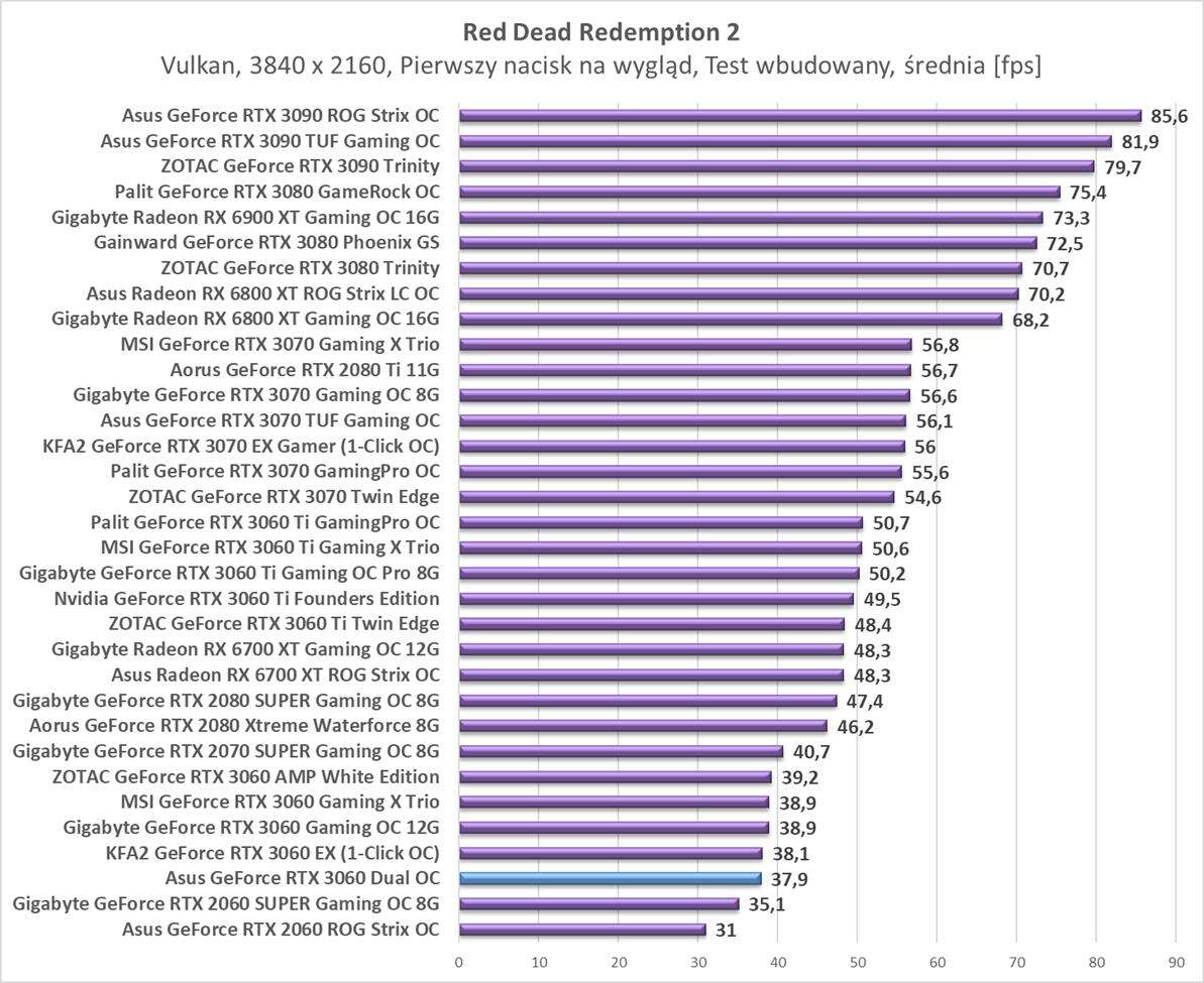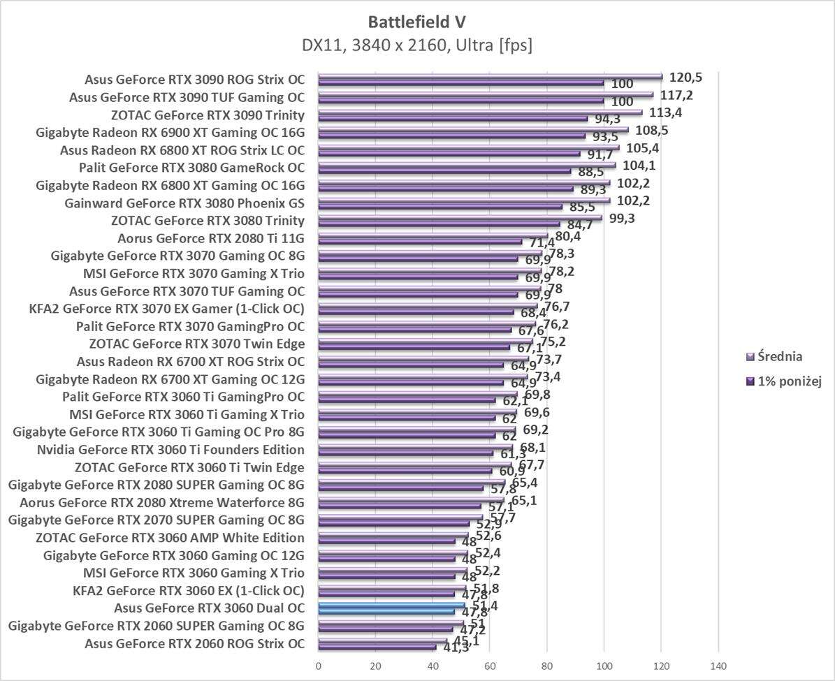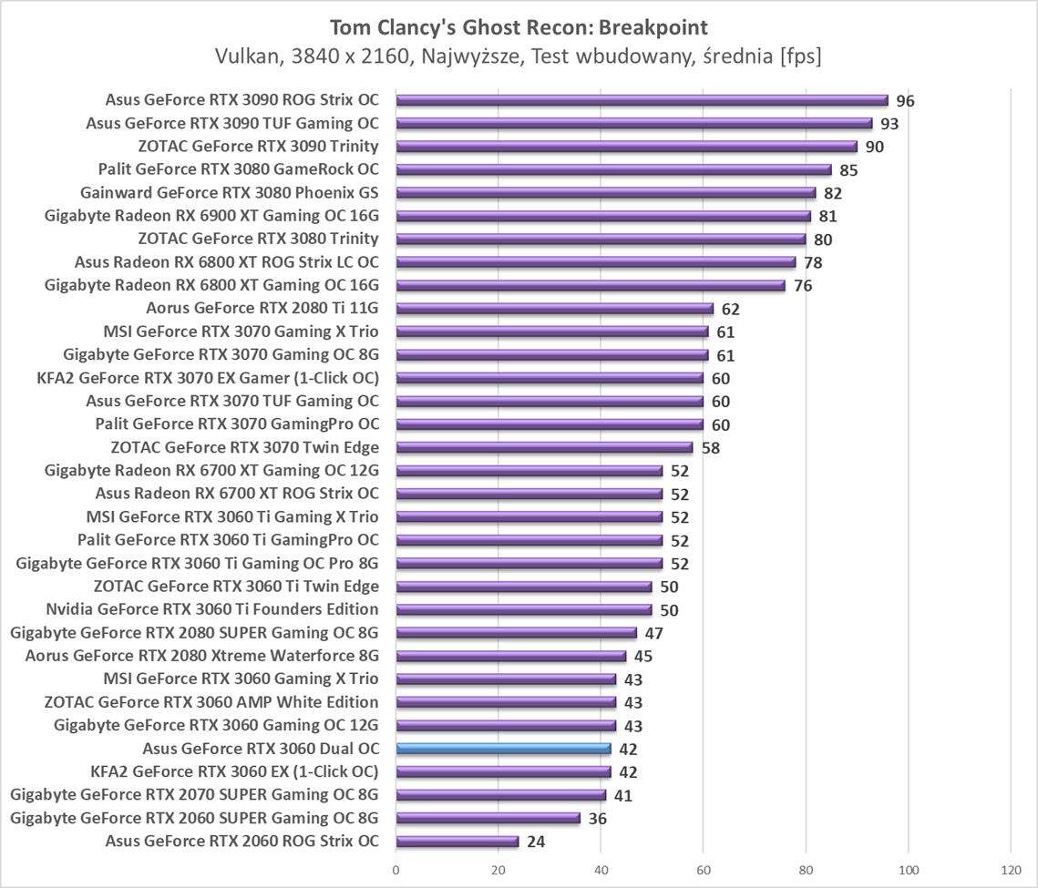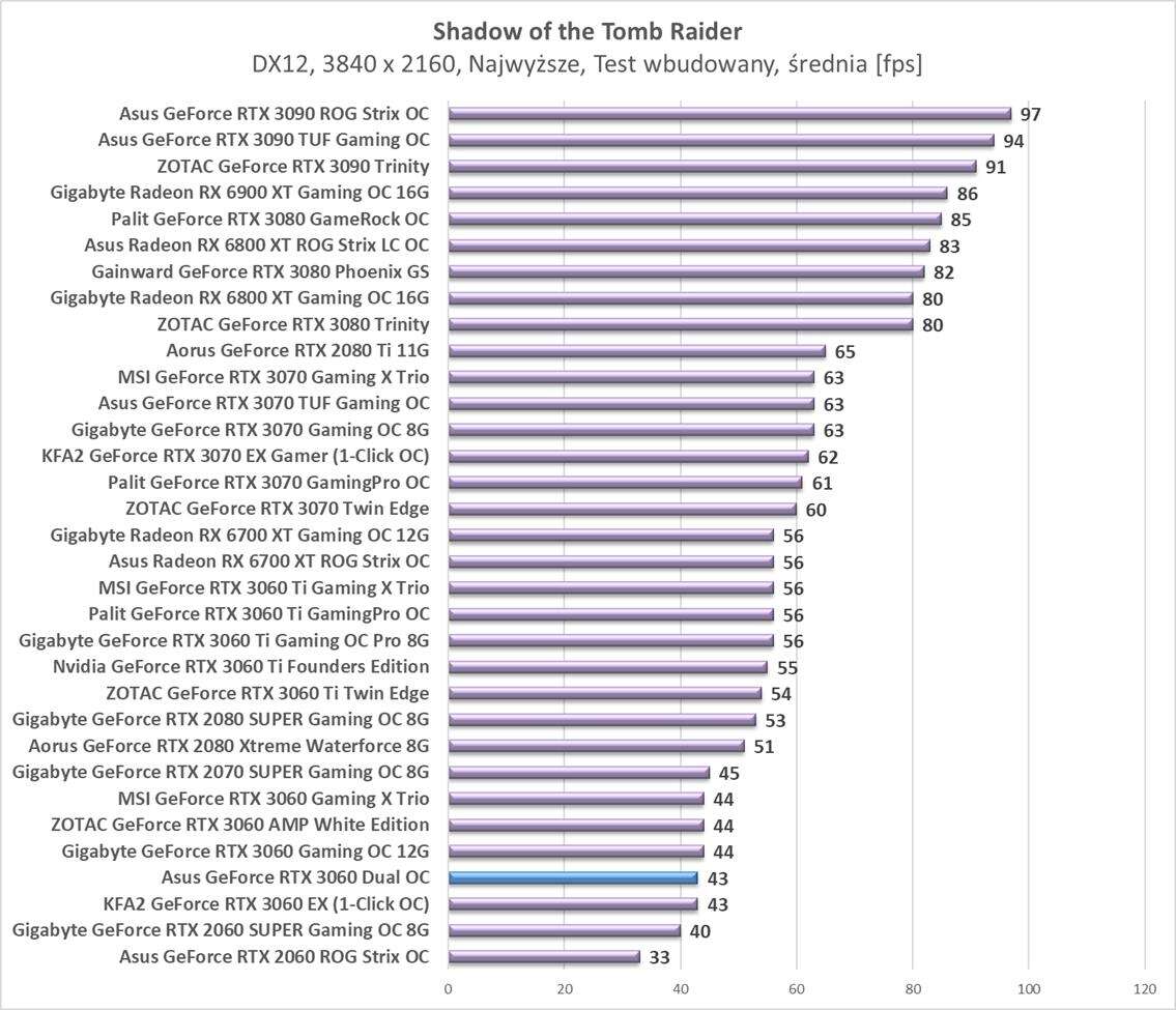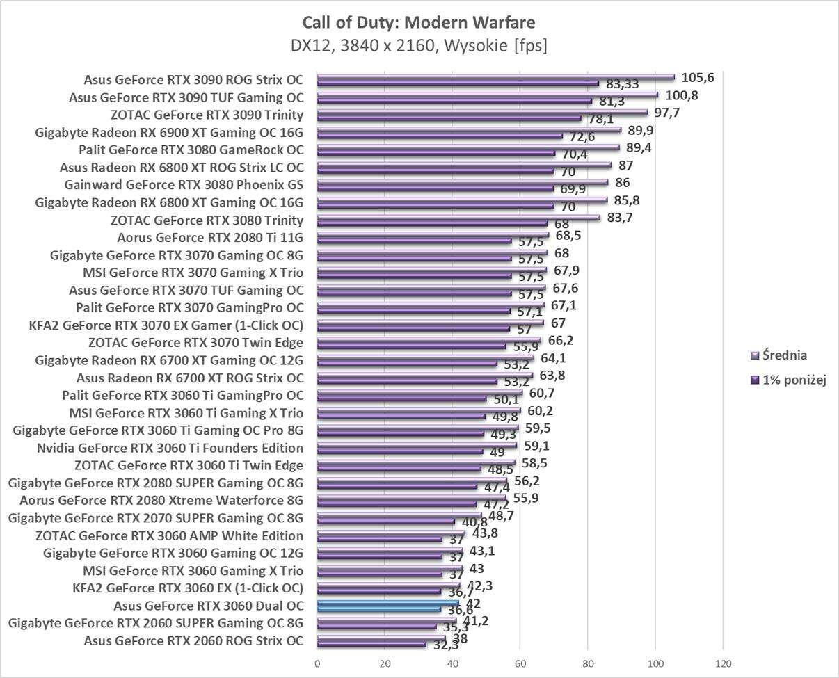 Testy Asus GeForce RTX 3060 Dual OC w rozdzielczości 3840 x 2160