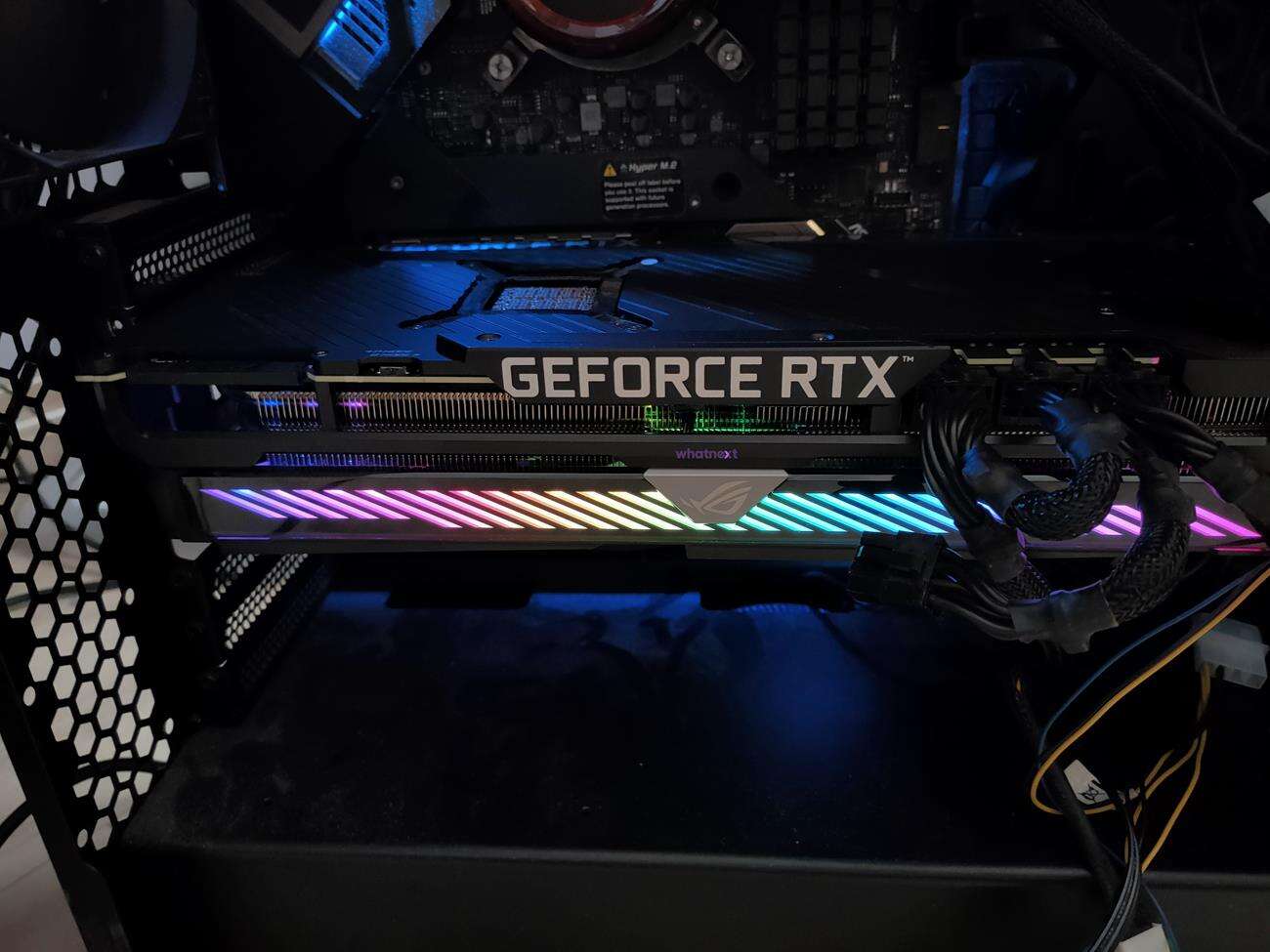 Karta jest ogromną konstrukcją, która świetnie wygląda. Ma ona backplate, a z boku obecne jest podświetlenie ARGB – w obudowie z oknem całość świetnie będzie się prezentowała.