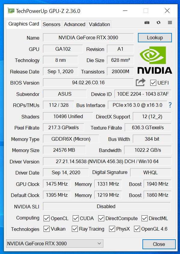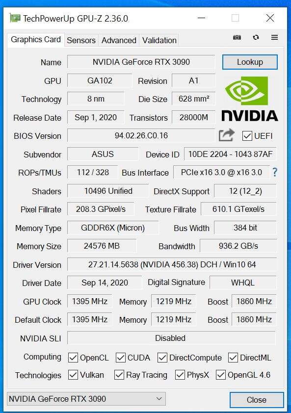 - RTX 3090: Nvidia 456.38