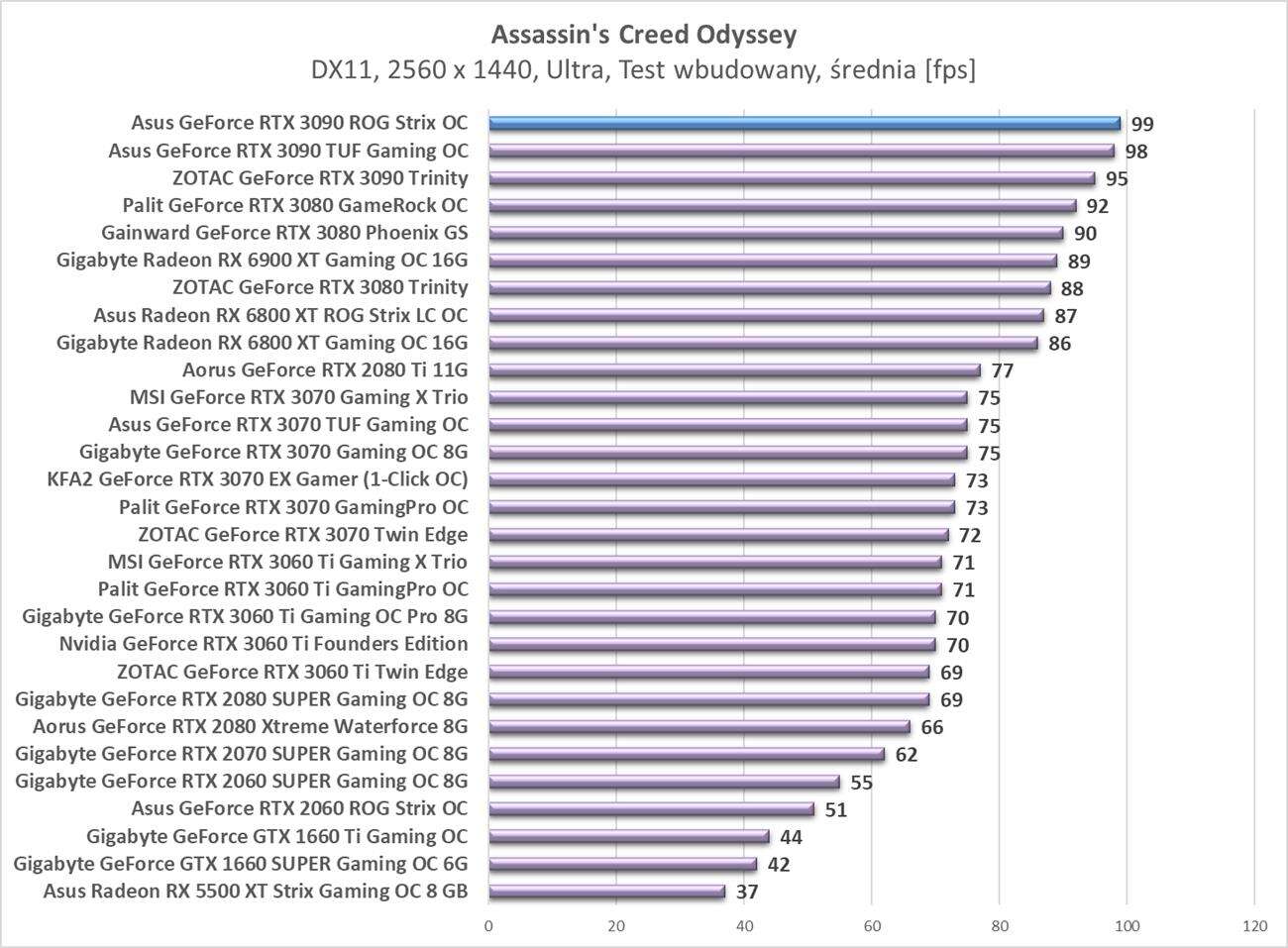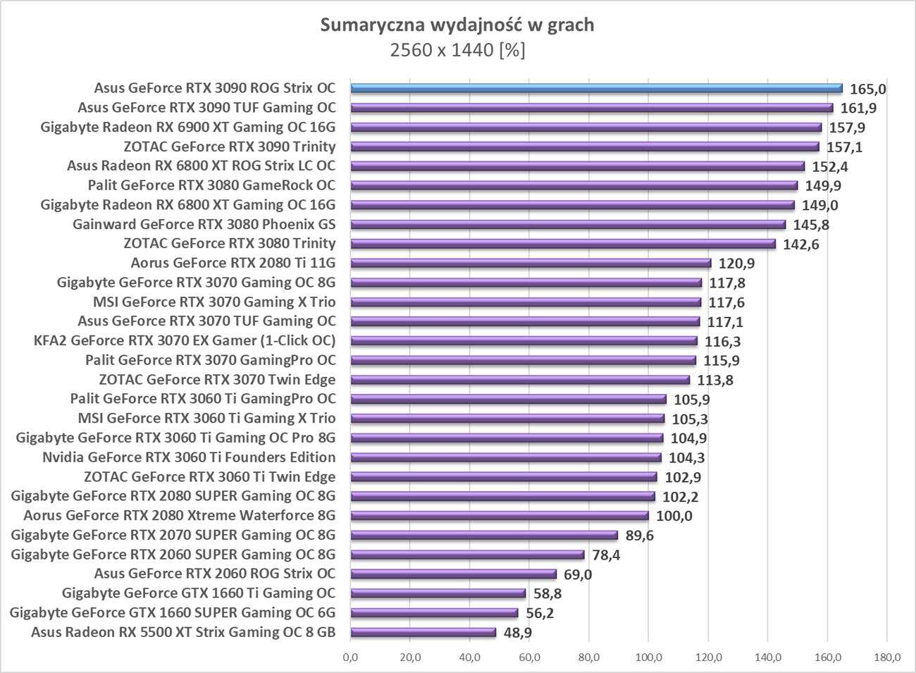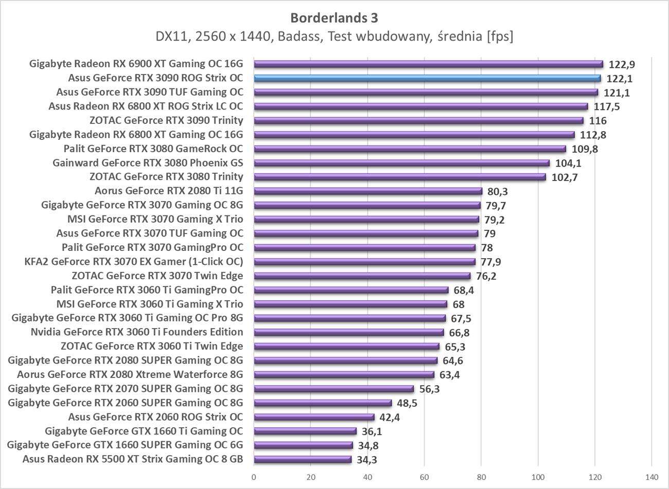 Testy Asus GeForce RTX 3090 ROG Strix OC w rozdzielczości 2560 x 1440