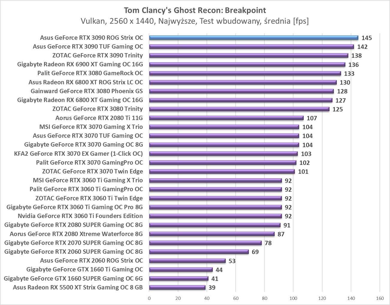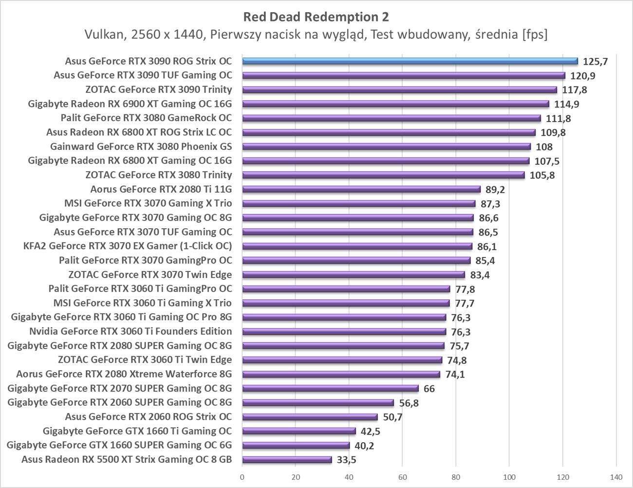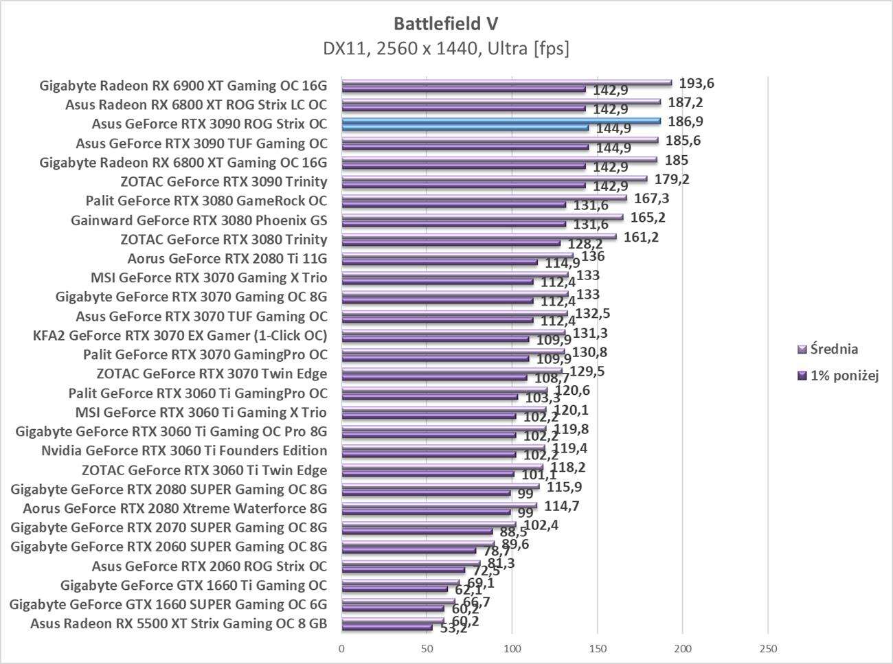 Testy Asus GeForce RTX 3090 ROG Strix OC w rozdzielczości 2560 x 1440