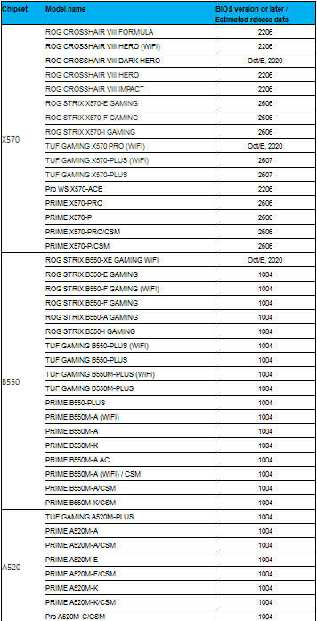 Asus deklaruje też, że dołożył wszelkich starań, aby zapewnić najstabilniejszy BISO dla płyt. Firma mówi też, że będzie ona nadal optymalizowała oprogramowanie i wprowadzała poprawki. Pełną listę obsługiwanych płyt znajdziecie w tabeli poniżej.