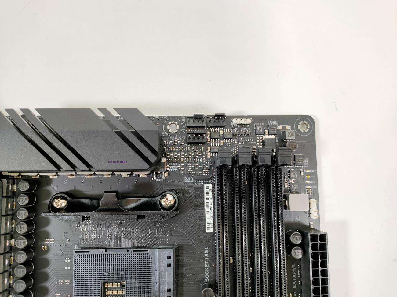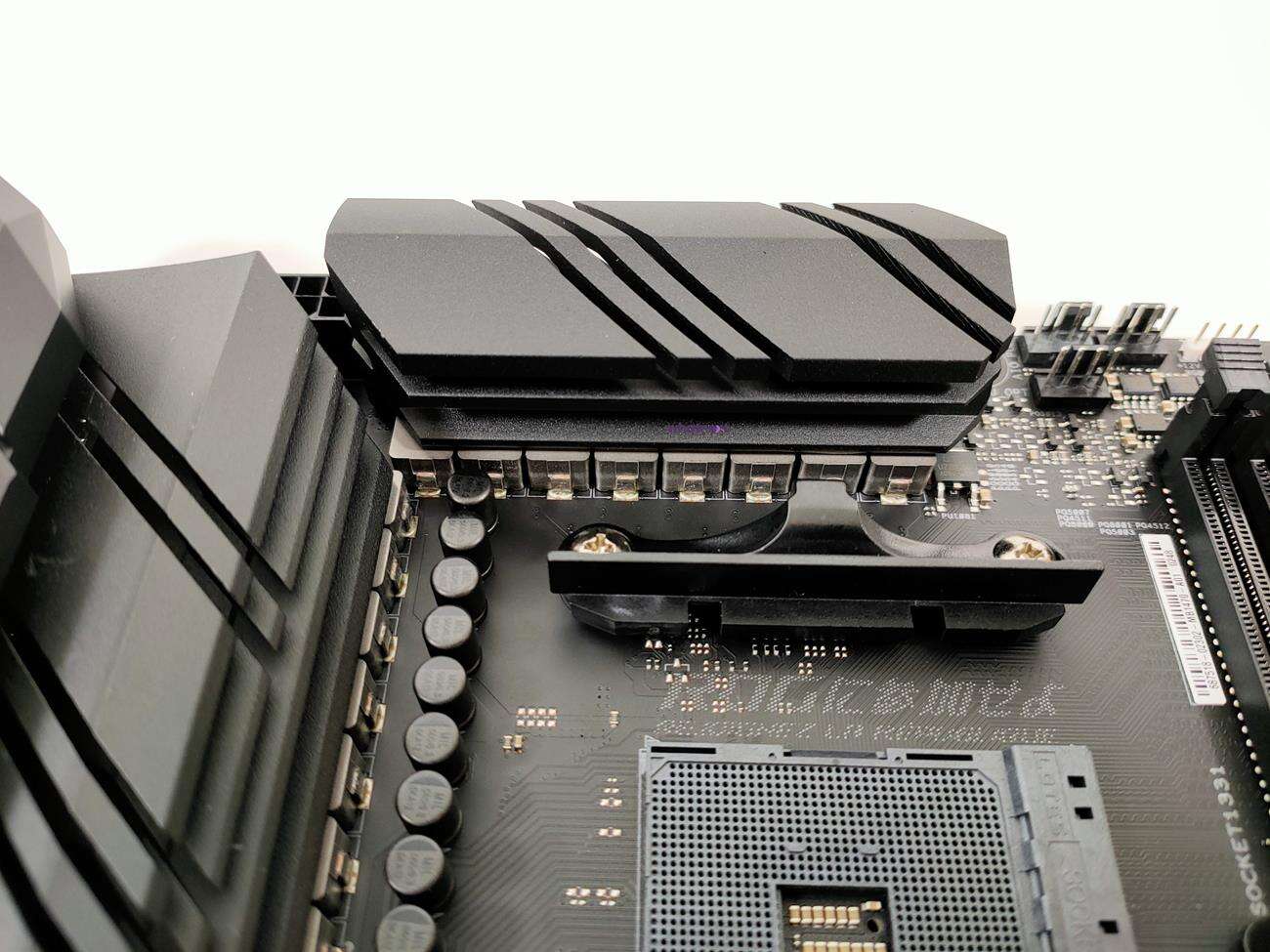 Sekcja zasilania ma 14+2 fazy. Jest wiec ona bardzo mocna i powinna sobie poradzić nawet z najmocniejszymi procesorami AMD. Do jej zasilania wymagane są dwa złącza EPS – 8 pin i 4 pin. Sekcja zasilania ma spore radiatory, które powinny zapewnić jej dobre chłodzenie. Pod tym względem płyta kompletnie nie odstaje od konstrukcji X570.