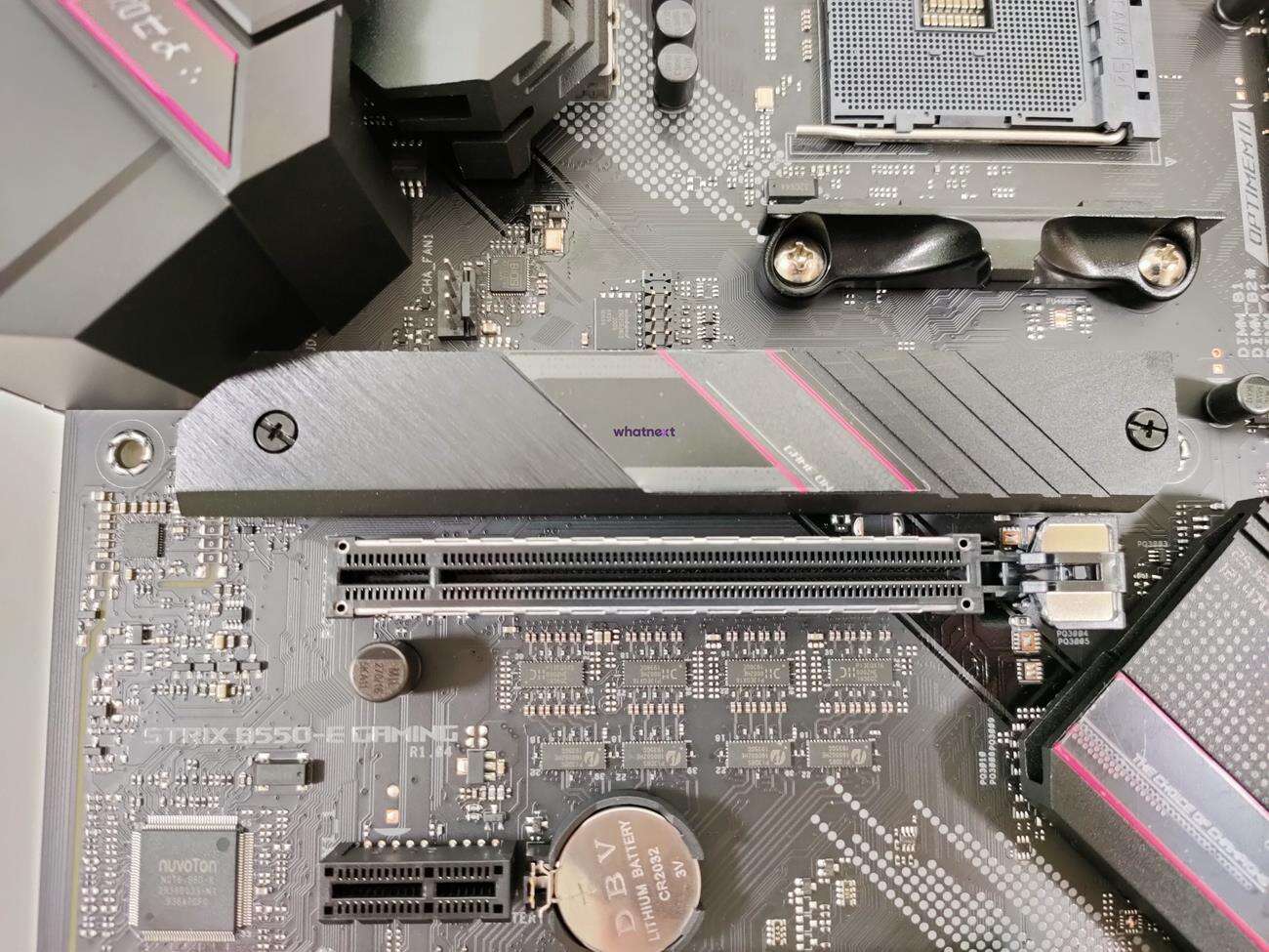 Płyta ma dwa złącza PCI-E 4.0 x16 podciągnięte do procesora. Są one wzmacniane, wiec żadna grafika nie powinna ich wyłamać. Oprócz nich obecne jest złącze PCI-E 3.0 x16 i dwa PCI-E 3.0 x1 podciągnięte do chipsetu. Płyta wspiera technologie łączenia kart graficznych – 2-Way SLI i 3-Way CrossFireX.