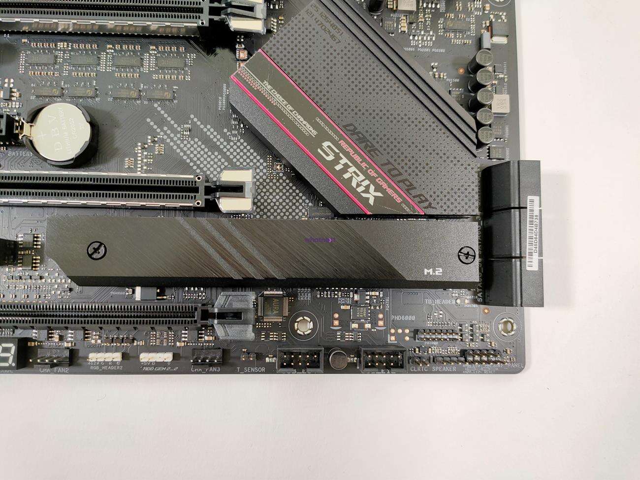 Asus ROG Strix B550-E Gaming ma jedno złącze M.2 PCI-E 4.0 x4. Drugie złącze M.2 jest PCI-E 3.0 x4. Oba obsługują dyski do 22110 oraz mają radiatory. Oprócz tego dostępnych jest 6 złączy SATA, które wspierają Raid 0, 1 i 10.