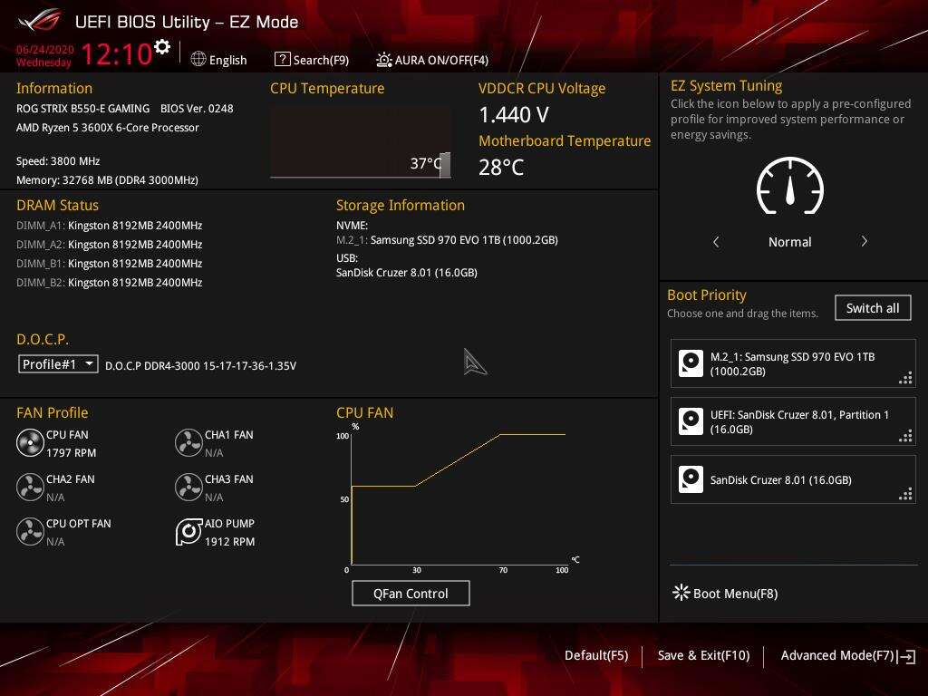 Ilość złączy na tylnym panelu jest poprawna, choć mogłoby być więcej złączy USB 3.2 zamiast USB 2.0. Plusem jest za to obecne WiFi, złącze ethernet 2.5 Gb czy złącze DisplayPort. BIOS jest standardowy dla płyta Asusa – jest dużo opcji rozmieszczonych w różnych zakładkach. Samo podkręcanie jest za to proste i nie wymaga zbytnio wysiłku czy większej wiedzy. Minusem jest za to standardowa krzywa obrotów wentylatorów – w spoczynku moim zdaniem będą one zbyt głośne i warto ją dostosować lub zmienić na Silent.