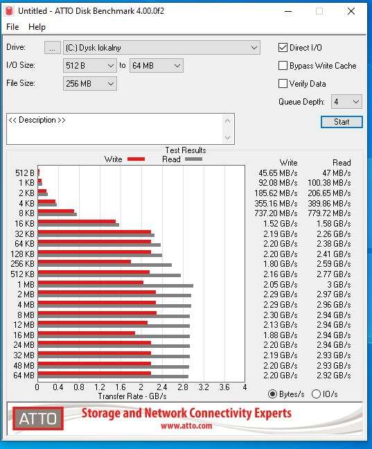 Dysk M.2 pod obciążeniem programem Atto nagrzewał się do 75°C – radiator bardzo dobrze radzi sobie z odprowadzaniem ciepła. Pobór mocy całego zestawu w spoczynku to 69 W, a pod obciążeniem Cinebench R20 141 W. Różnice nie są więc jakieś znaczące w stosunku do konkurencji. WiFi działa bezproblemowo – zapewnia maksymalną wydajność mojej sieci oraz niski ping. Karta muzyczna również sprawdza się dobrze – jeśli nie jesteście audiofilami to powinniście być z niej zadowoleni.