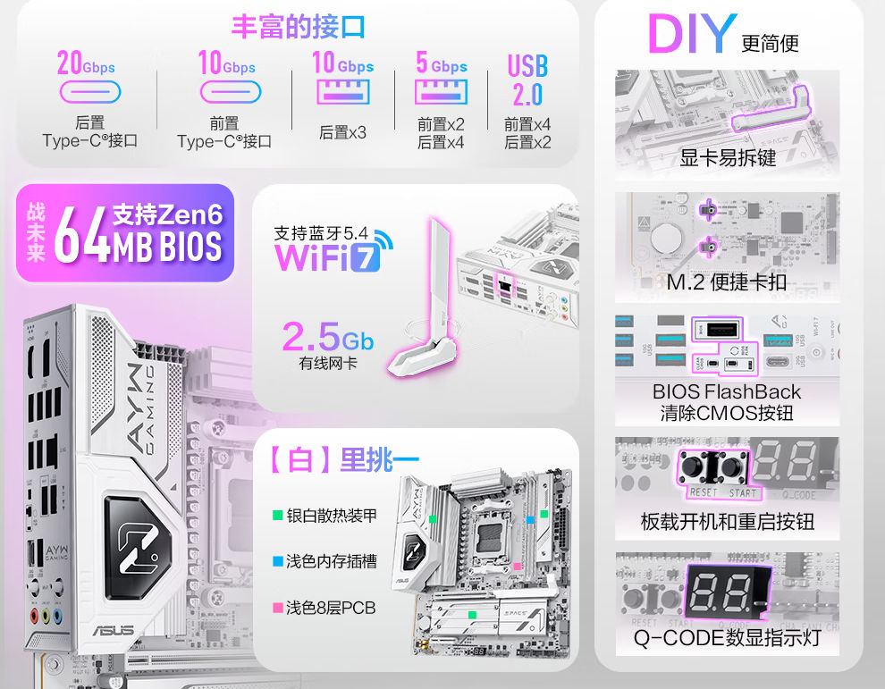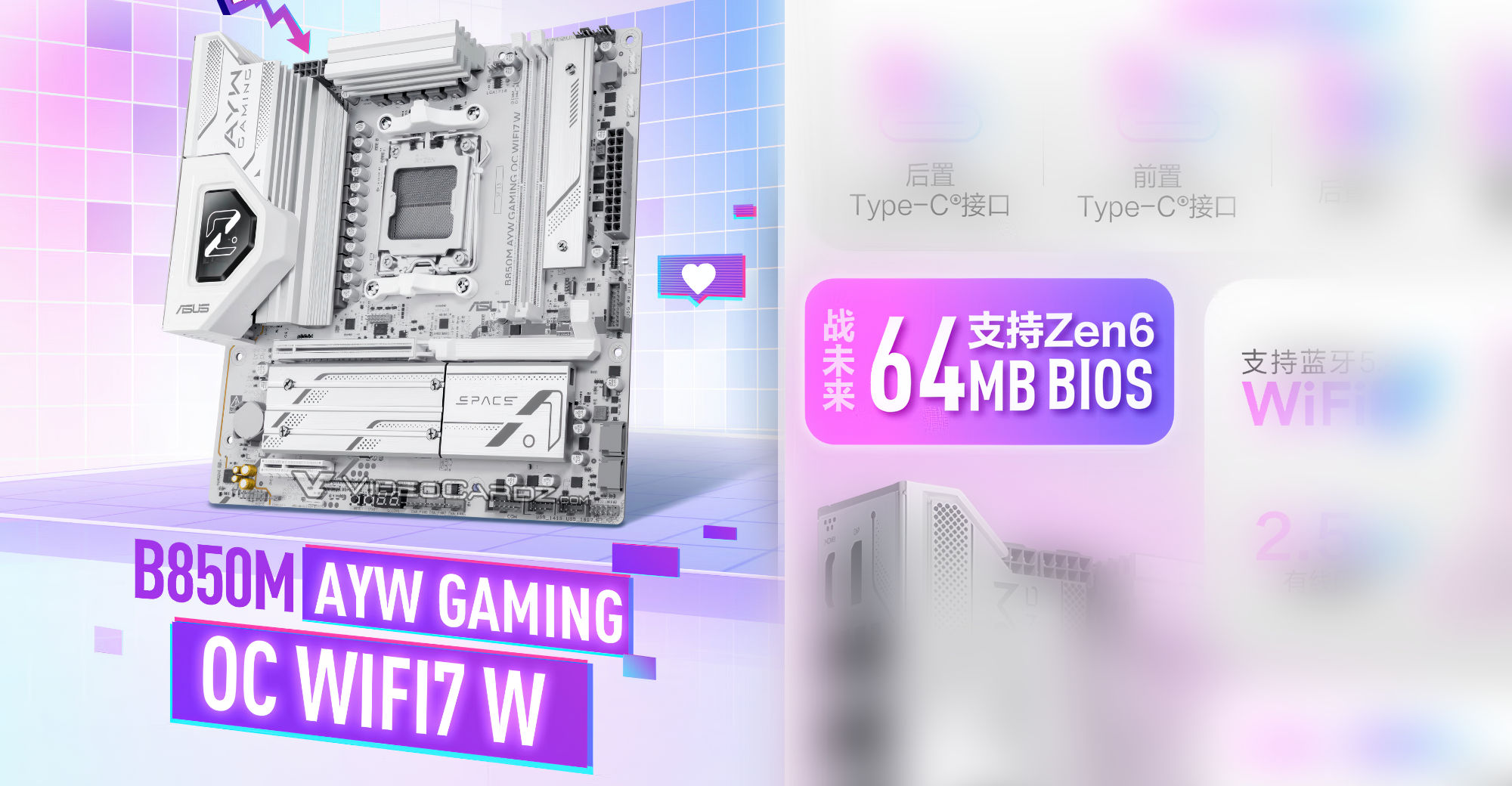 Płyta, która zadebiutowała z oficjalnym wsparciem dla procesorów Ryzen 9000 oraz pamięci DDR5 o prędkości 9600 MT/s, zaskoczyła obecnością 64 MB kości BIOS-u, którą wyraźnie oznaczono jako gotową na Zen 6.